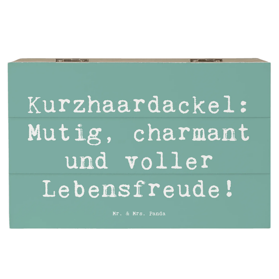 Entdecke die zauberhafte Holzkiste mit dem süßen Motiv des Kurzhaardackels von Mr. & Mrs. Panda! Diese wunderschöne Kiste ist nicht nur ein echter Blickfang, sondern auch die perfekte Aufbewahrungsbox für all Deine wertvollen Schätze. Ob als Erinnerungskiste für besondere Anlässe wie Kommunion, Konfirmation oder die unvergesslichen Momente der Kindheit – mit dieser Kiste hast Du einen stilvollen Platz für all Deine Erinnerungen. Mit den Maßen von 25 x 18 cm und einem Gewicht von 750 g passt sie perfekt in jedes Zuhause und bietet ausreichend Platz für Fotos, kleine Andenken und mehr.