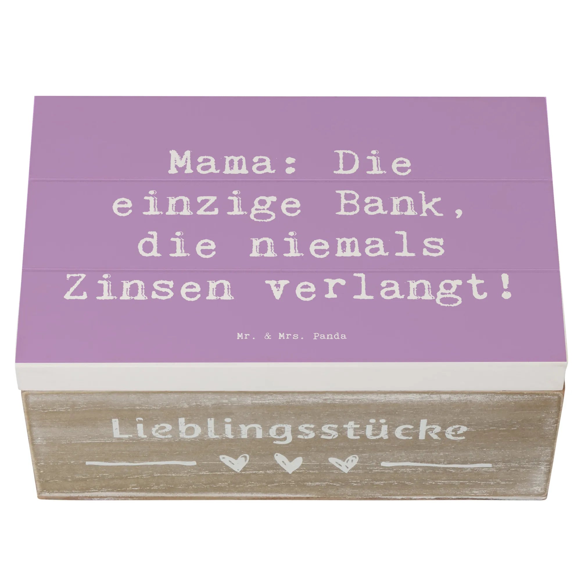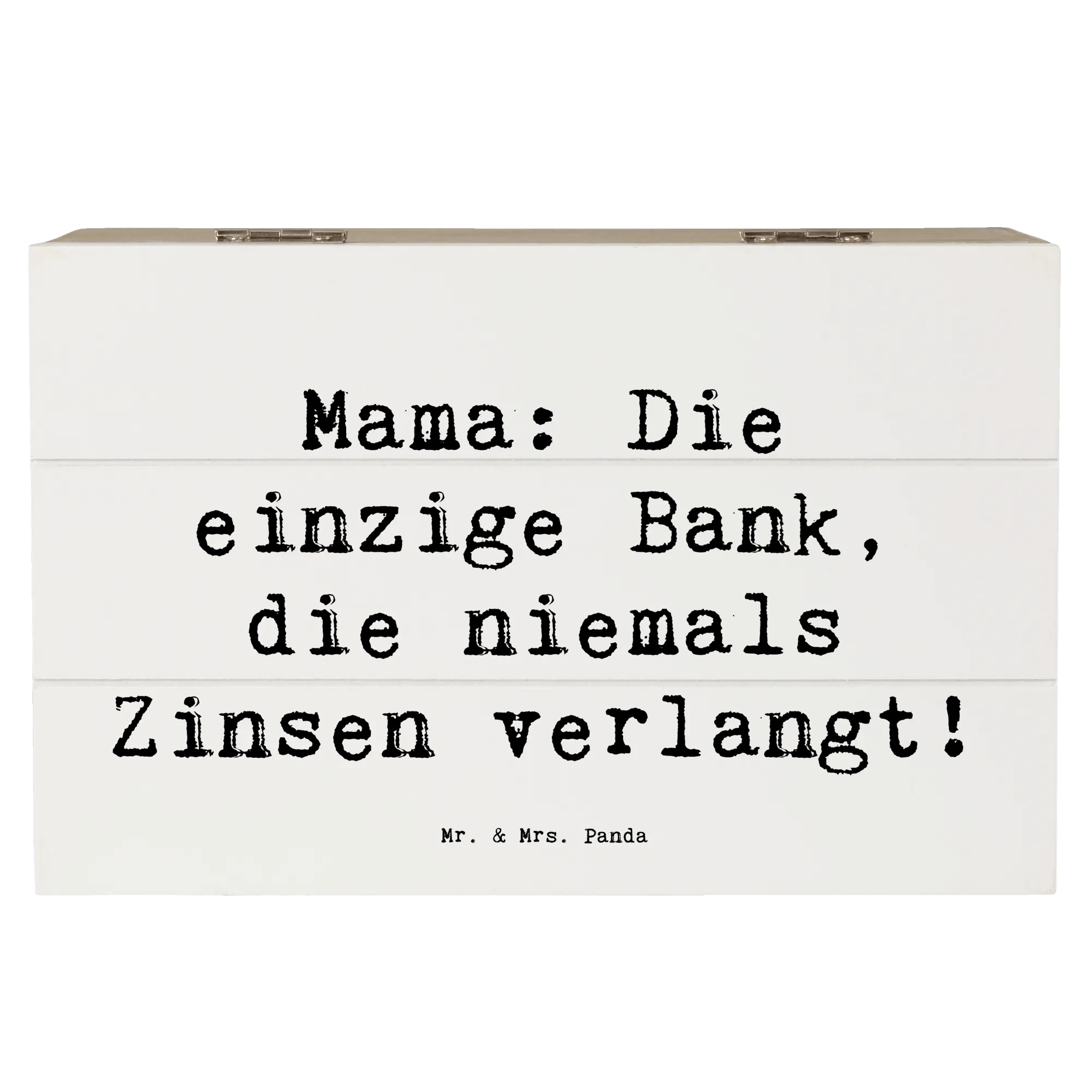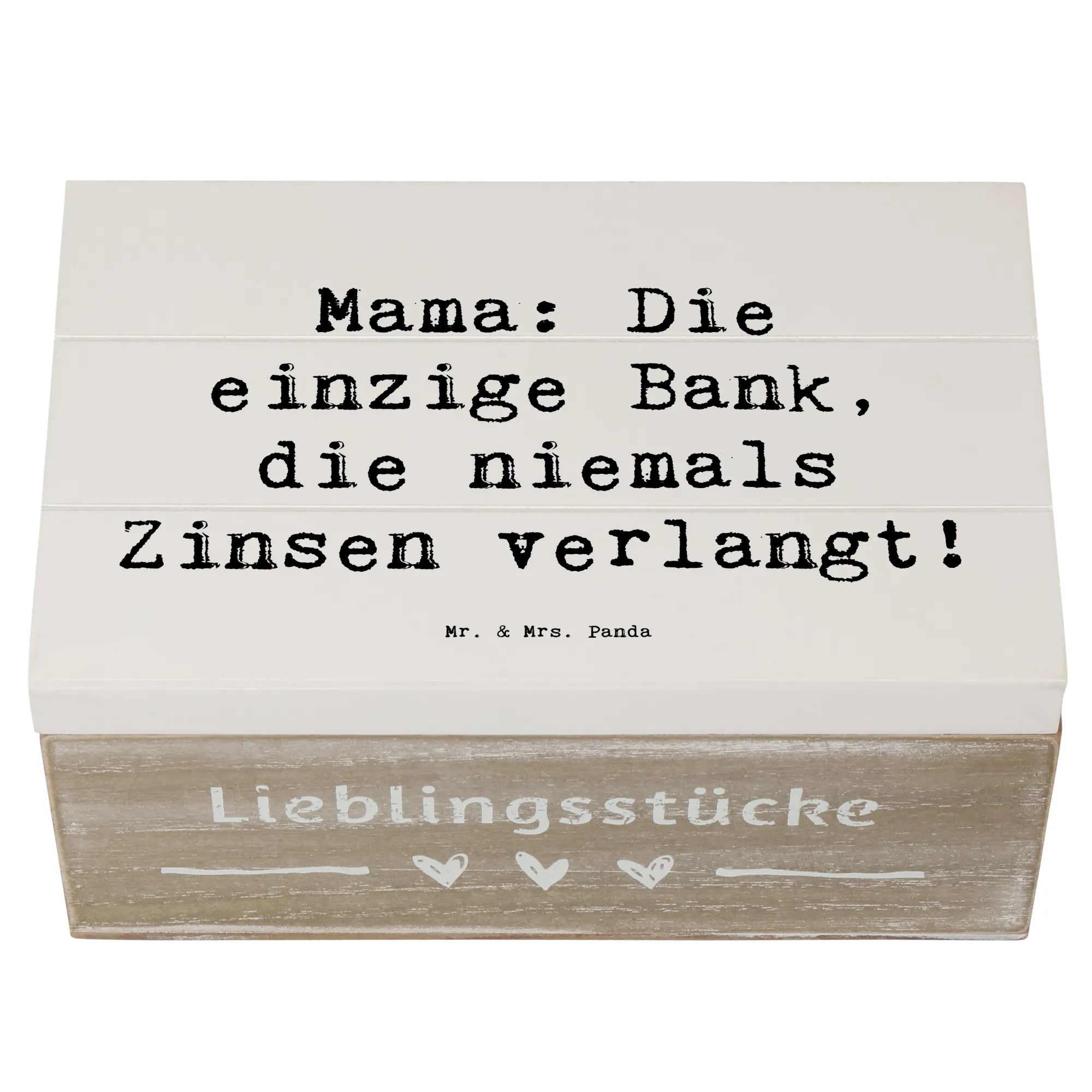 Die wunderschöne Holzkiste von Mr. & Mrs. Panda ist das perfekte Geschenk für jede Mutter und bringt ein Lächeln in ihr Gesicht. Diese Erinnerungskiste ist mehr als nur ein einfacher Aufbewahrungsort – sie ist eine Schatzkiste voller schöner Momente. Egal ob zum Muttertag, zum Geburtstag oder einfach als Dankeschön, diese Holzkiste eignet sich hervorragend, um die wertvollen Schätze Deines Lebens zu bewahren: von den ersten Babysachen über liebenswerte Zeichnungen bis hin zu Fotos von unvergesslichen Familienmomenten. Mit dem liebevollen Motto 'Mama: Die einzige Bank, die niemals Zinsen verlangt!' wird jedes Herz berührt.
