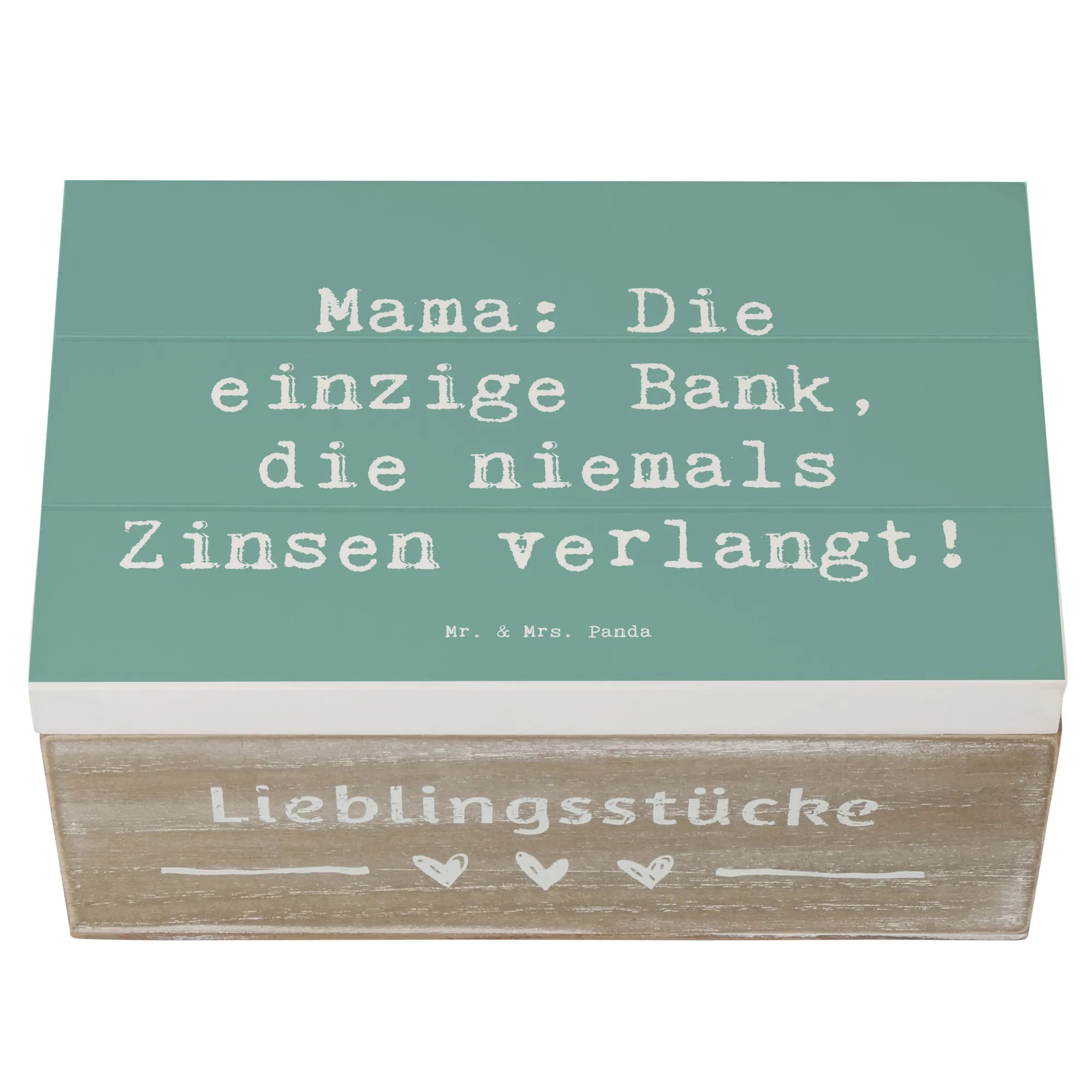 Hier kann alles einen Platz finden, was für Mama von Bedeutung ist: Fotos von besonderen Momenten, kleine Briefe der Kinder oder auch einfach nur die Erinnerung an schöne Tage zusammen. Mit einem motivierenden Spruch, "Mama: Die einzige Bank, die niemals Zinsen verlangt!", wird diese Kiste zum echten Hingucker und gleichzeitig zu einem Sinnbild für die unermüdliche Liebe einer Mutter.