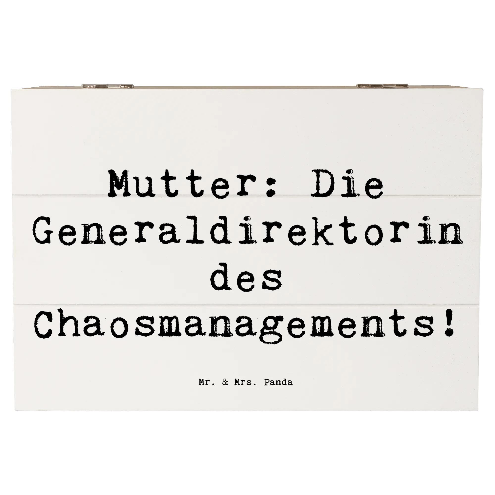 Die wunderschöne Holzkiste von Mr. & Mrs. Panda mit dem Motto 'Mutter: Die Generaldirektorin des Chaosmanagements!' ist das perfekte Geschenk für alle tollen Mütter. Diese praktische und zugleich dekorative Kiste ist nicht nur ein schöner Aufbewahrungsort für Erinnerungen, sondern auch eine liebevolle Hommage an die unerschütterliche Liebe und Fürsorge, die eine Mutter ihrem Kind schenkt.