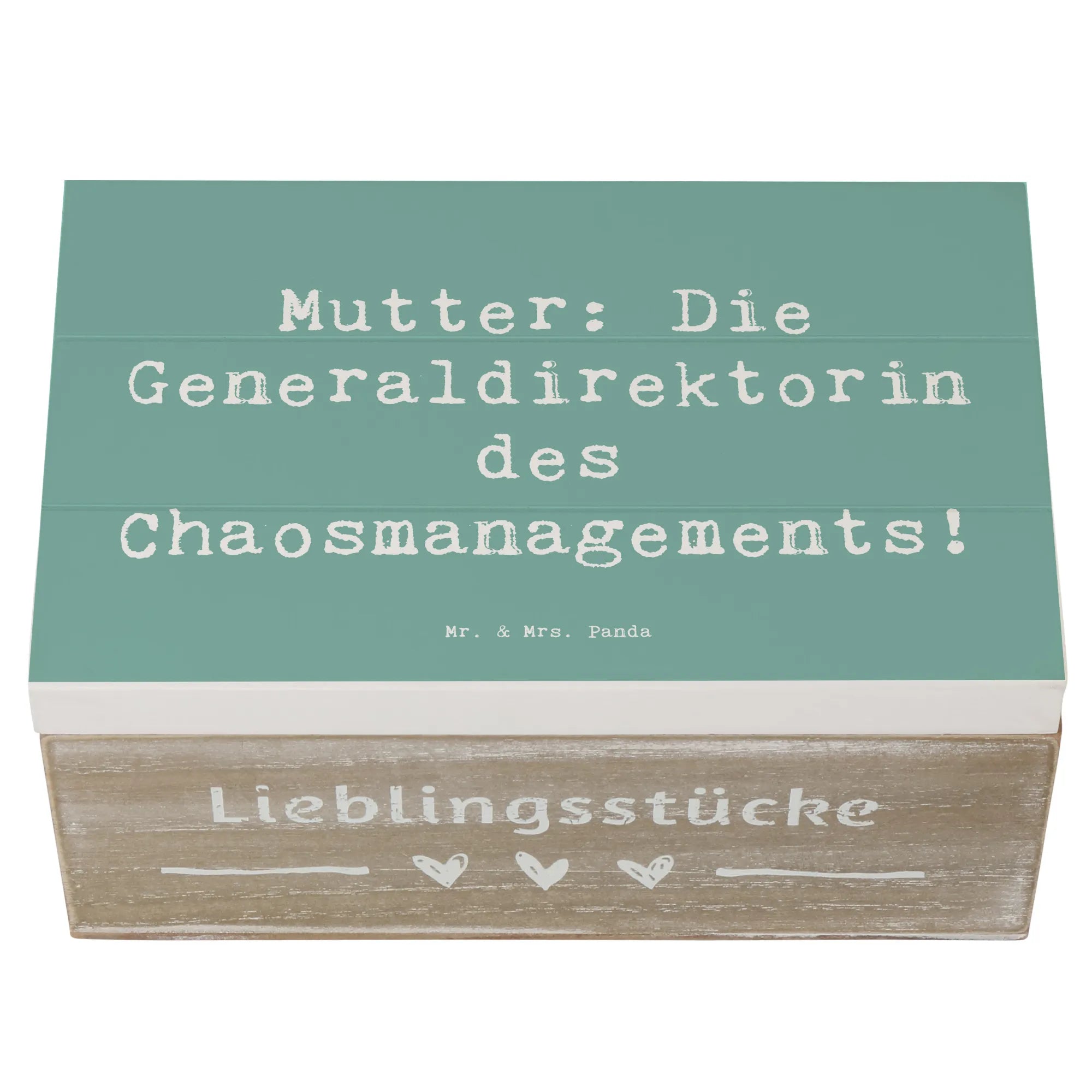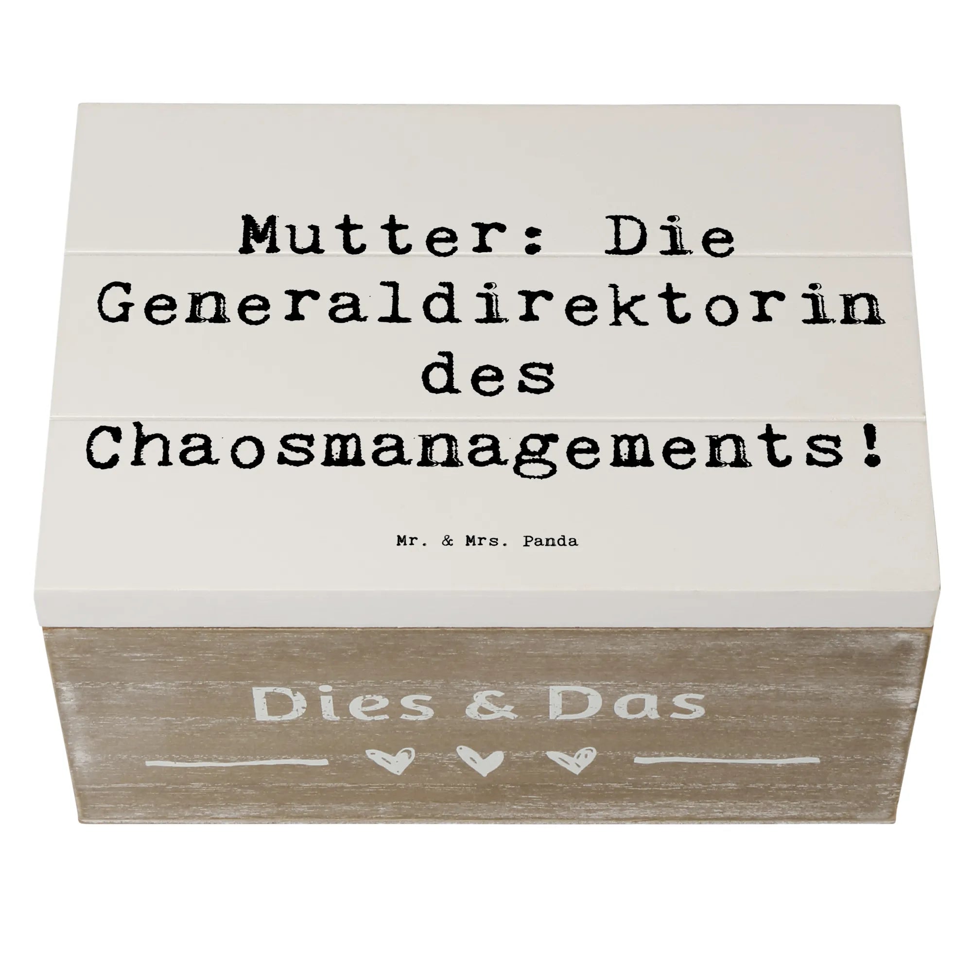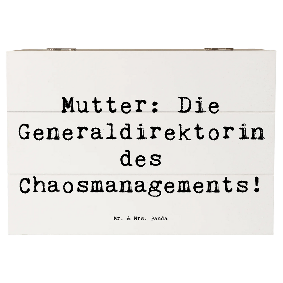 Die wundervolle Holzkiste von Mr. & Mrs. Panda ist das perfekte Geschenk für alle Mütter. Diese Kiste, bedruckt mit liebevollen Motiven und dem Slogan "Mutter: Die Generaldirektorin des Chaosmanagements!", ist eine Hommage an das, was Mütter für uns bedeuten.