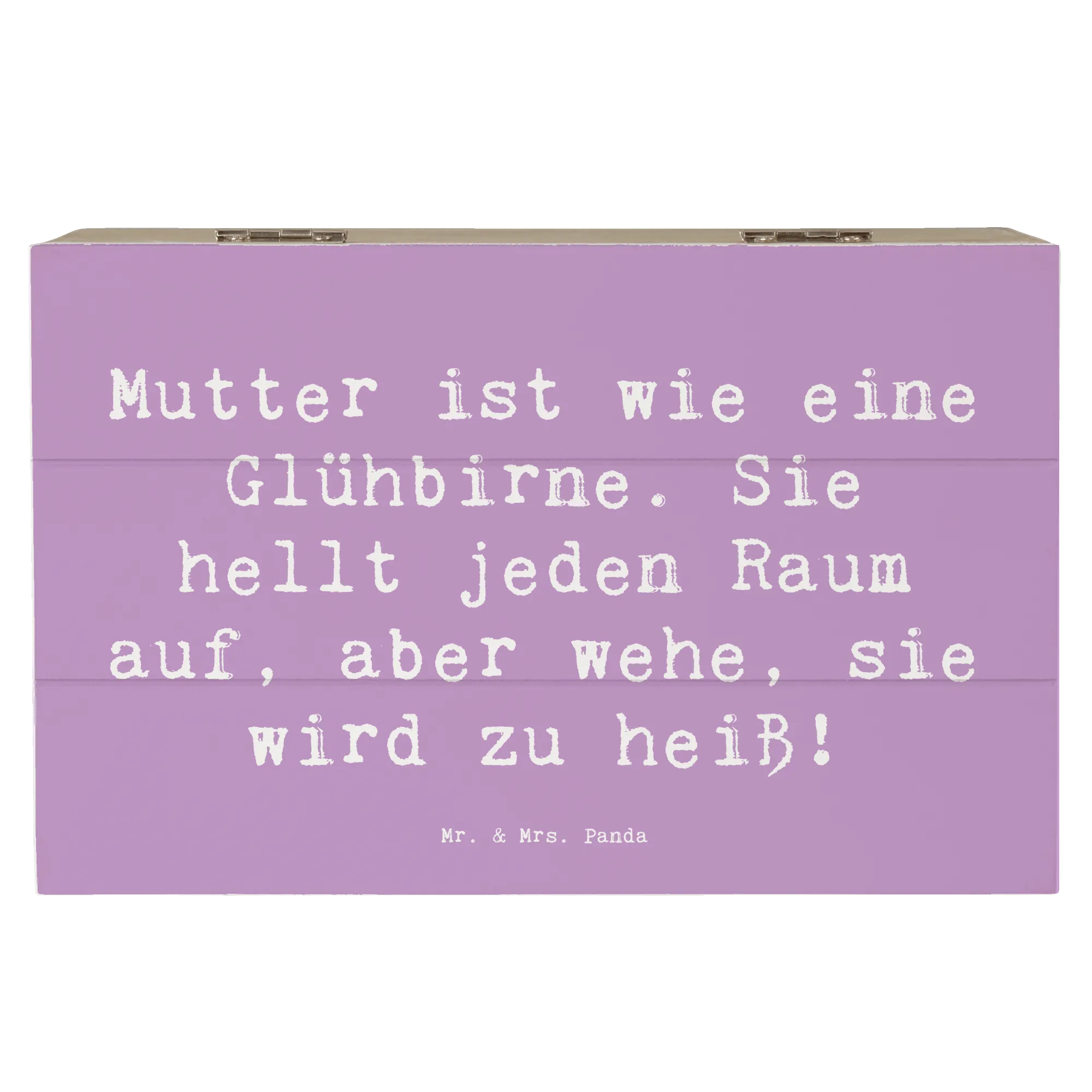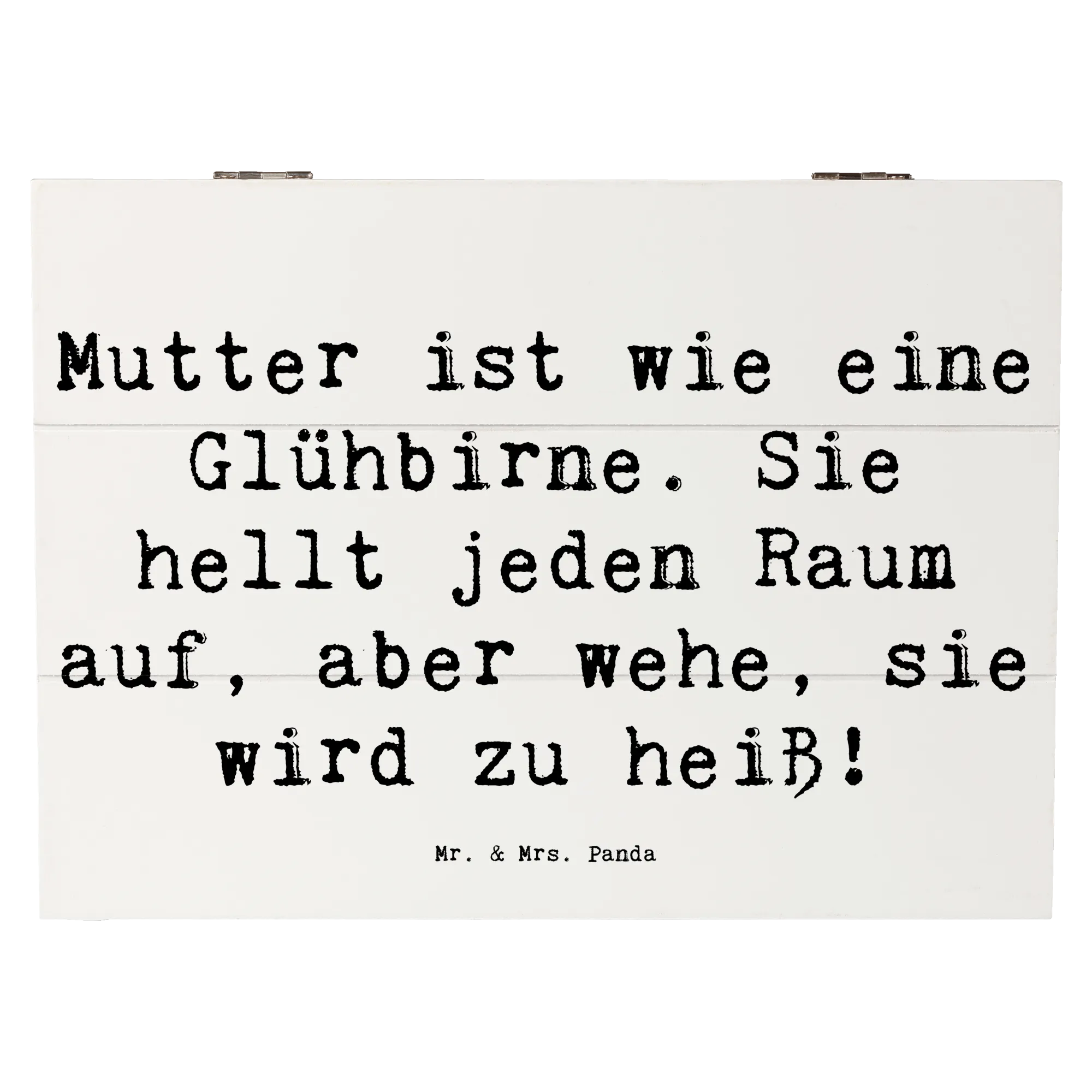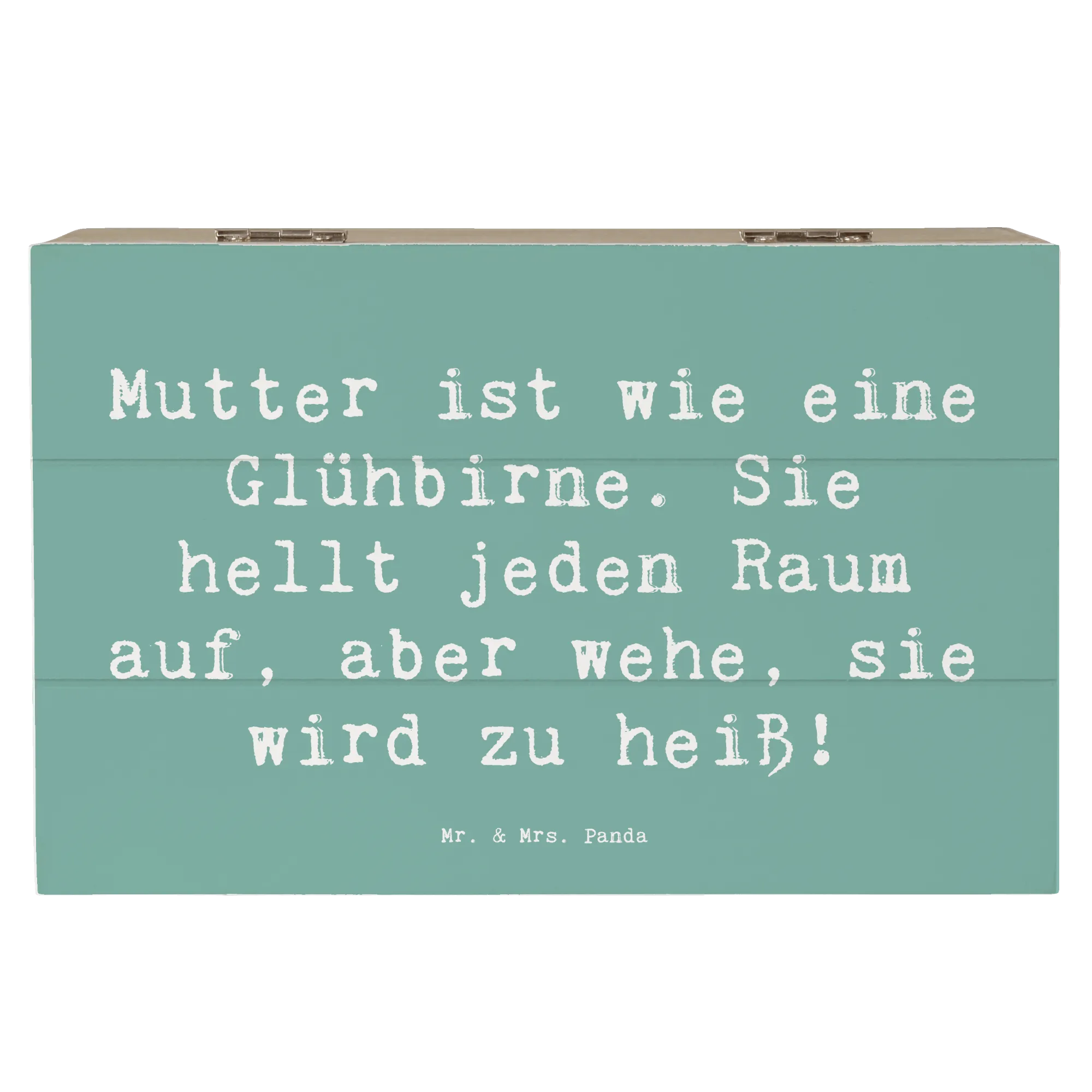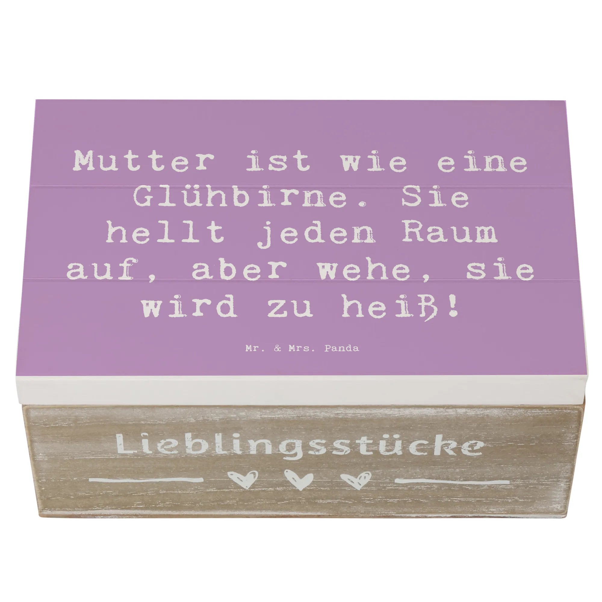 Ob zum Muttertag, Geburtstag oder einfach als Dankeschön für alles, was sie für dich getan hat - diese Holzkiste ist ein absolutes Must-Have. Mit dem Motive 'Mutter' wird die unendliche Liebe und Verbundenheit zwischen Mutter und Kind auf eine ganz besondere Art und Weise gefeiert. Der zauberhafte Spruch 'Mutter ist wie eine Glühbirne. Sie hellt jeden Raum auf, aber wehe, sie wird zu heiß!' sorgt zusätzlich für ein Lächeln!