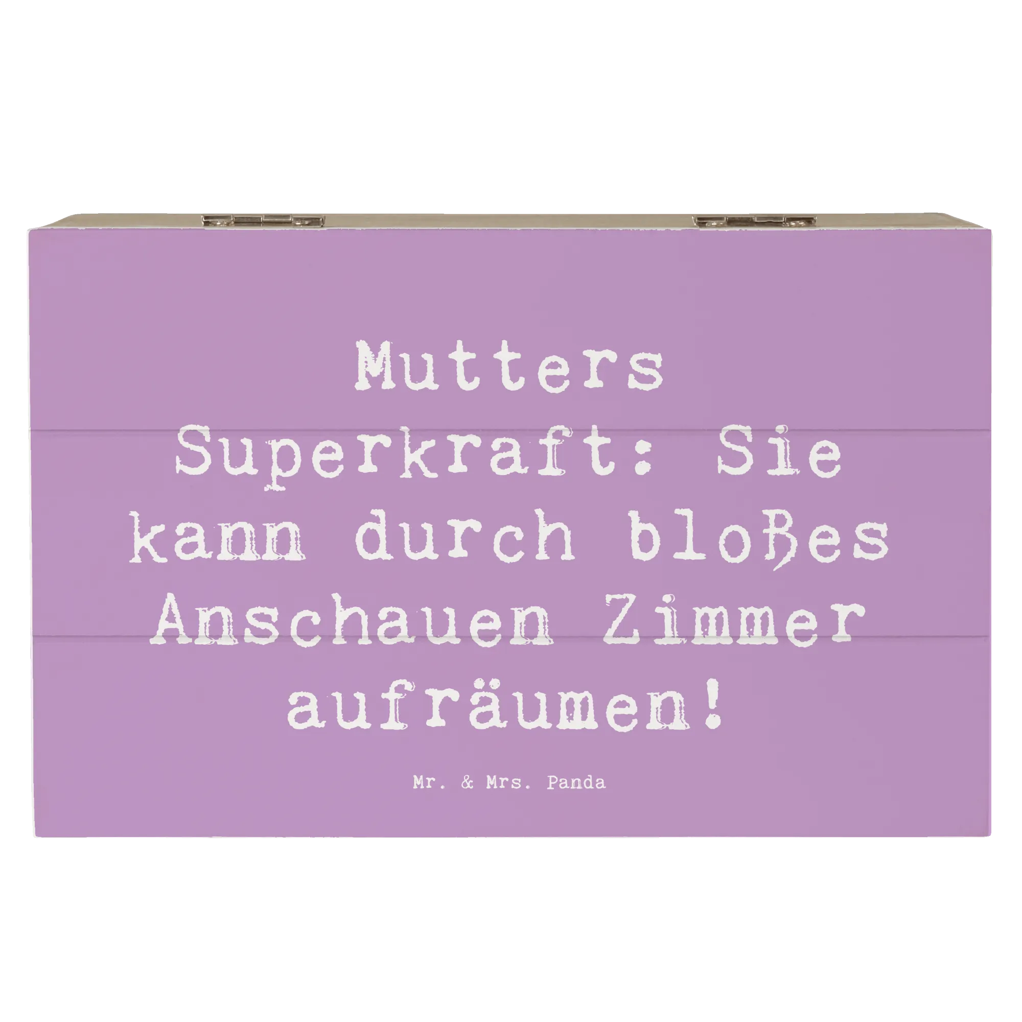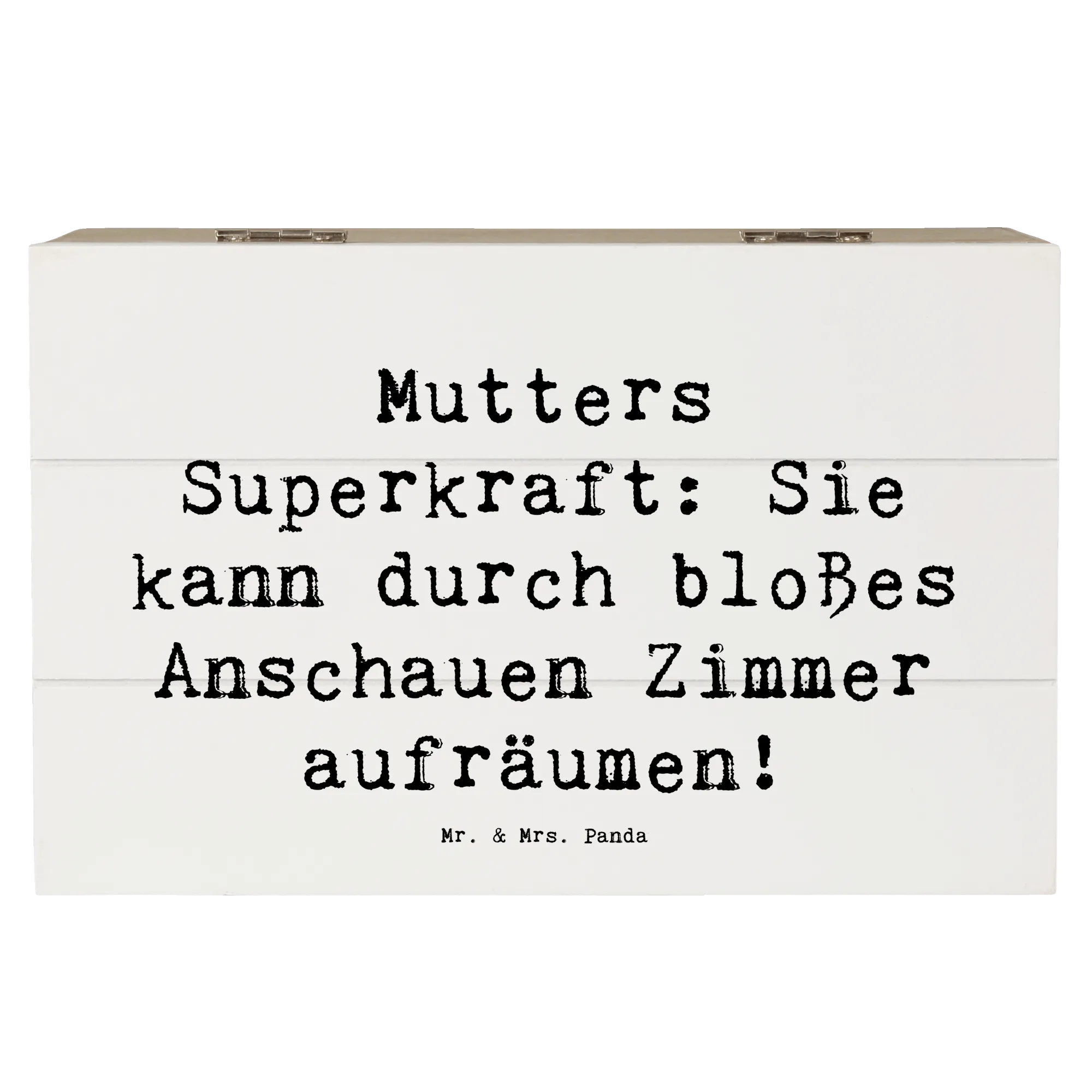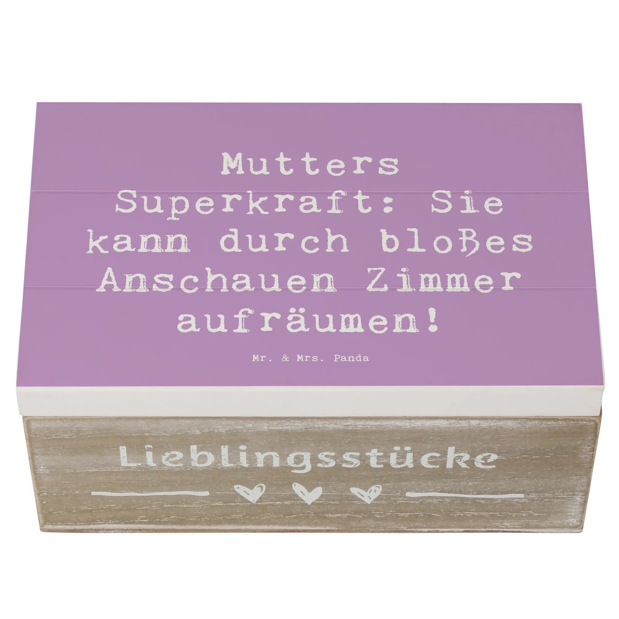 Entdecke die bezaubernde Holzkiste von Mr. & Mrs. Panda, die perfekt zur Mutterliebe passt! Diese wunderschöne Kiste mit dem liebevollen Motto 'Mutters Superkraft: Sie kann durch bloßes Anschauen Zimmer aufräumen!' ist mehr als nur ein Aufbewahrungsort; sie ist ein wahres Schmuckstück für jede Familie. Ideal zum Verschenken an Mütter zum Muttertag, um ihrer besonderen Rolle in unserem Leben zu danken. Mütter sind für uns alle eine Quelle unerschütterlicher Liebe und Unterstützung.