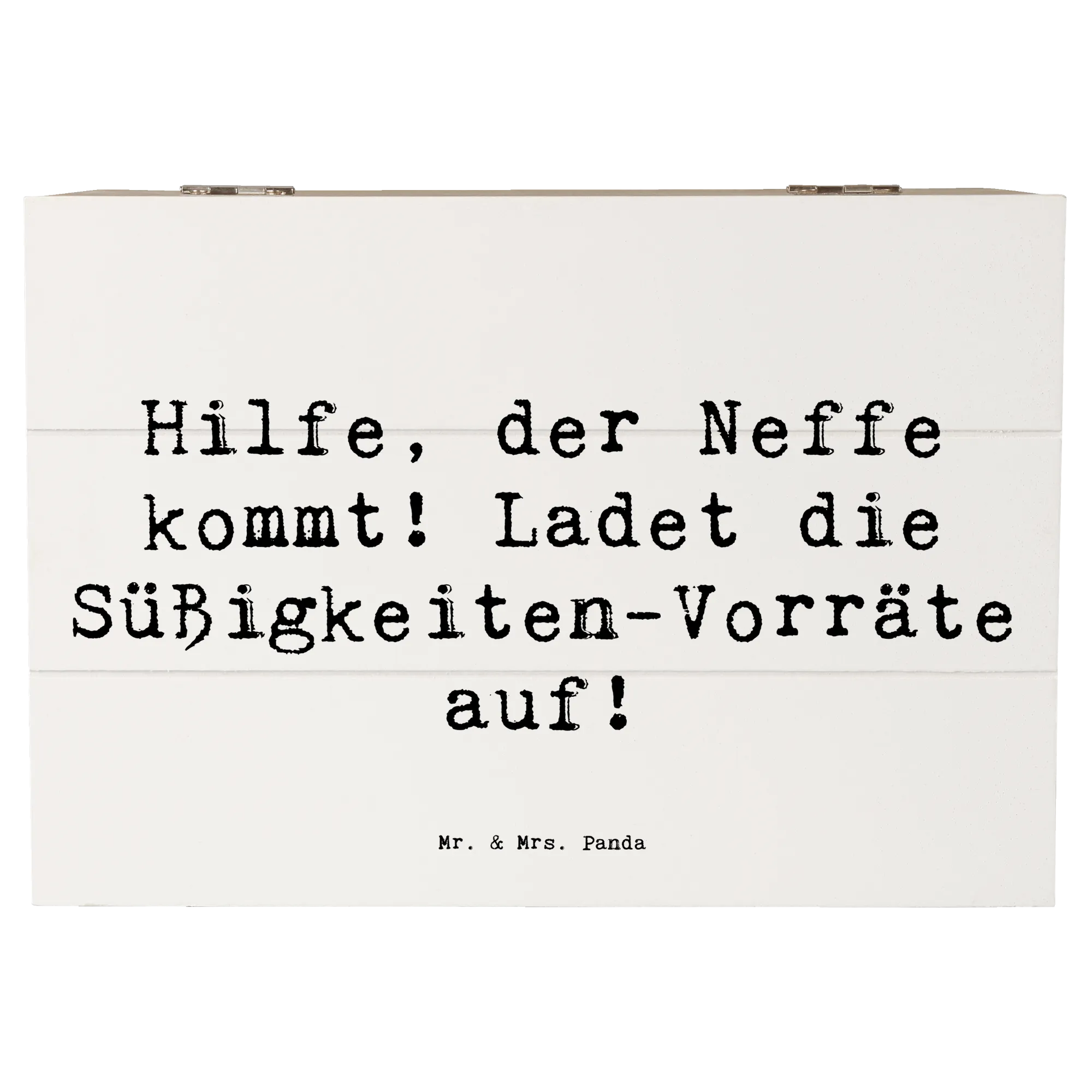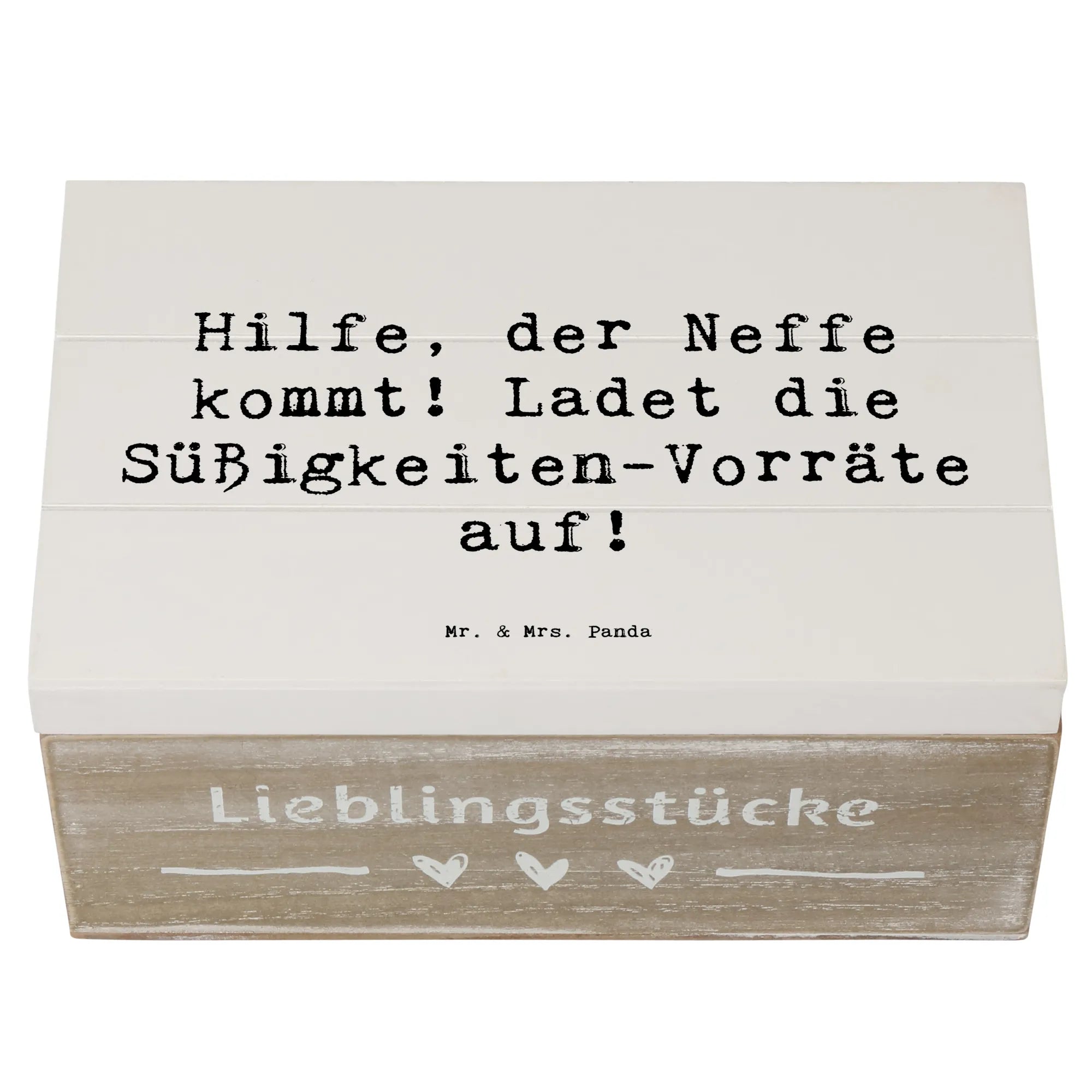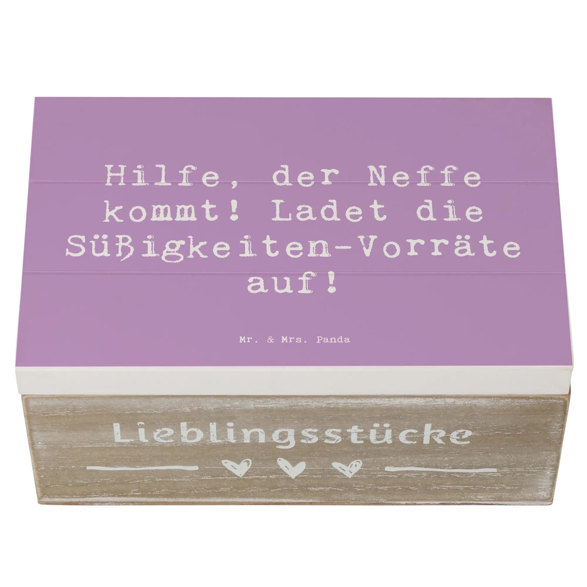 Entdecke die bezaubernde Holzkiste für deinen lieben Neffen aus der Familie & Verwandte Kollektion von Mr. & Mrs. Panda! Diese schöne Holzkiste ist mehr als nur ein Aufbewahrungsort. Sie ist ein Ort voller Erinnerungen, Abenteuer und besonderer Momente, die du mit deinem Neffen teilen wirst. Mit einem charmanten Spruch, 'Hilfe, der Neffe kommt! Ladet die Süßigkeiten-Vorräte auf!', sorgt diese Schatzkiste sofort für gute Laune und erhellt jedes Kinderzimmer.