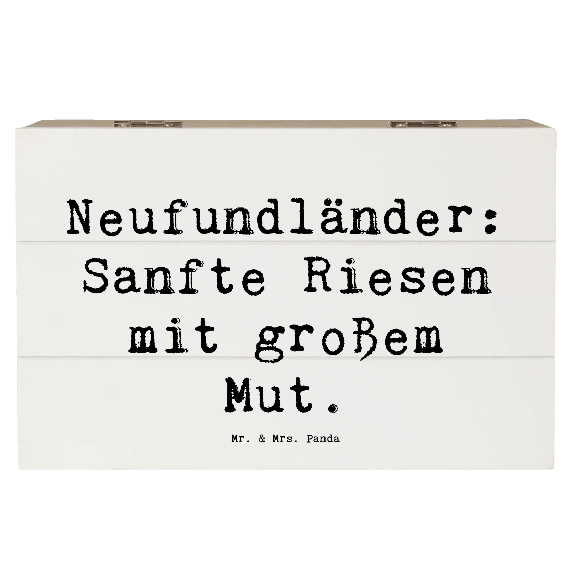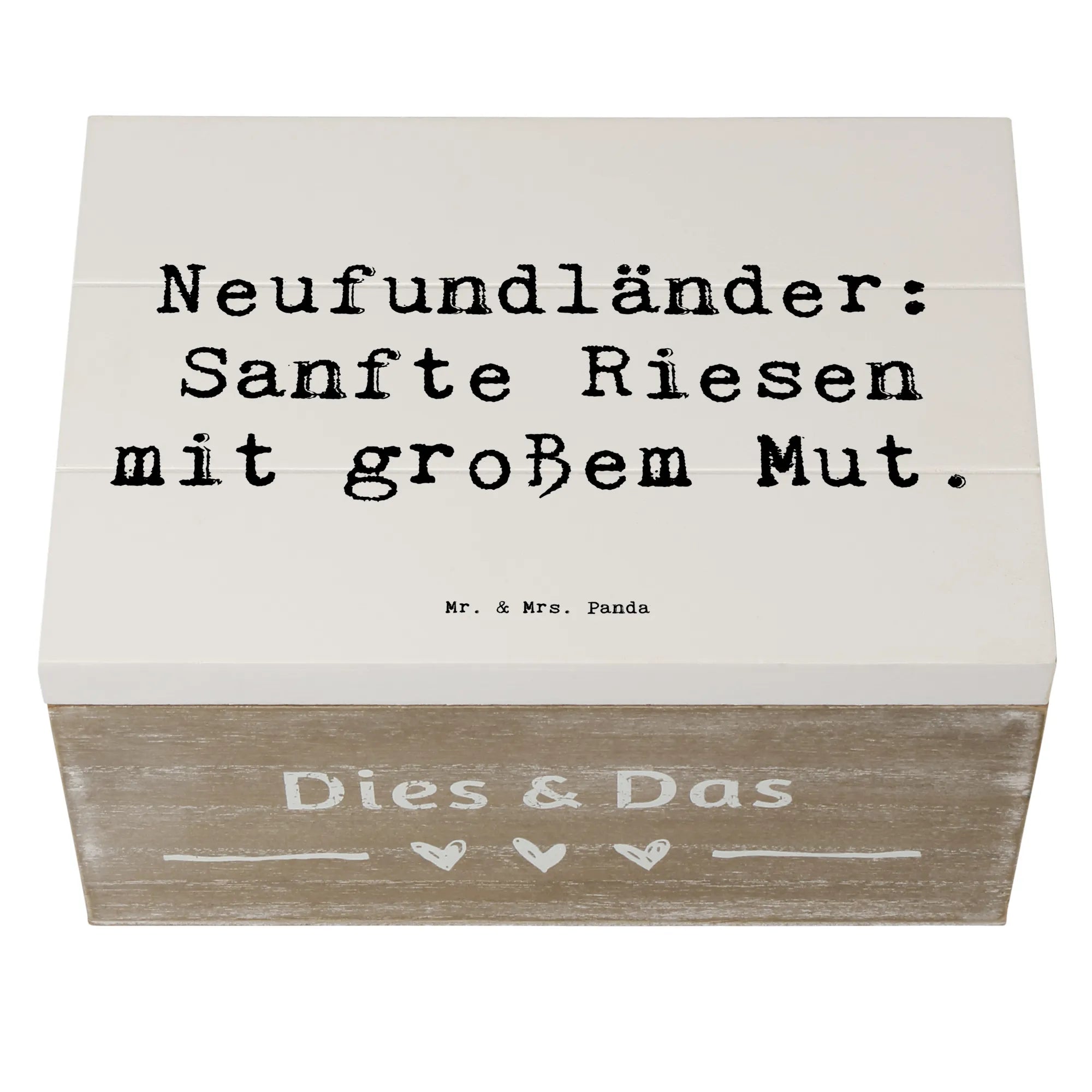 Die robuste Holzfaser sorgt dafür, dass die Kiste stabil und langlebig ist, während die niedlichen Sprüche von Mr. & Mrs. Panda jedes Herz höher schlagen lassen. Besonders ansprechend ist der Slogan "Neufundländer: Sanfte Riesen mit großem Mut", der jeden Hundeliebhaber begeistert.