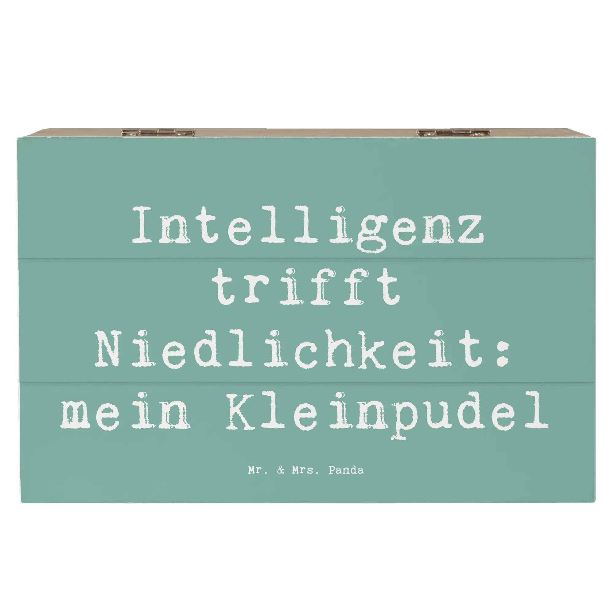 Die wunderschöne Holzkiste von Mr. & Mrs. Panda ist das perfekte Geschenk für alle Kleinpudel-Liebhaber! Mit dem charmanten Slogan "Intelligenz trifft Niedlichkeit: mein Kleinpudel" wird diese Kiste zum absoluten Highlight in jedem Zuhause.
