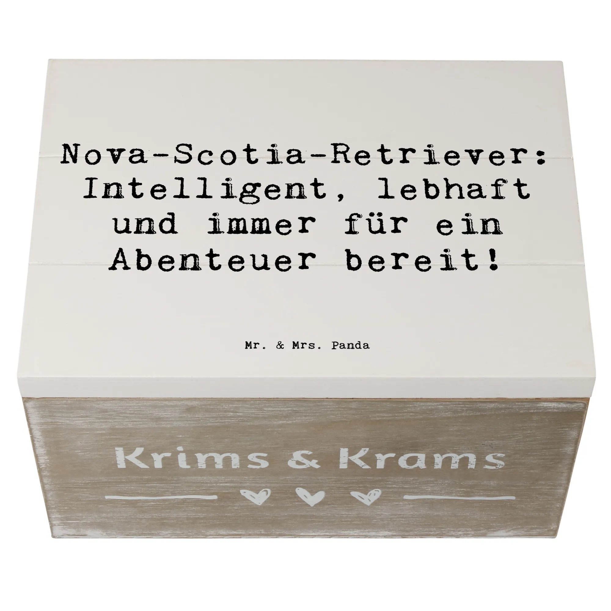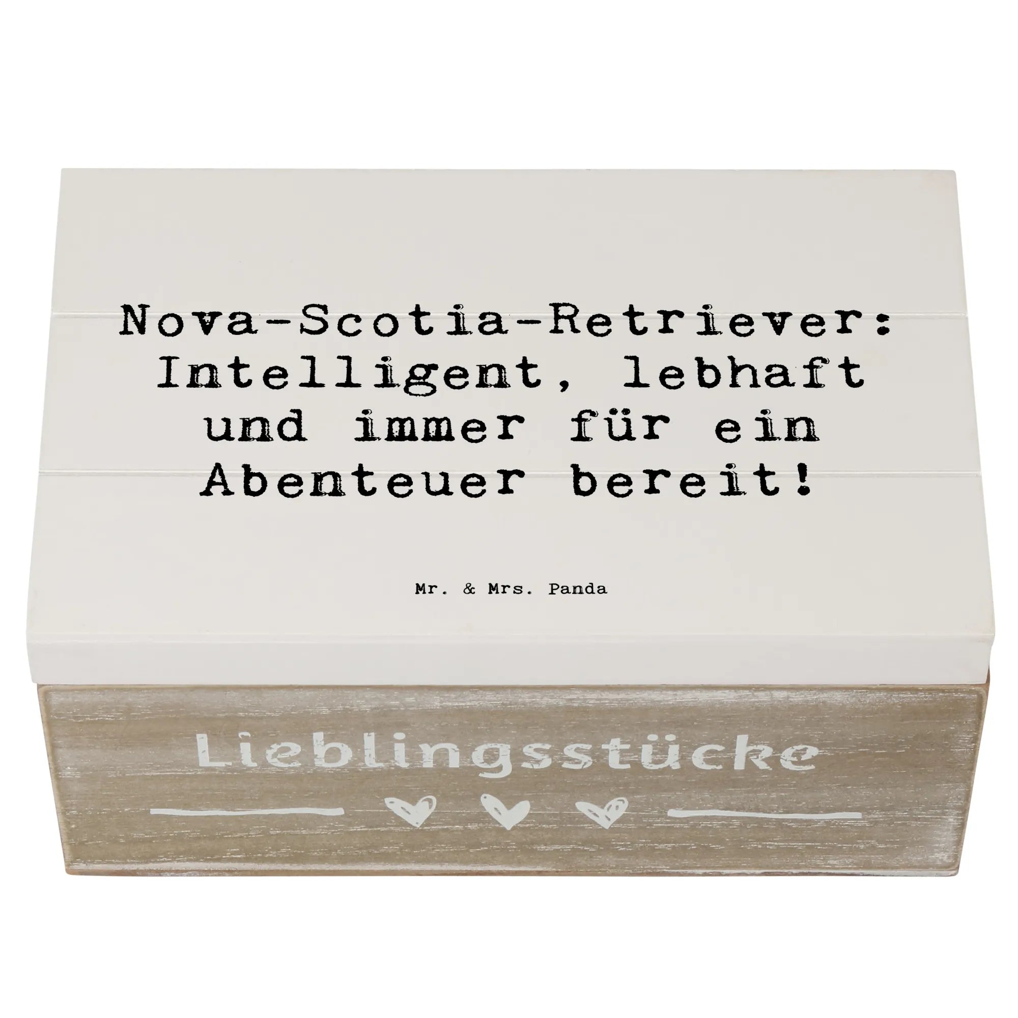 Entdecke die wunderschöne Holzkiste von Mr. & Mrs. Panda, die mit einem liebevollen Motiv des Nova Scotia Duck Tolling Retrievers verziert ist! 🦮 Diese Kiste ist das perfekte Geschenk für Hundeliebhaber und eignet sich hervorragend als Aufbewahrungsort für all deine kostbaren Erinnerungen.