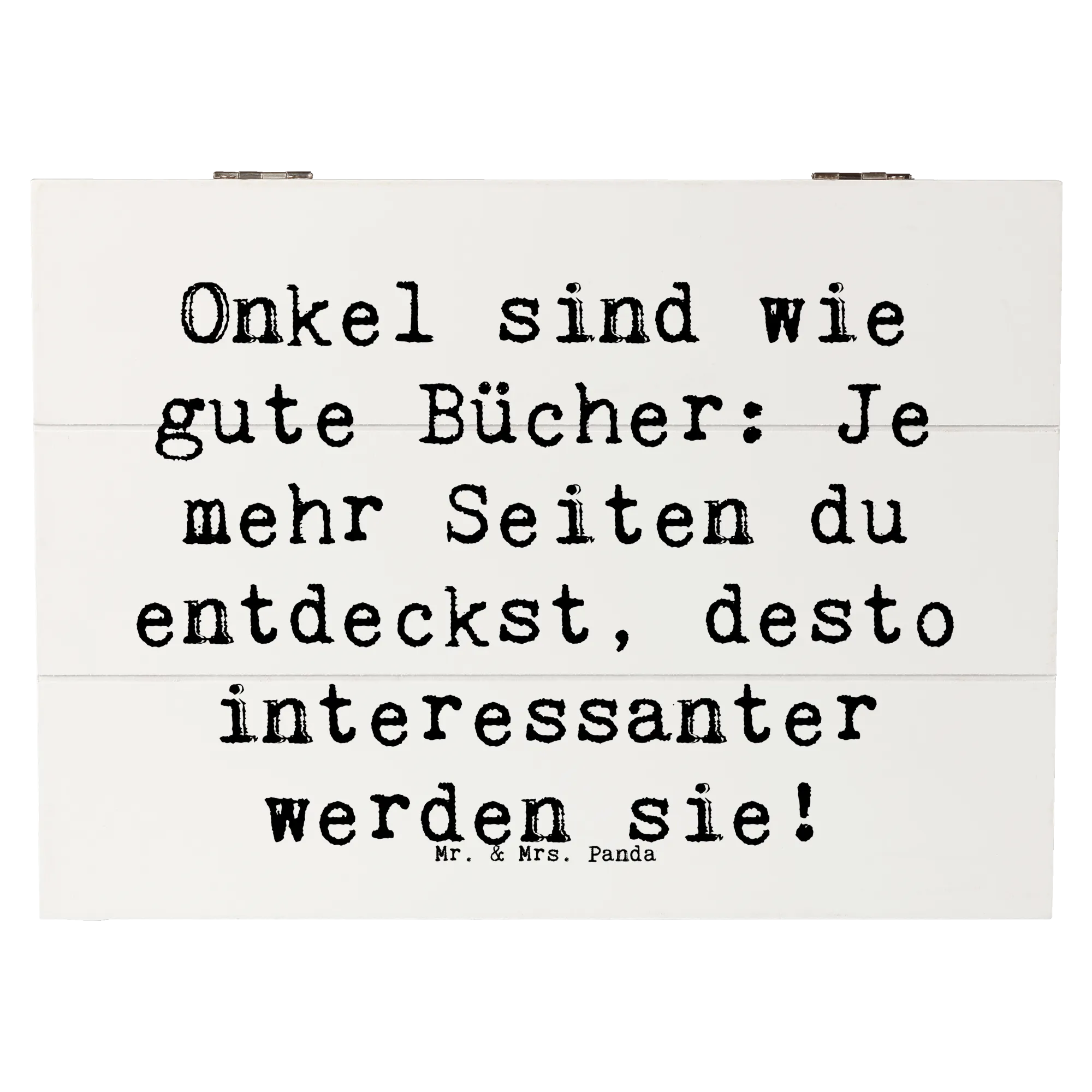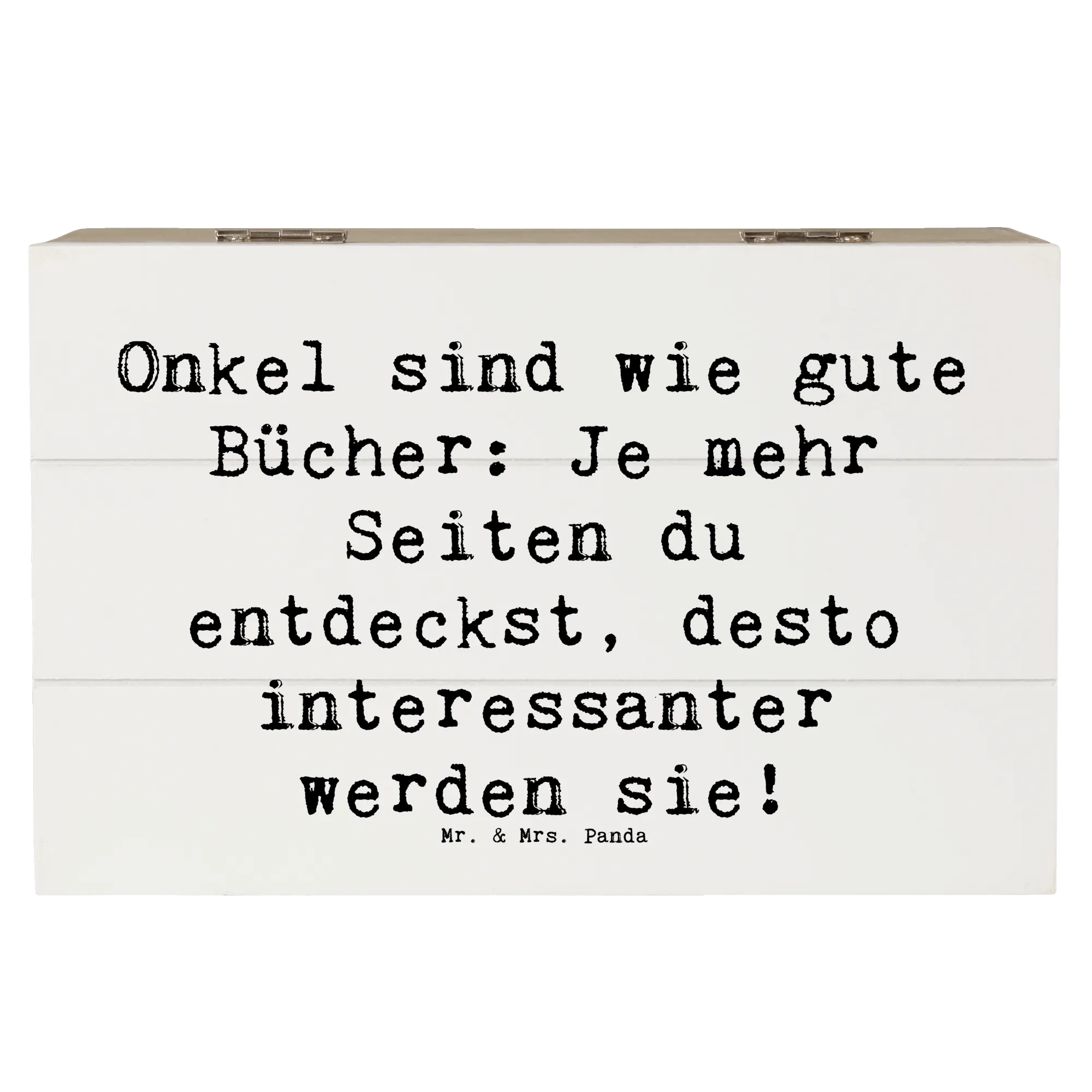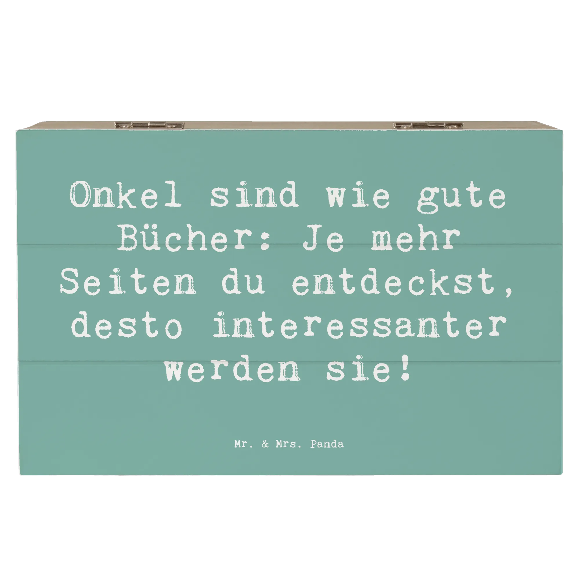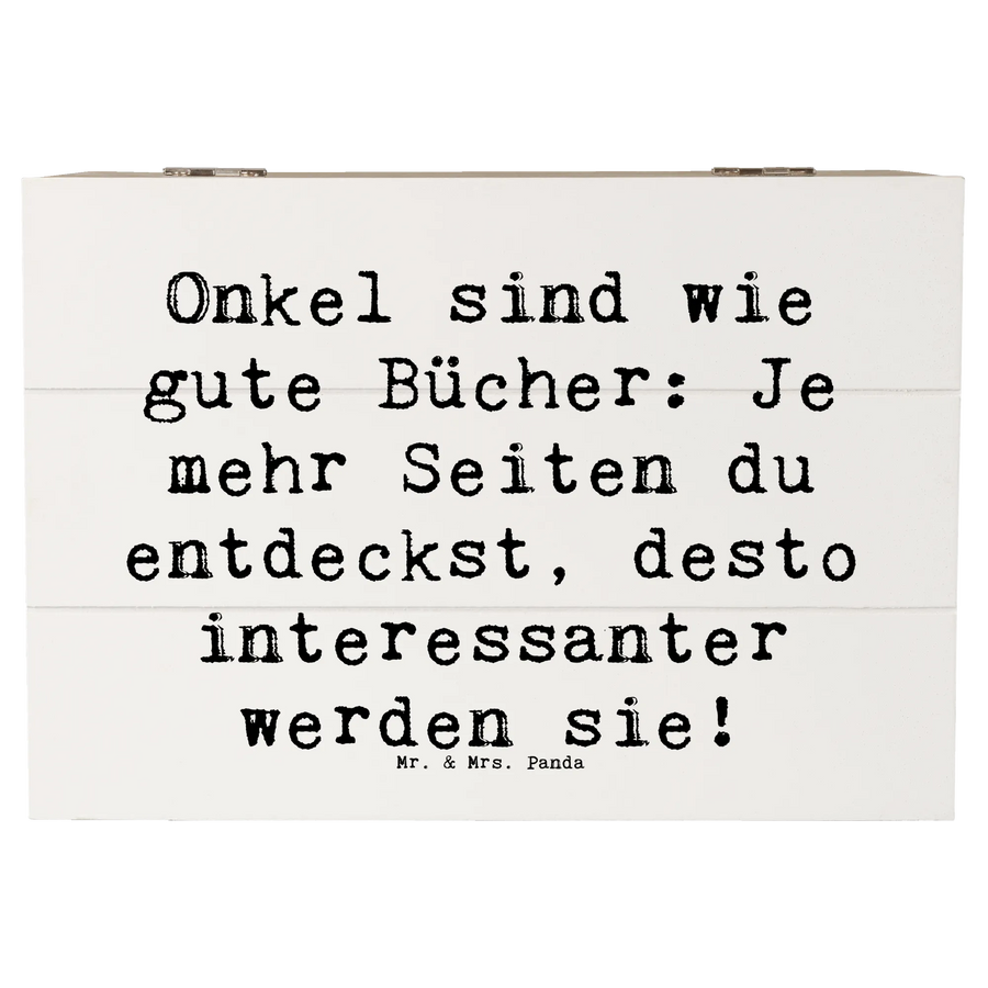 Die besonderen Sprüche auf der Kiste, wie "Onkel sind wie gute Bücher: Je mehr Seiten du entdeckst, desto interessanter werden sie!", machen sie zu einem ganz besonderen Geschenk. Die liebevolle Gestaltung, inspiriert von der Kollektion Familie & Verwandte von Mr. & Mrs. Panda, spiegelt die Bedeutung der Familie wider.