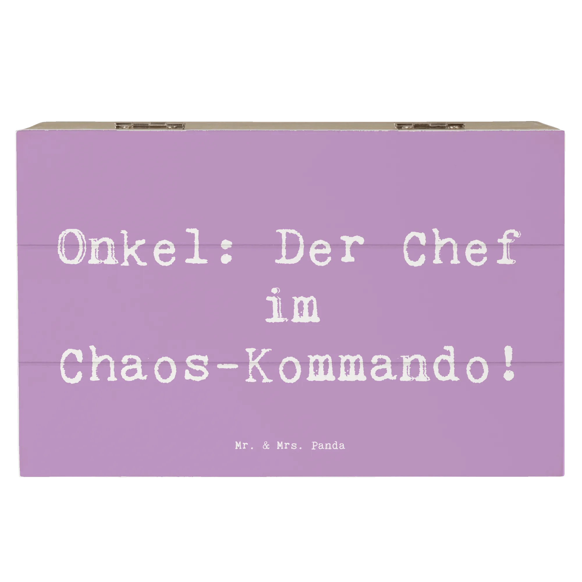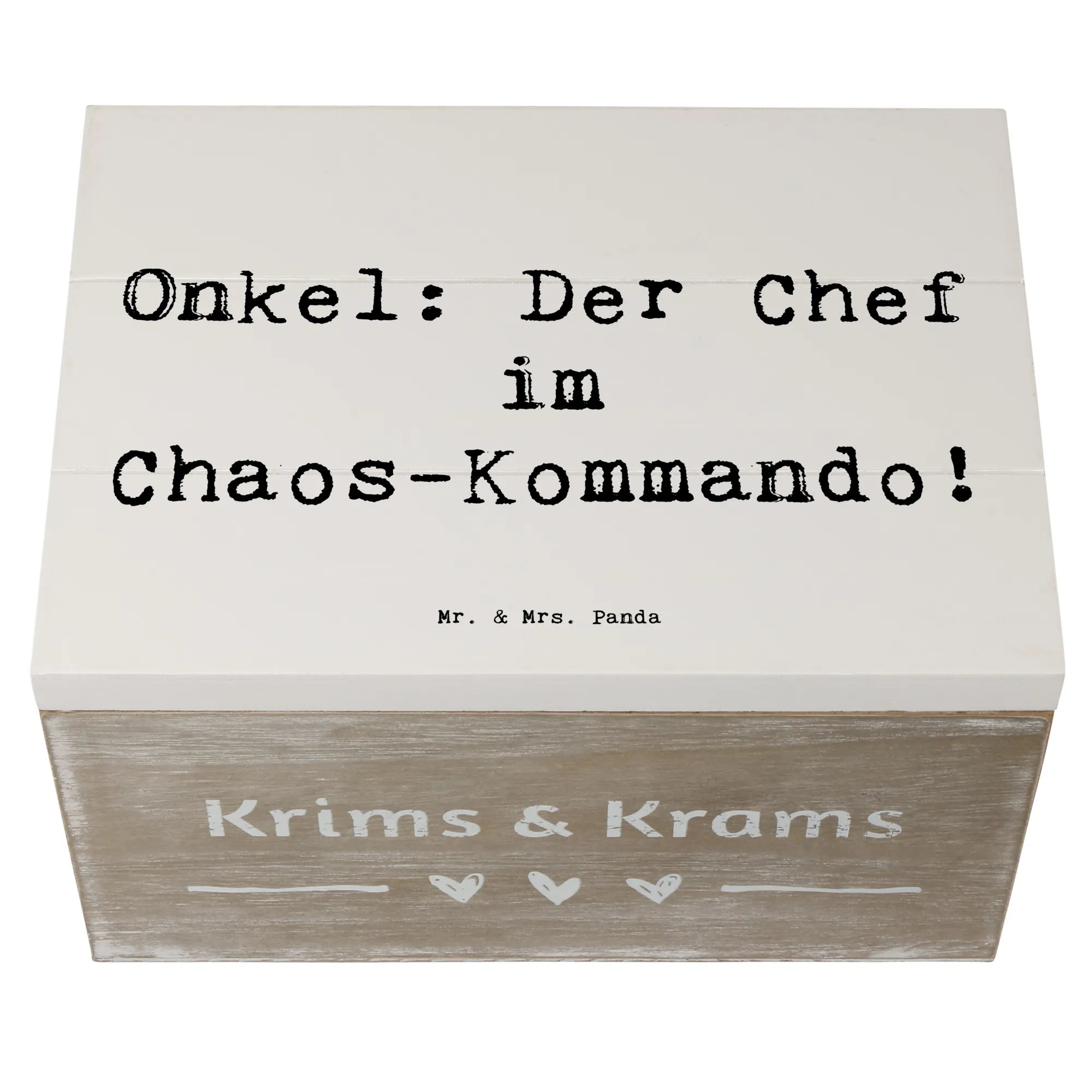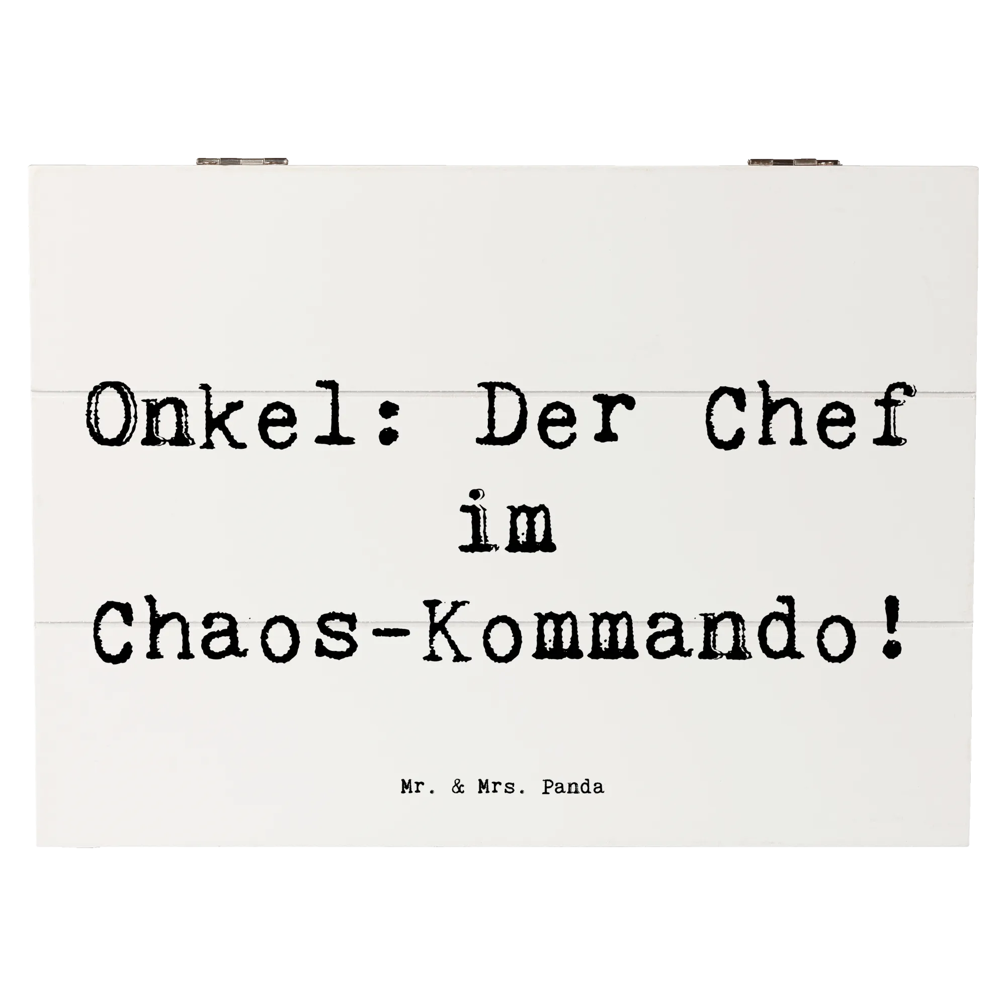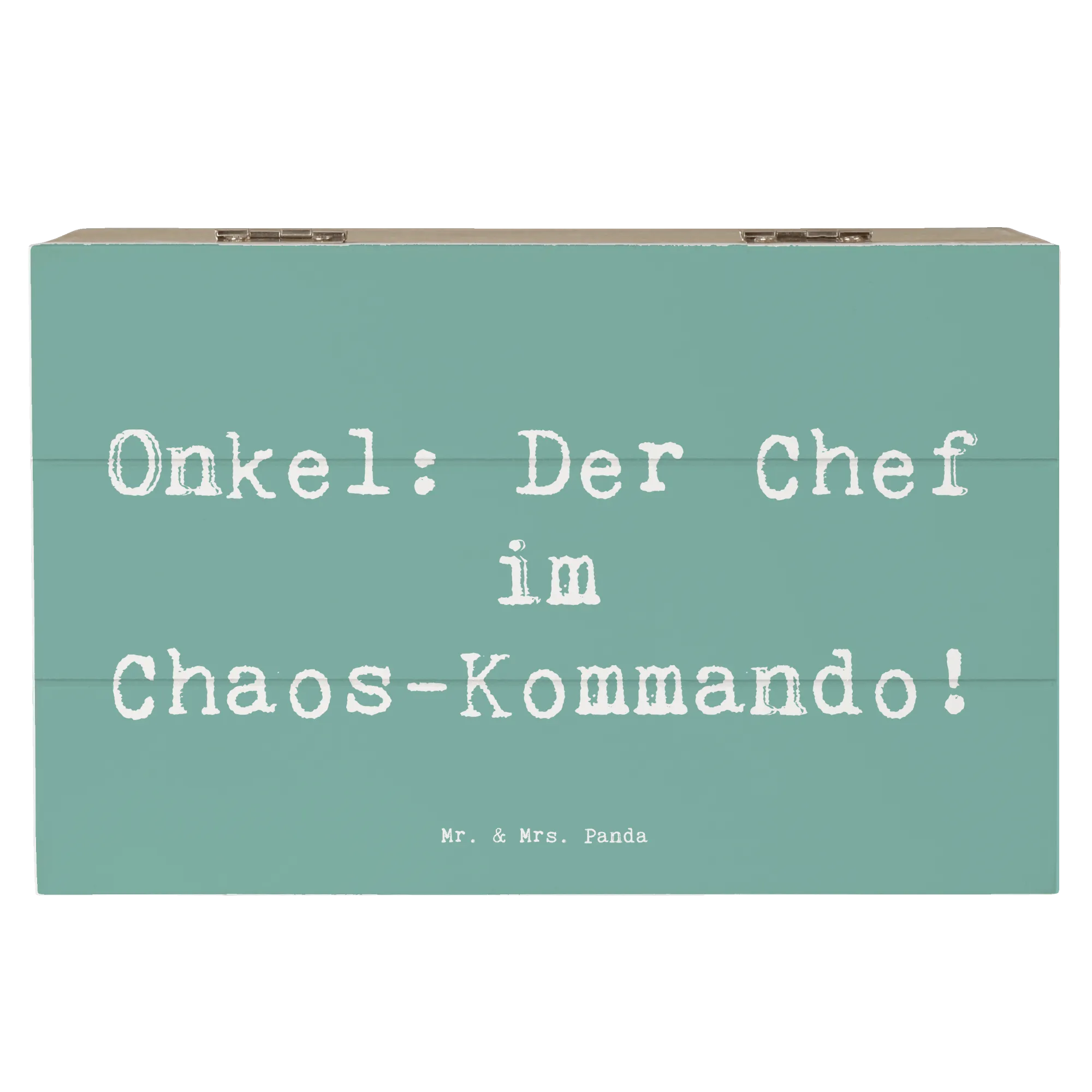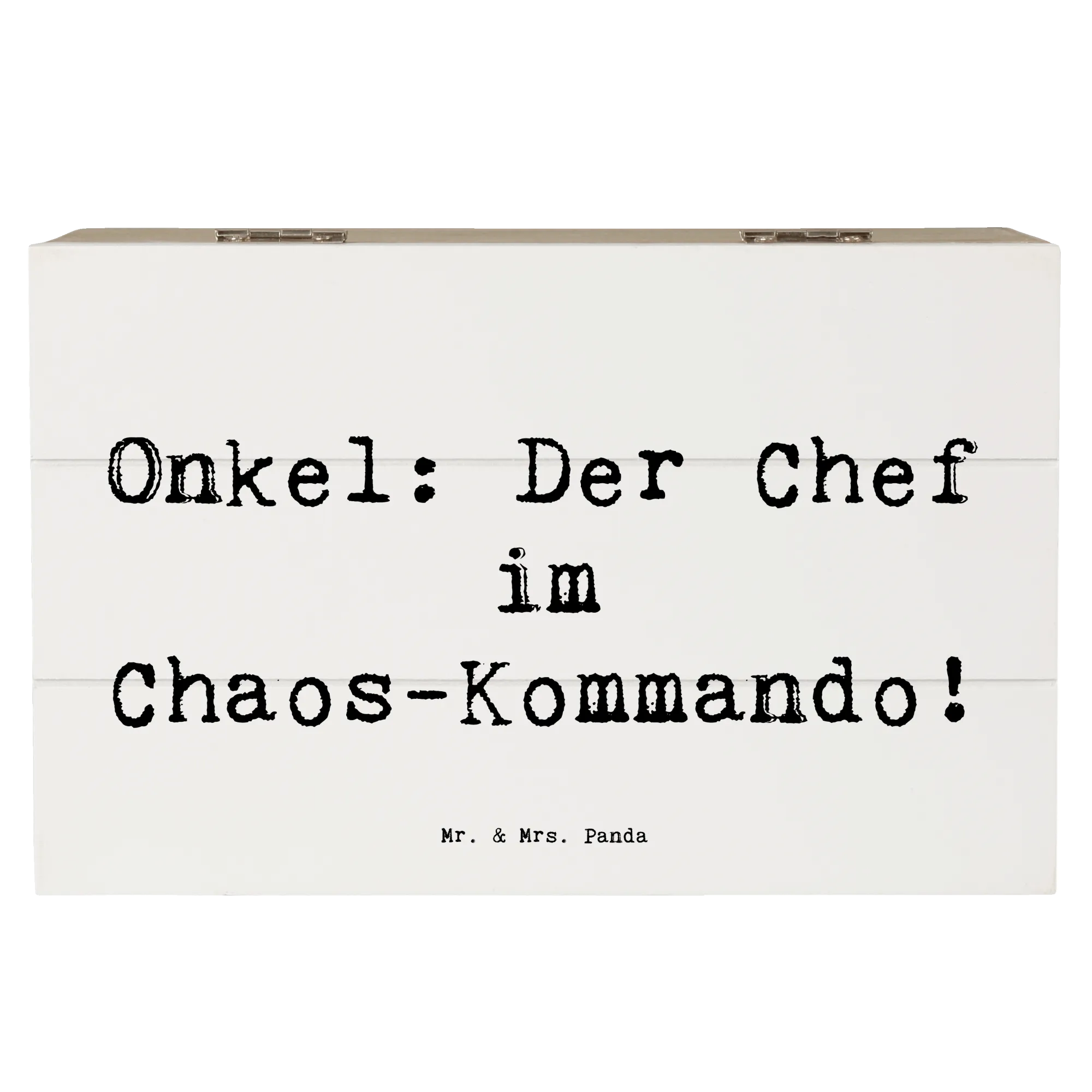 Die wunderschöne Holzkiste mit dem Motiv "Onkel: Der Chef im Chaos-Kommando!" von Mr. & Mrs. Panda ist das perfekte Geschenk für einen besonderen Teil deiner Familie. Diese Erinnerungskiste ist nicht nur ein praktischer Aufbewahrungsort für all die kleinen Schätze aus dem Leben, sondern auch ein liebevolles Dankeschön an deinen Onkel, der immer für ein gutes Wort und viele lustige Geschichten zur Seite steht. Ob für den Geburtstag, als Geschenk zu Weihnachten oder einfach als kleine Überraschung für zwischendurch – diese Kiste ist ein ganz besonderes Highlight.
