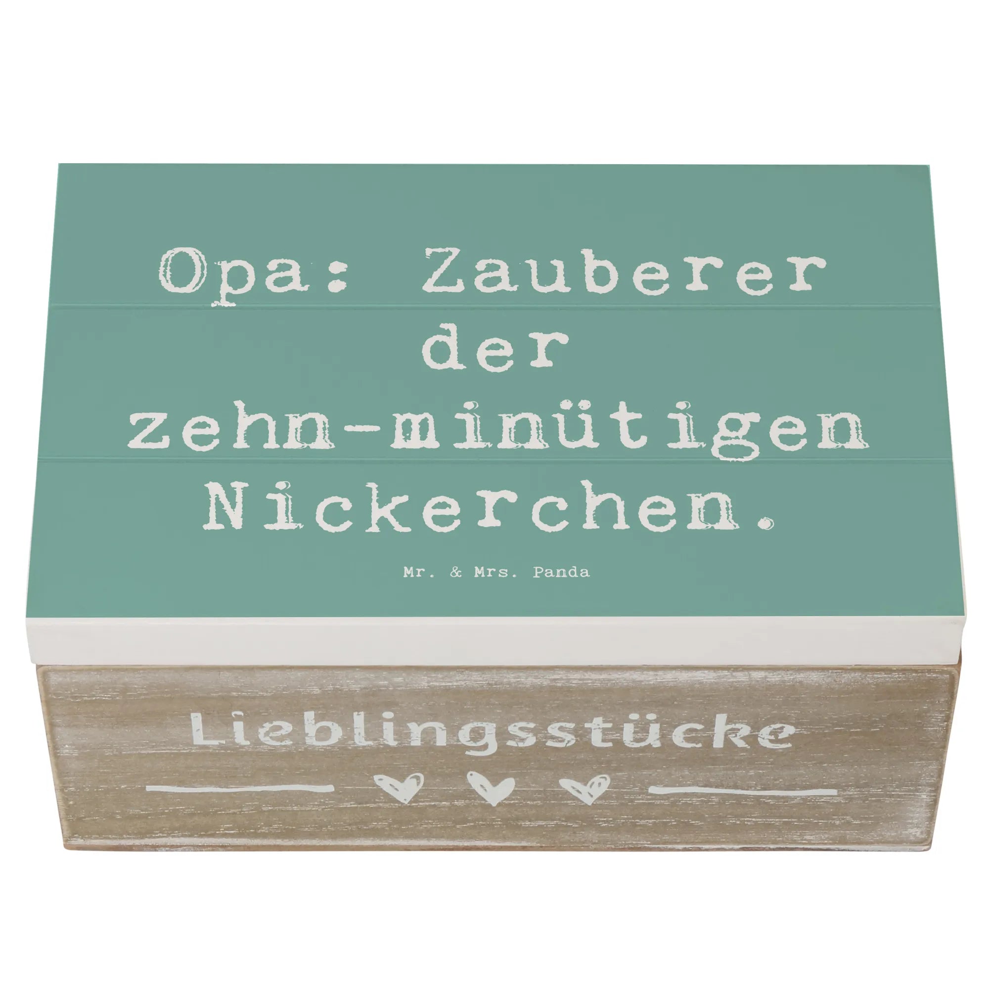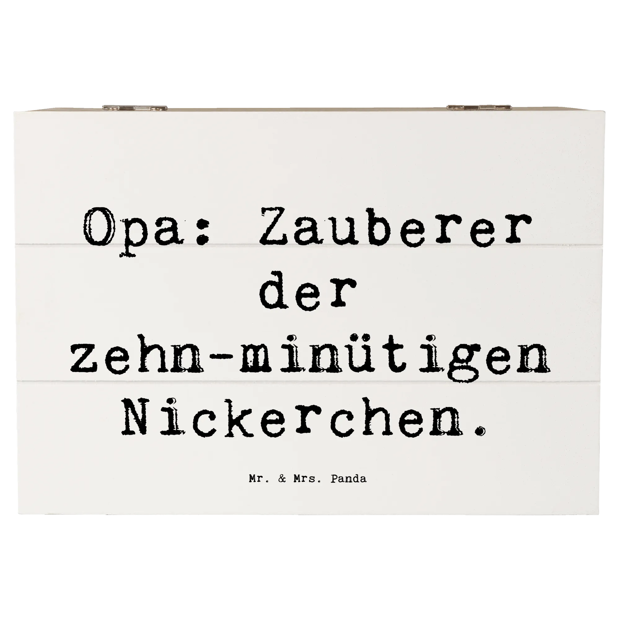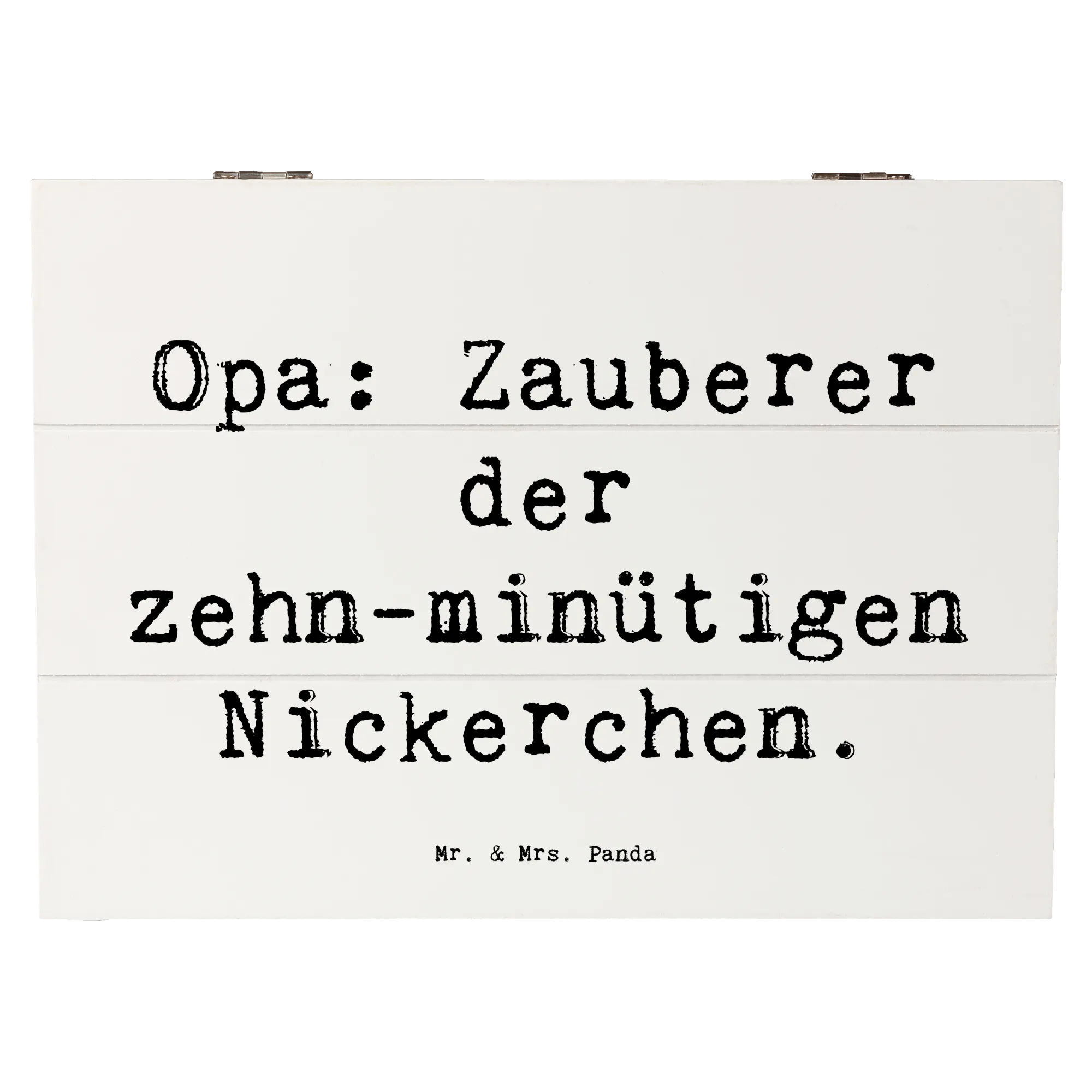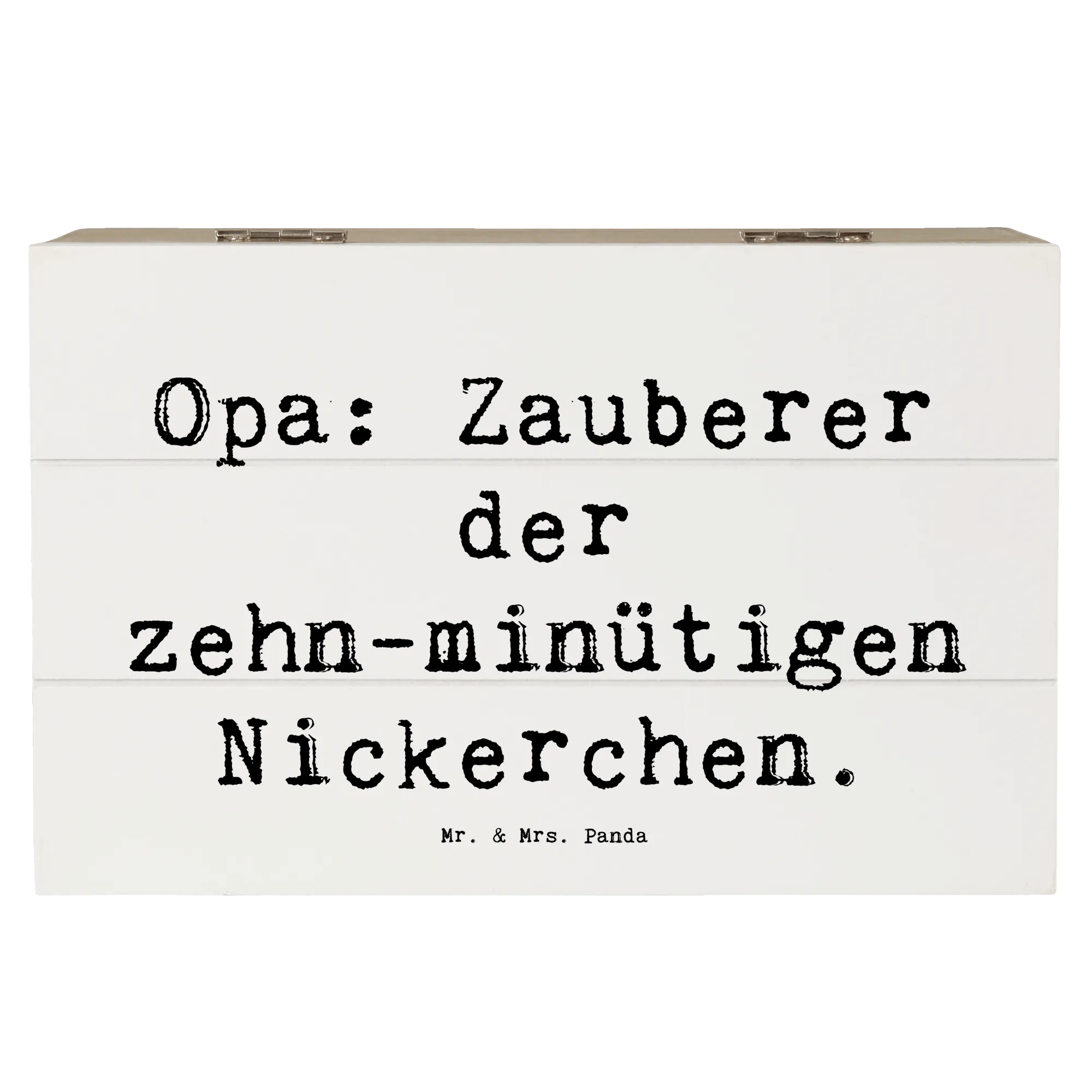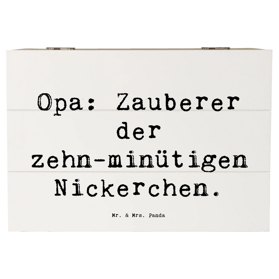 Die wunderschöne Holzkiste von Mr. & Mrs. Panda ist das perfekte Geschenk für Opa, den Großvater oder Großpapa. Mit dem liebevollen Slogan "Opa: Zauberer der zehn-minütigen Nickerchen" feierst Du die besondere Beziehung zwischen Opas und ihren Enkeln. Diese wunderbare Schatzkiste ist nicht nur eine Aufbewahrungsbox für all die kleinen Schätze, die man im Leben sammelt, sondern auch eine Erinnerungskiste, die Erinnerungen an gemeinsame Momente in der Familie festhält. Egal ob für den nächsten Geburtstag, als Dankeschön oder einfach nur so - diese Kiste ist ein ideales Geschenk für jeden Anlass!