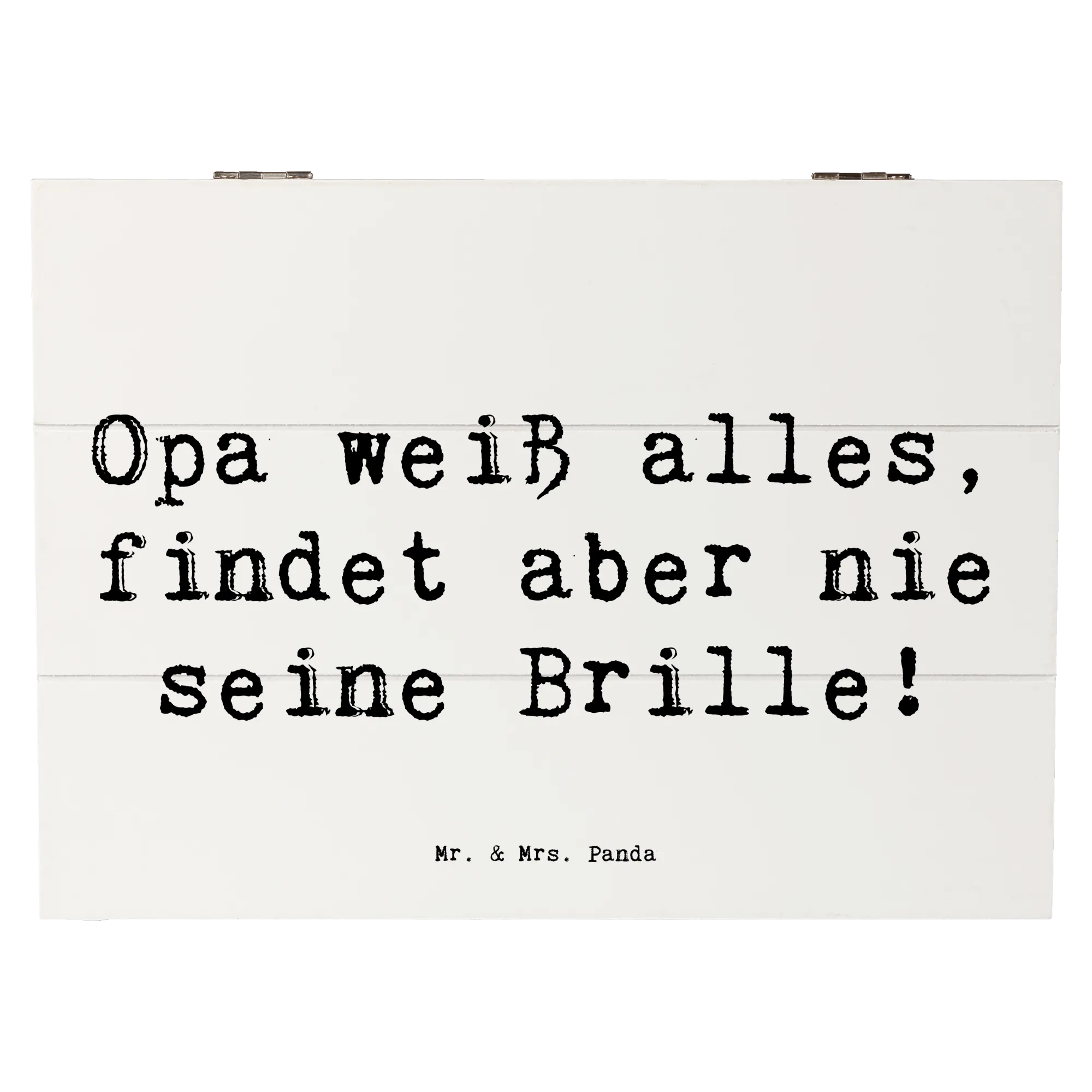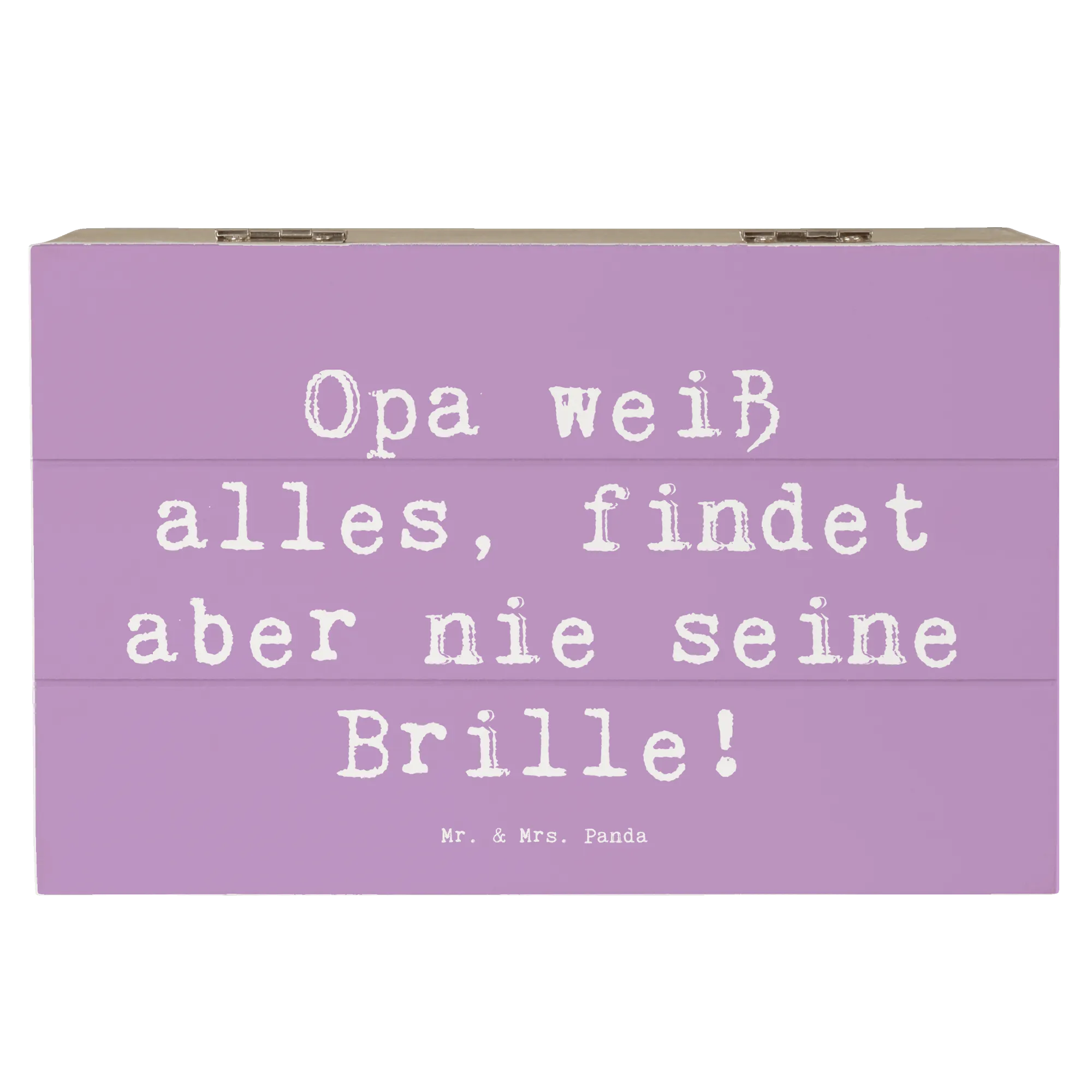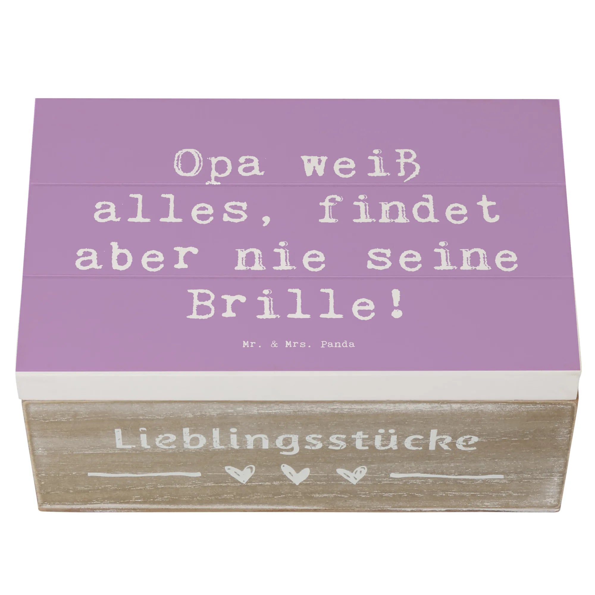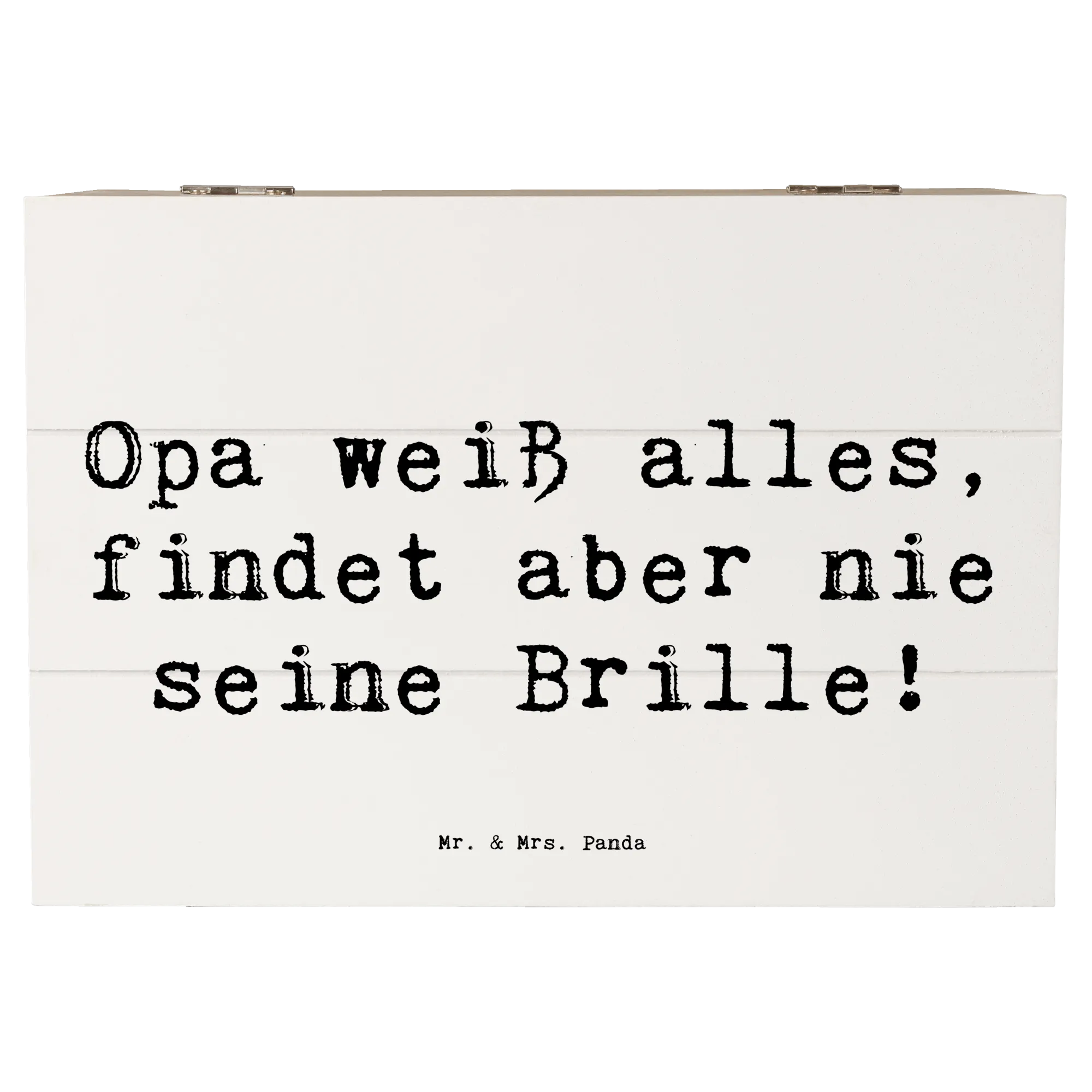 Suchst Du das perfekte Geschenk für Deinen Opa? Dann ist die wunderschöne Holzkiste von Mr. & Mrs. Panda genau das Richtige! Mit dem süßen Spruch "Opa weiß alles, findet aber nie seine Brille!" wird diese Kiste nicht nur zum Aufbewahrungsort für die kostbarsten Erinnerungen, sondern auch zum echten Hingucker, der ein Lächeln auf die Lippen zaubert.