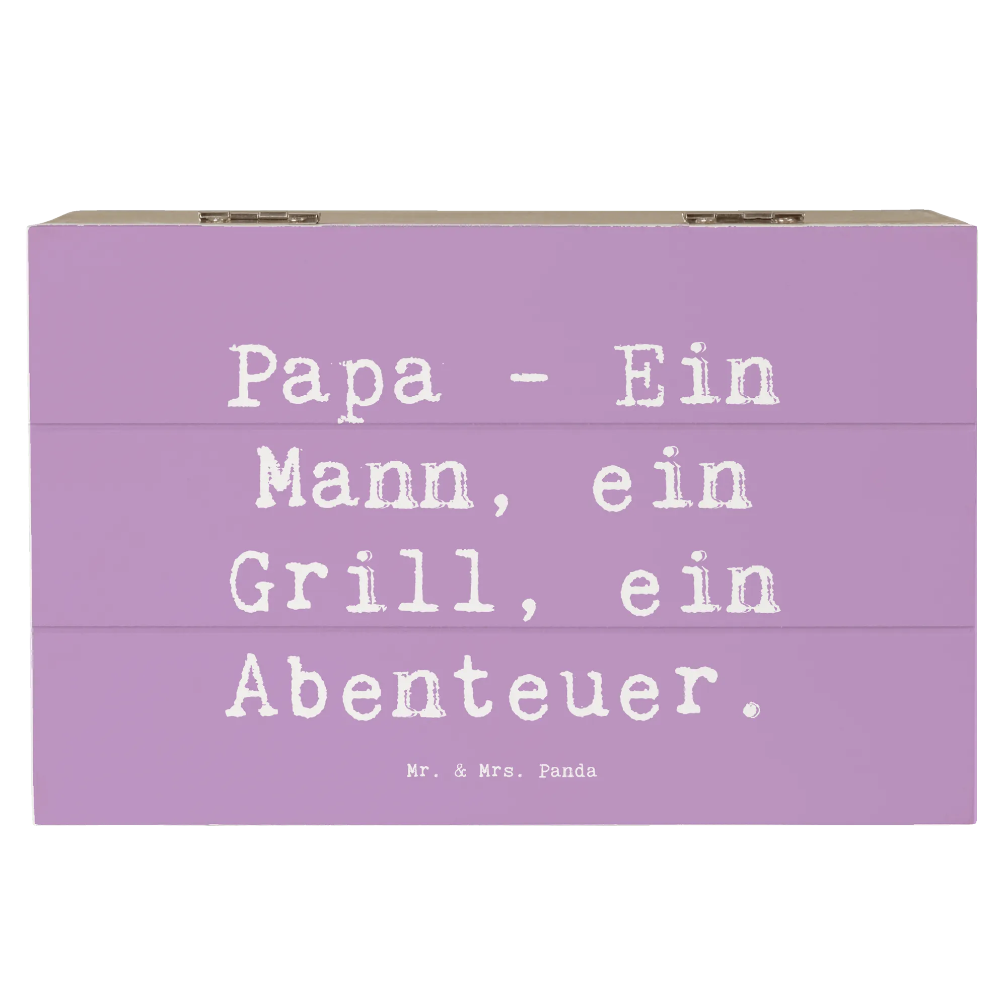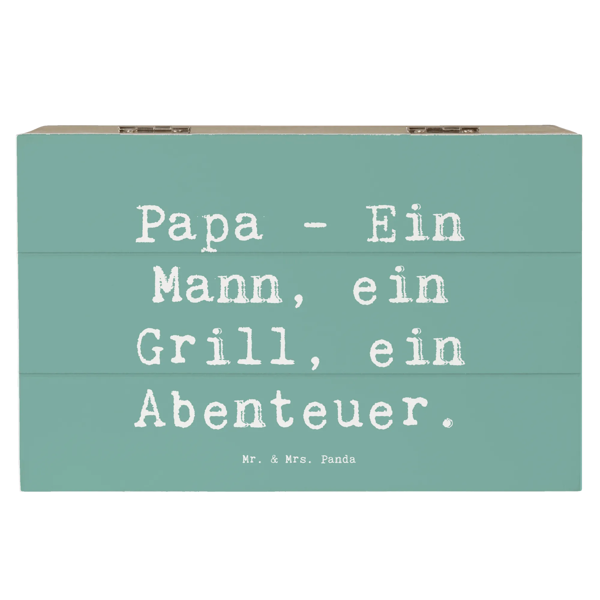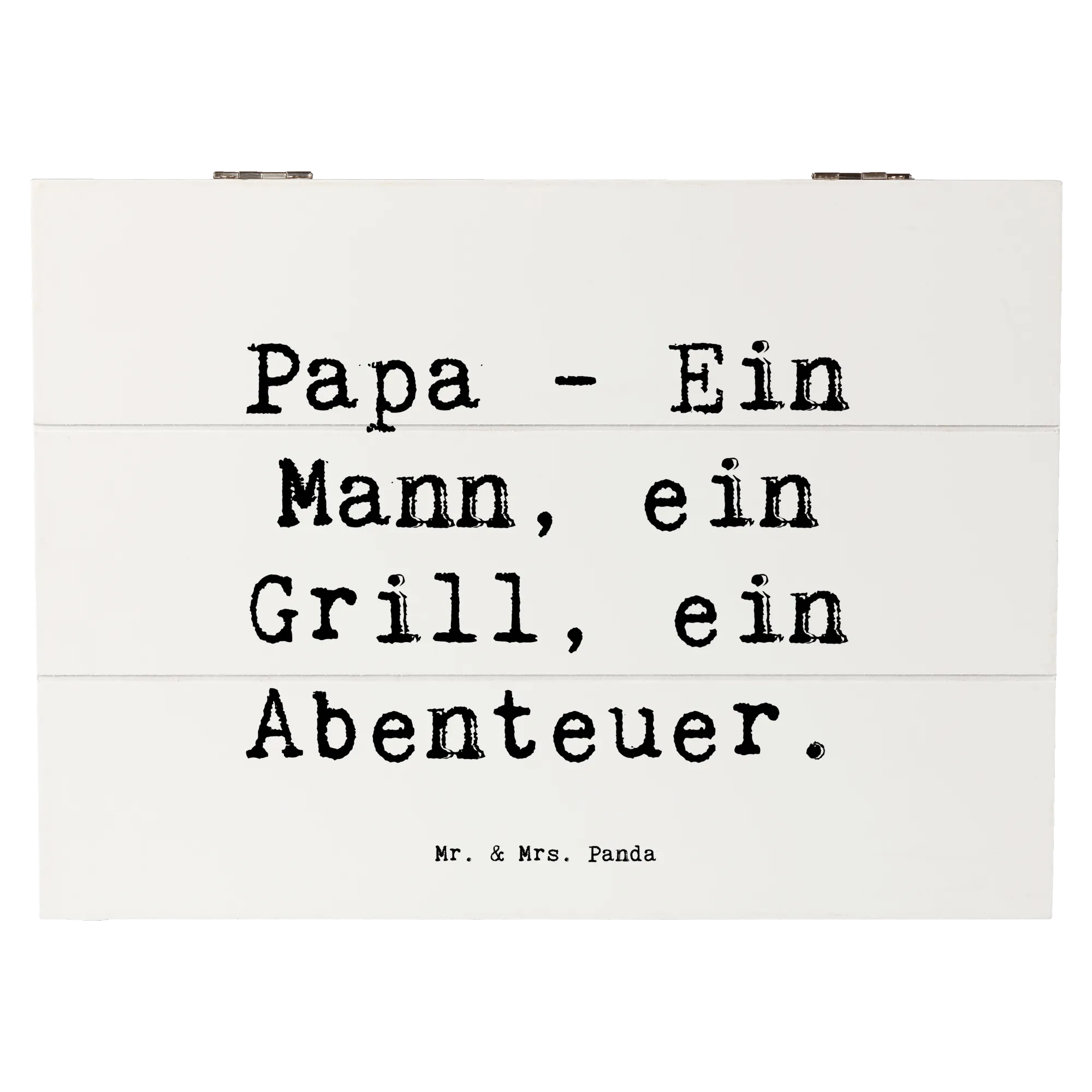 Eine wunderschöne Holzkiste von Mr. & Mrs. Panda mit dem liebevollen Motiv 'Papa - Ein Mann, ein Grill, ein Abenteuer' ist das perfekte Geschenk für jeden Vater. Diese schlichte, aber stilvolle Kiste ist nicht nur ein idealer Aufbewahrungsort für alle kostbaren Erinnerungen, sondern auch ein wunderbares Dekorationsstück, das das Herz eines jeden Papas höher schlagen lässt.