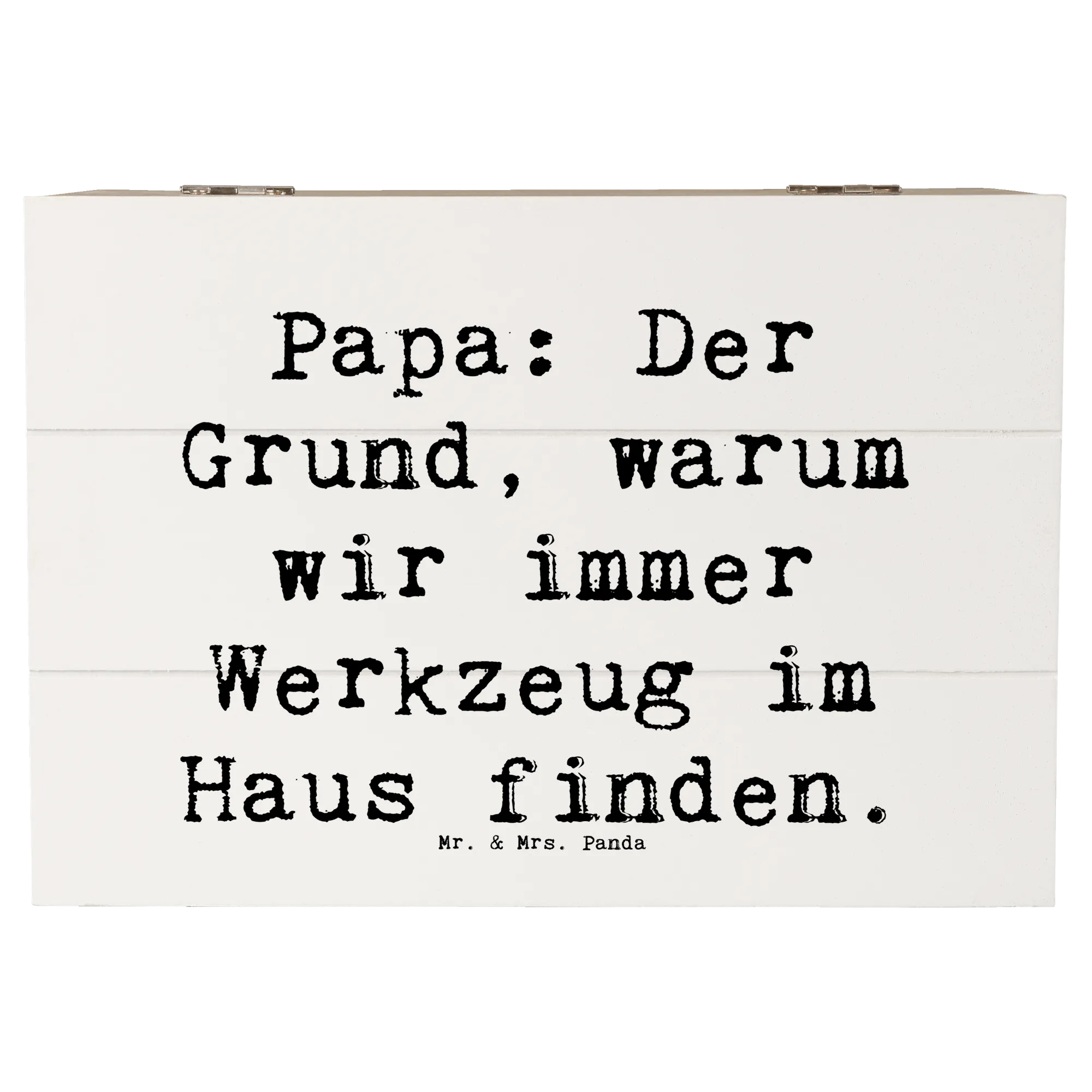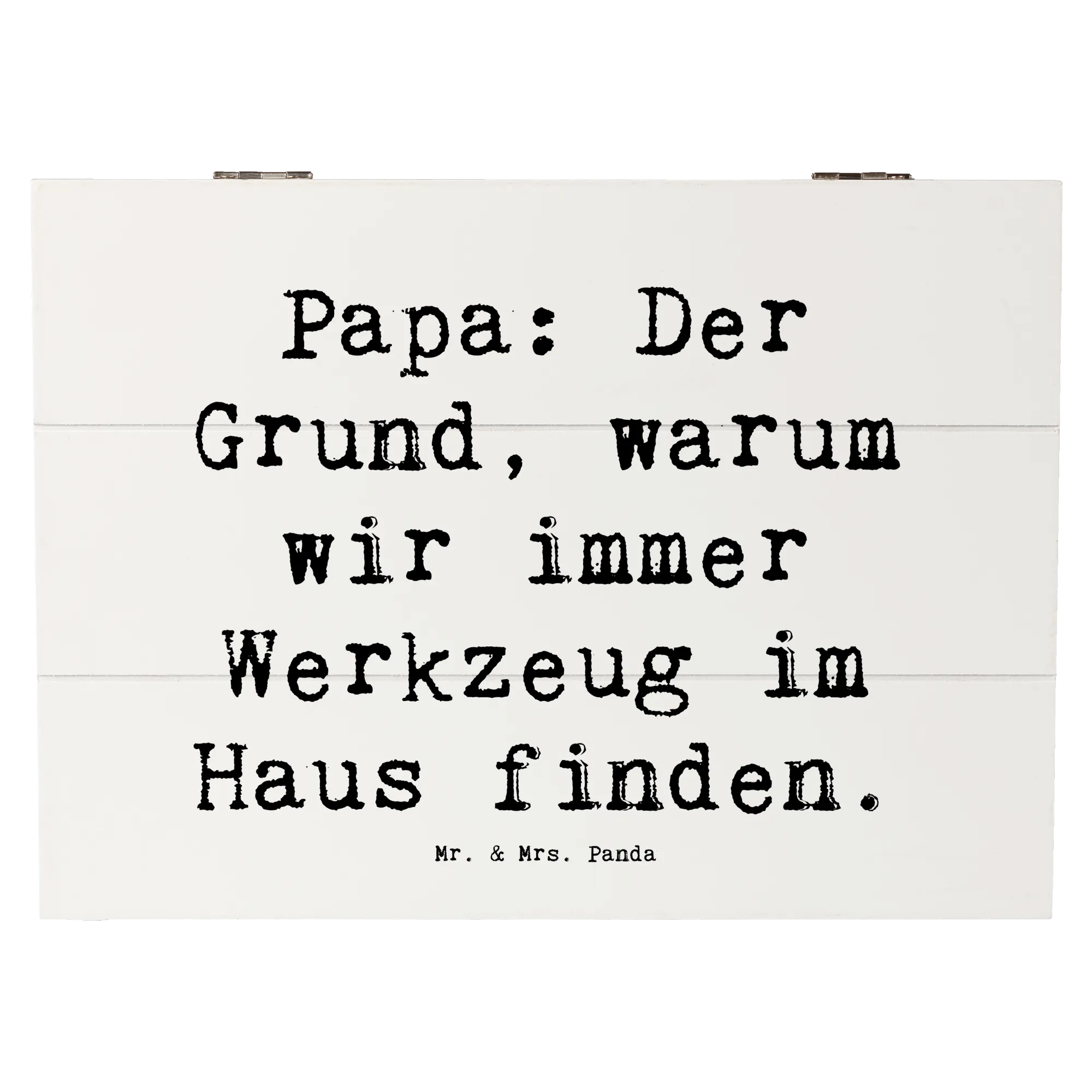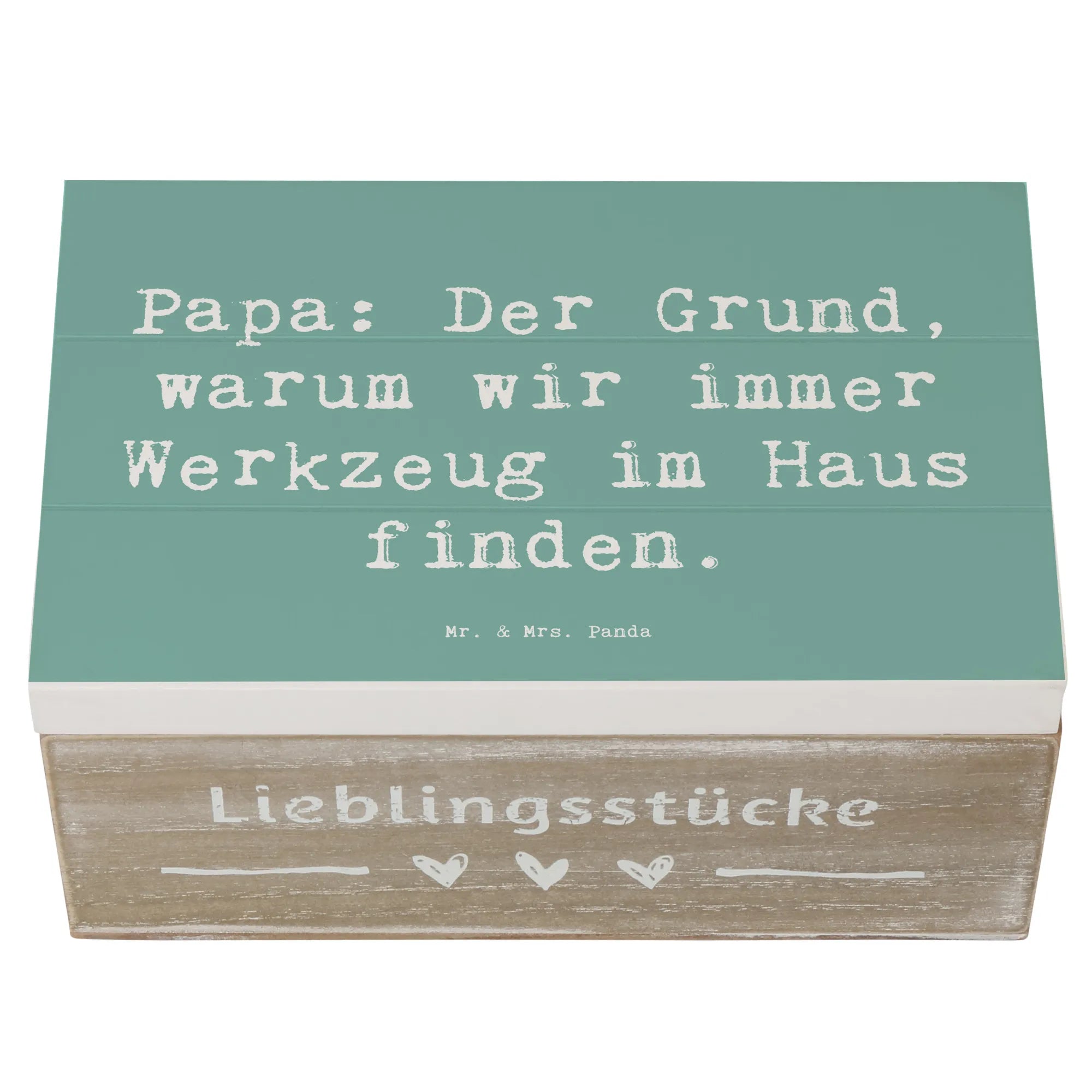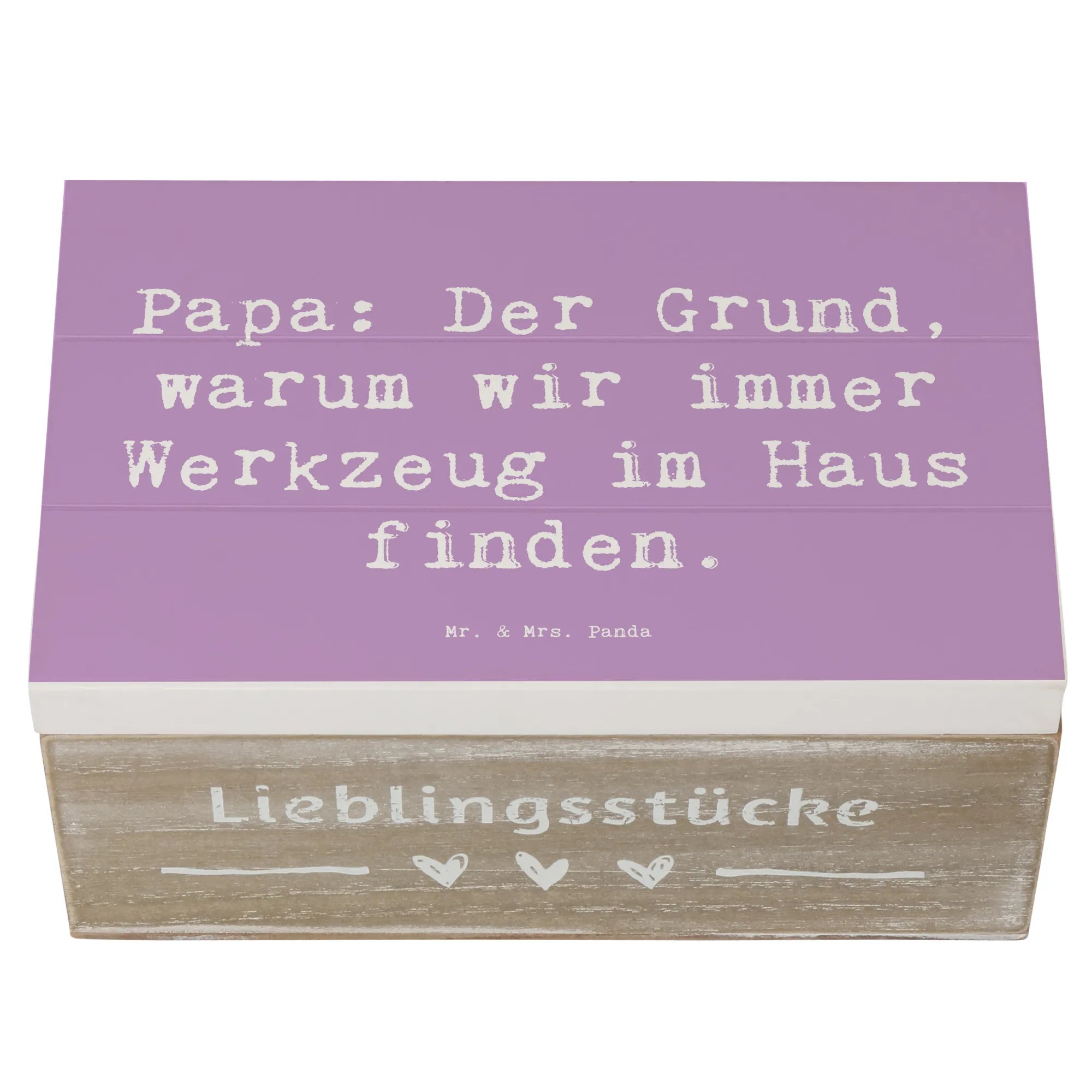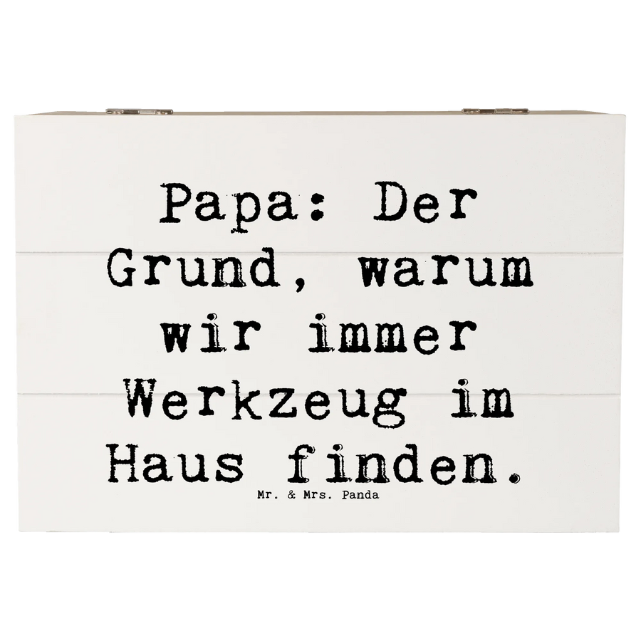 Die wunderschöne Holzkiste von Mr. & Mrs. Panda ist das perfekte Geschenk für jeden Papa! Mit dem charmanten Spruch „Papa: Der Grund, warum wir immer Werkzeug im Haus finden.“ ist diese Kiste nicht nur ein praktischer Aufbewahrungsort, sondern auch ein liebevolles Andenken. Ob zu Anlässen wie dem Vatertag, einem Geburtstag oder einfach als Zeichen der Wertschätzung – diese Holzkiste ist die ideale Wahl für jeden Familienmenschen.