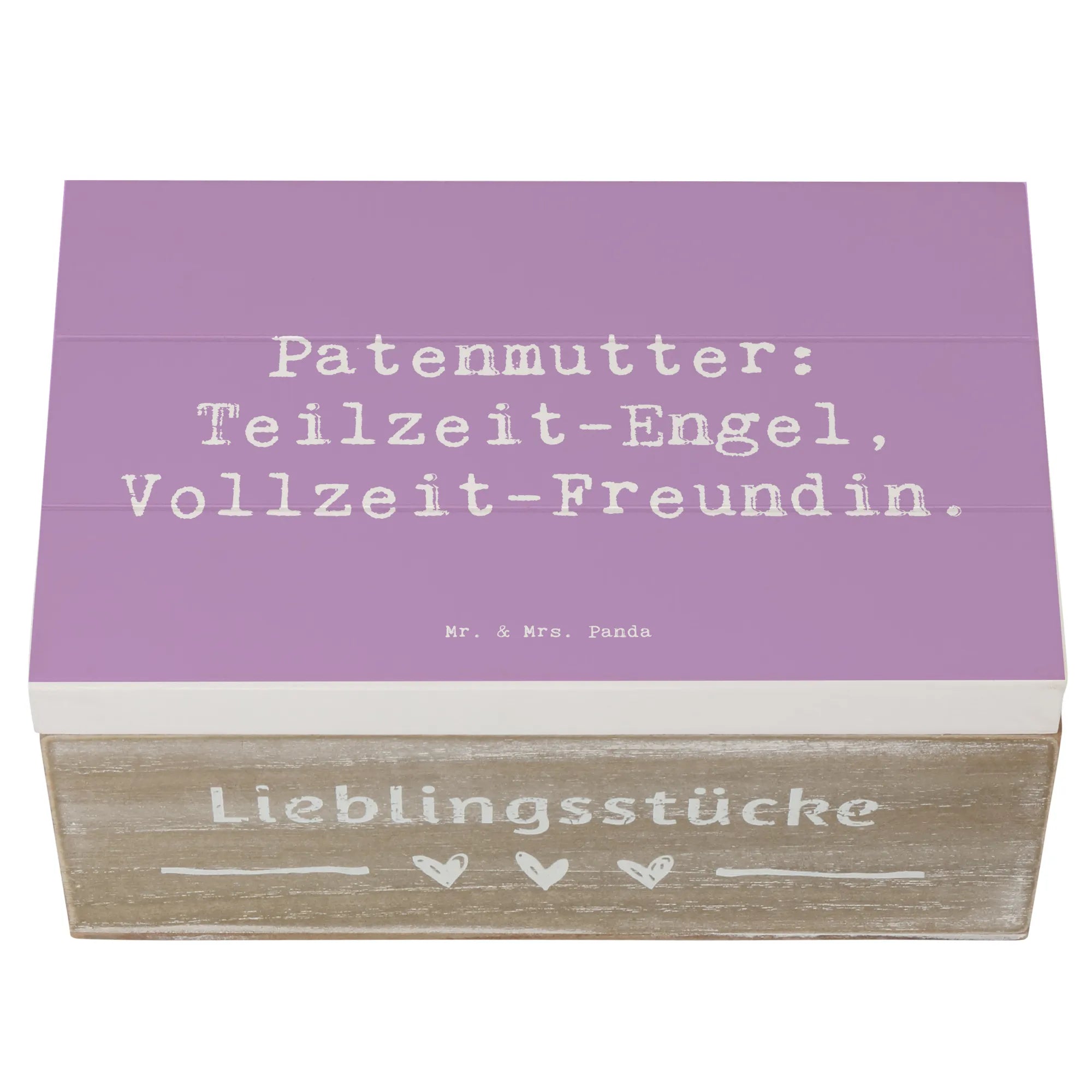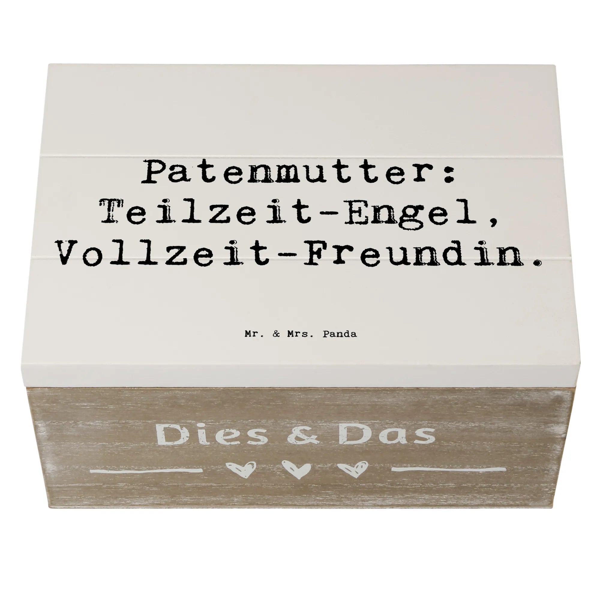 Die wunderschöne Holzkiste mit dem liebevollen Motiv "Patenmutter: Teilzeit-Engel, Vollzeit-Freundin" von Mr. & Mrs. Panda ist ein ganz besonderes Geschenk für jede Patenmutter. Diese einzigartige Kiste ist nicht nur ein praktischer Aufbewahrungsort für Schätze aus der Kindheit oder bedeutende Erinnerungen, sondern auch ein echter Blickfang in jedem Zuhause.