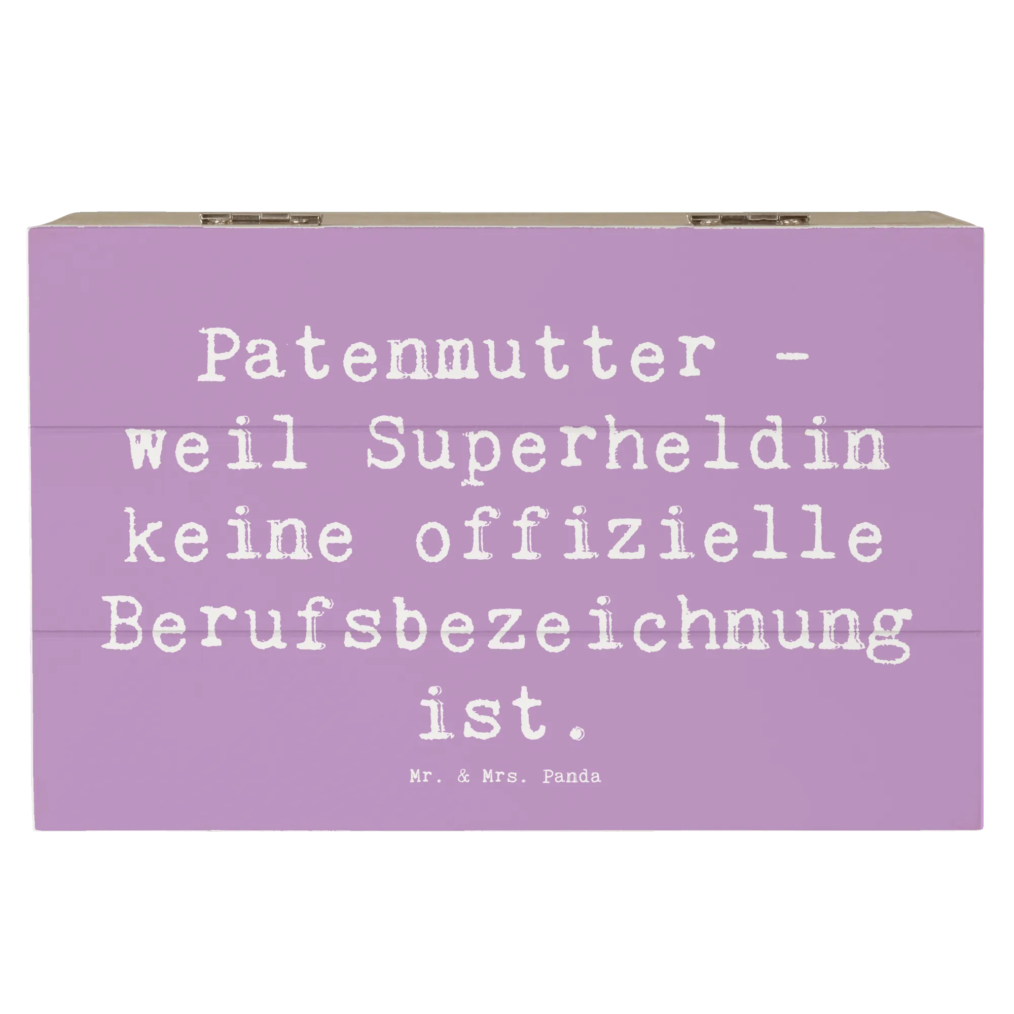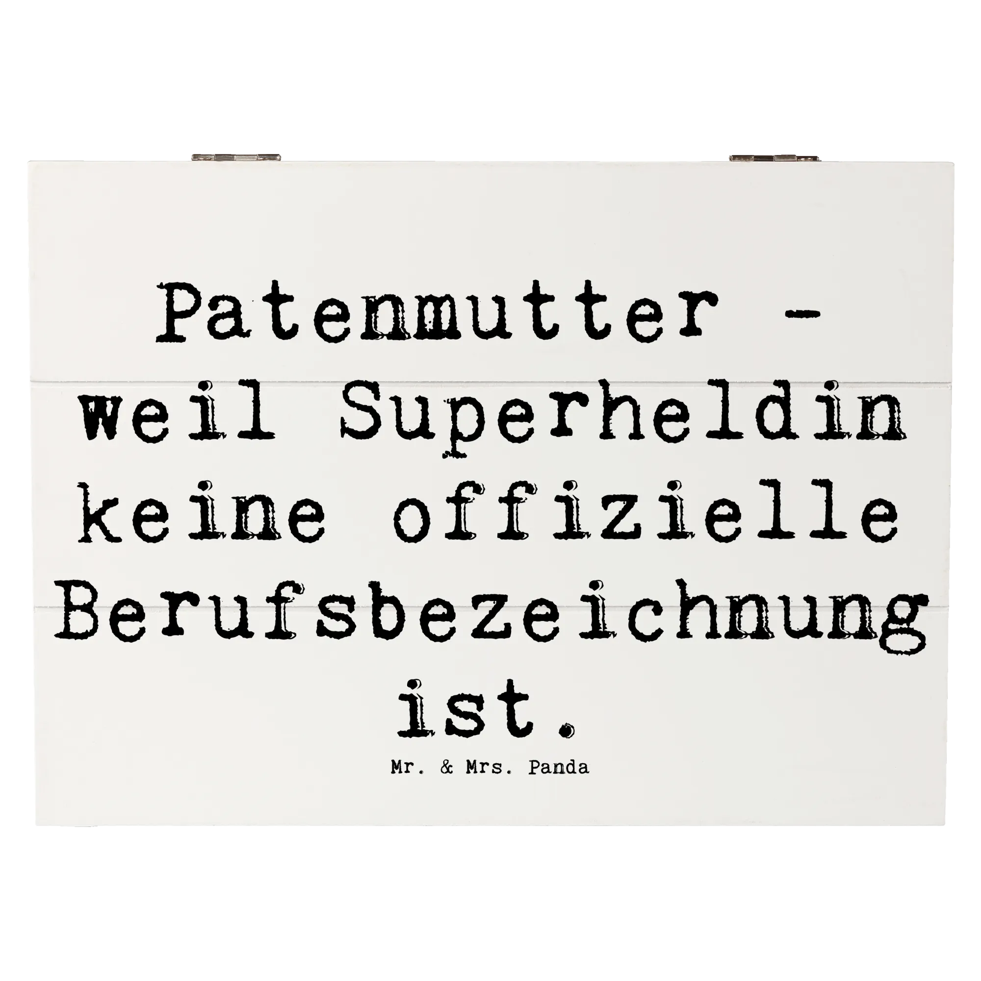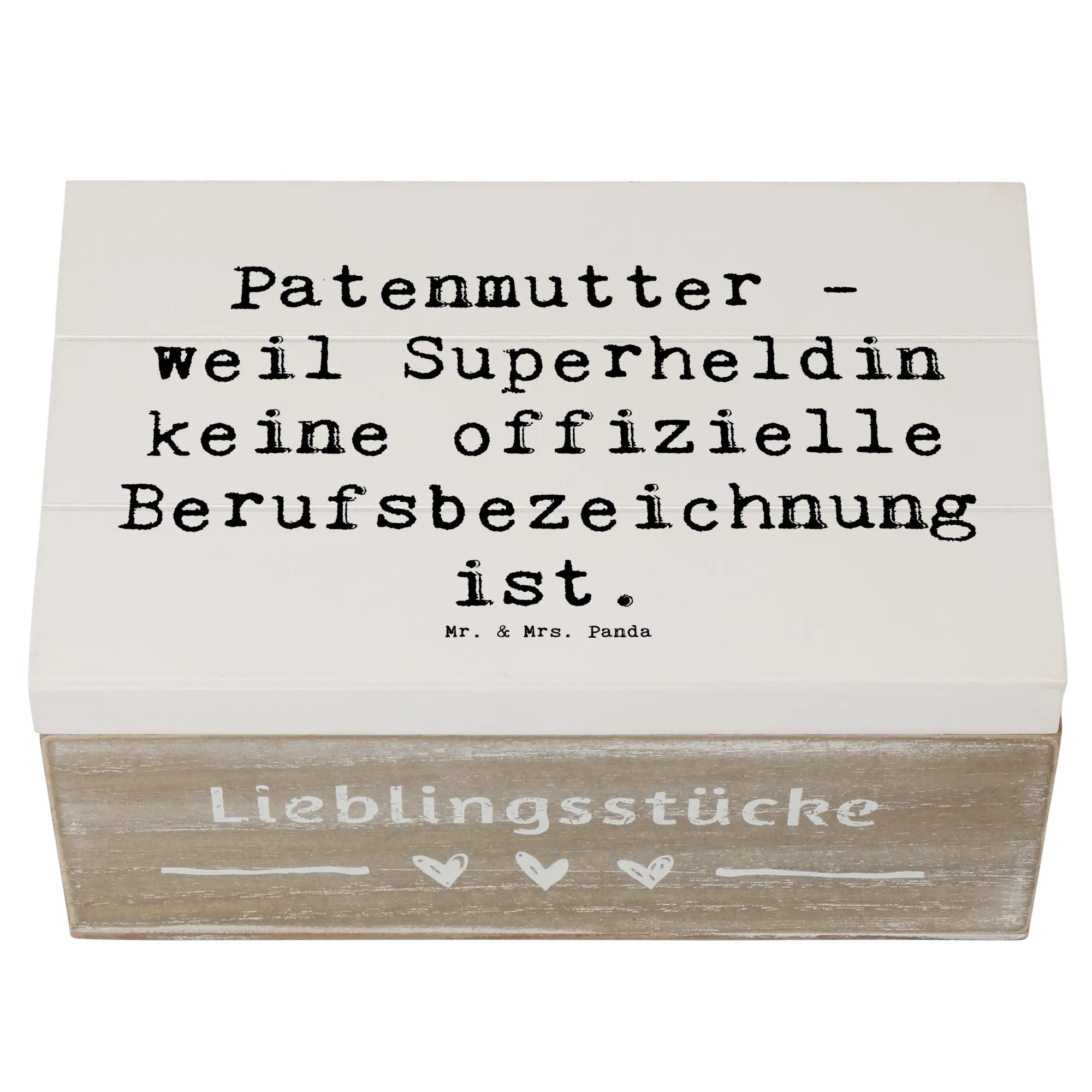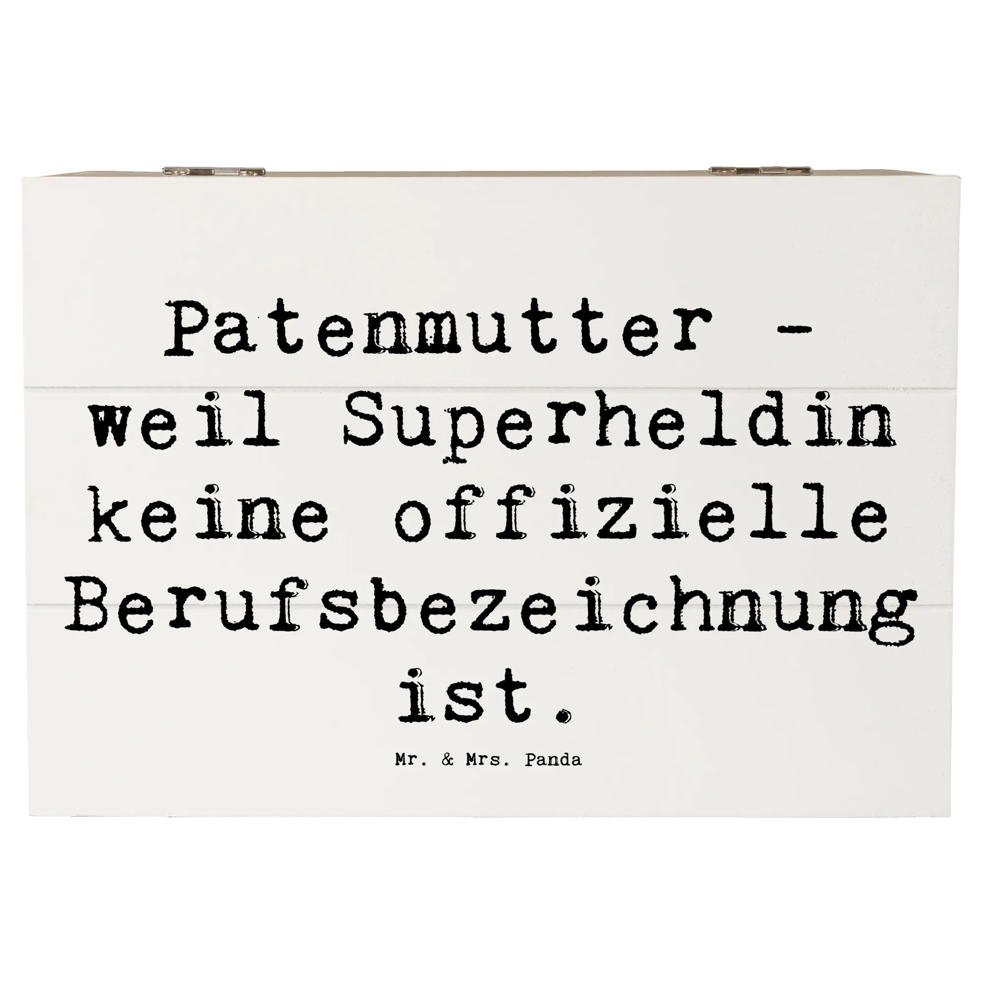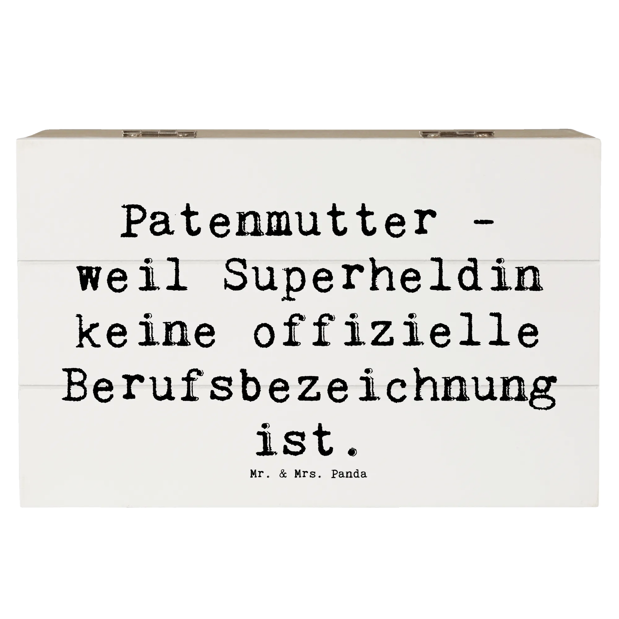 Die wunderschöne Holzkiste Patenmutter von Mr. & Mrs. Panda ist nicht nur ein praktisches Wohnaccessoire, sondern auch ein ganz besonderes Geschenk für jede Patenmutter. Mit dem liebevollen Spruch 'Patenmutter - weil Superheldin keine offizielle Berufsbezeichnung ist.' wird die bedeutende Rolle der Patenmutter gewürdigt.