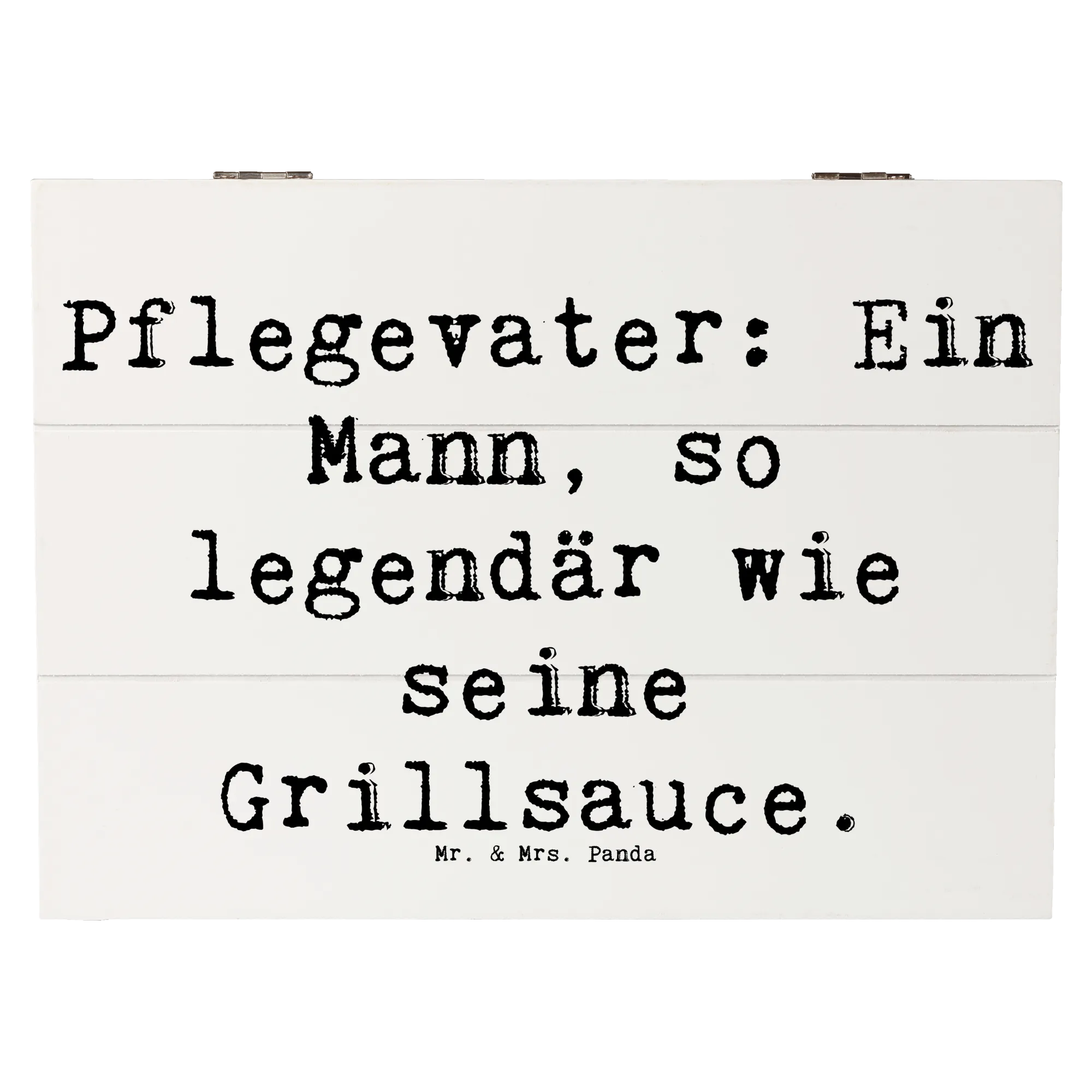 Die wunderschöne Holzkiste von Mr. & Mrs. Panda, bedruckt mit dem charmanten Motive "Pflegevater: Ein Mann, so legendär wie seine Grillsauce", ist das perfekte Geschenk für jeden Pflegevater.