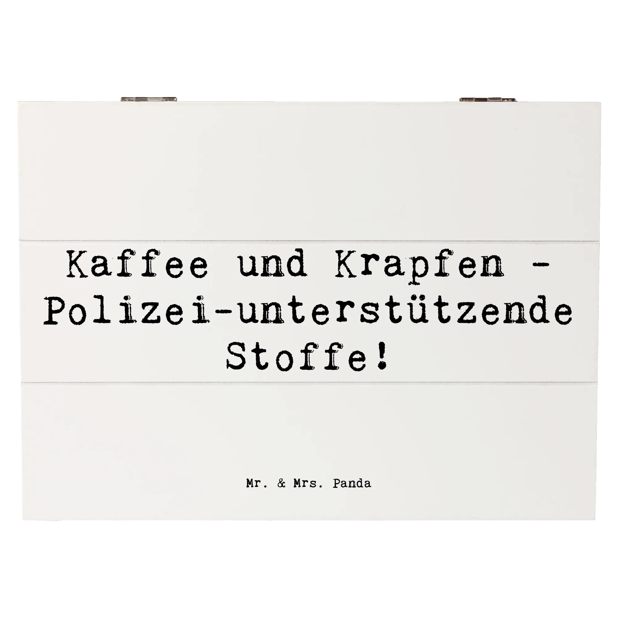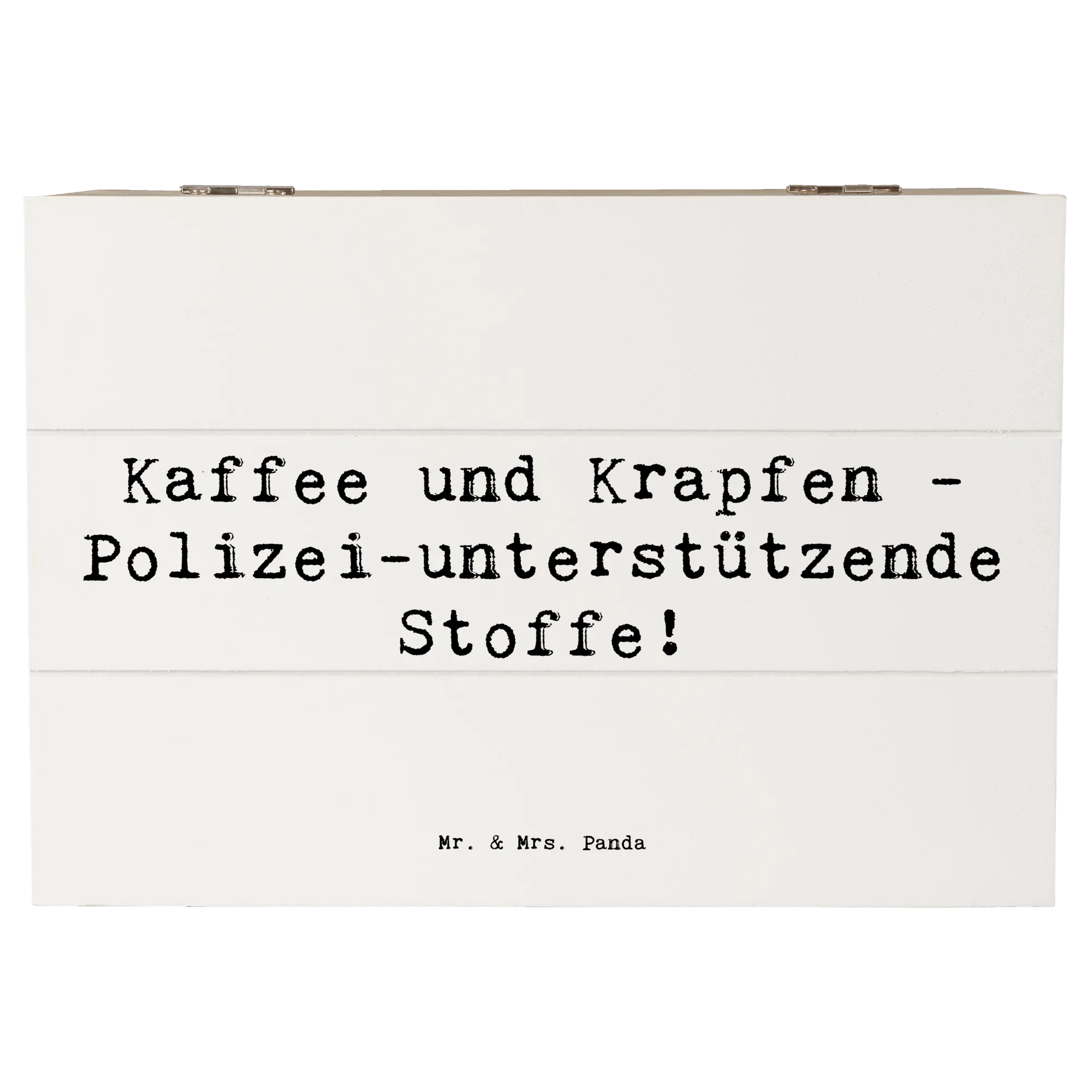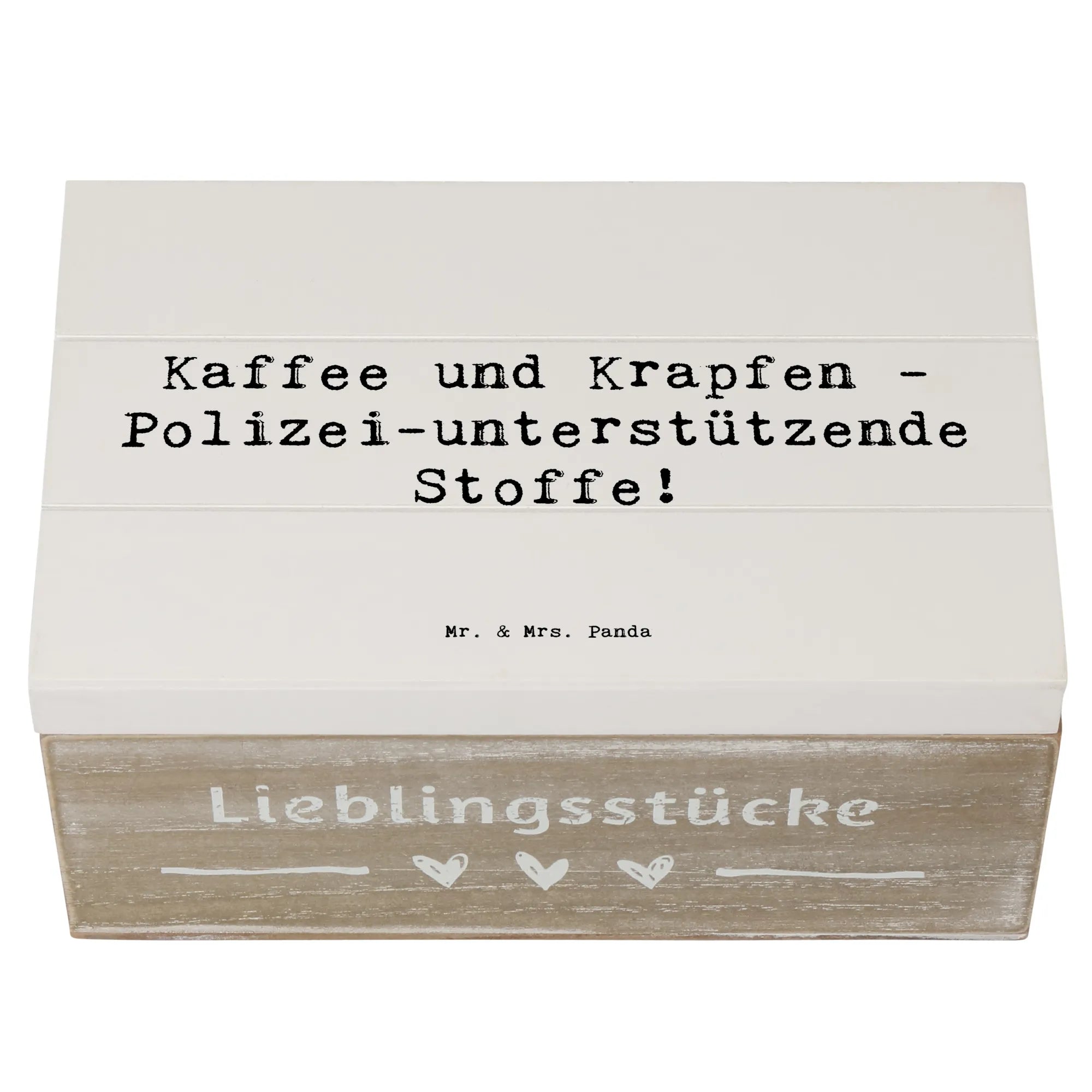 Die wunderschöne Holzkiste mit dem Polizisten-Motiv von Mr. & Mrs. Panda ist das perfekte Geschenk für alle, die den Beruf des Polizisten würdigen oder lieben. Mit einem charmanten Spruch "Kaffee und Krapfen - Polizei-unterstützende Stoffe!" bringt diese Kiste Freude in jedes Zuhause.