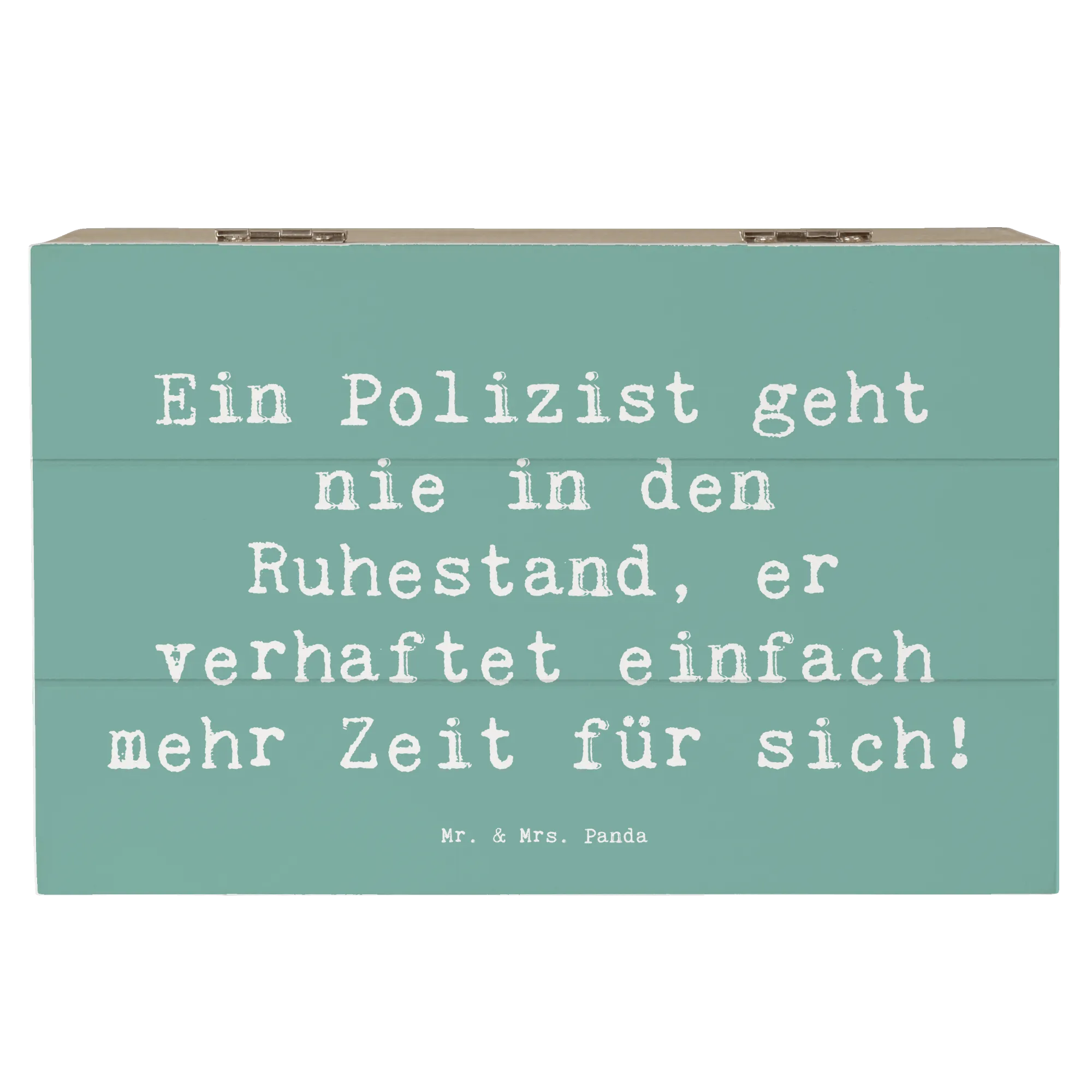 Entdecke die zauberhafte Holzkiste von Mr. & Mrs. Panda, die speziell für alle Polizisten entworfen wurde! Diese wunderschöne Holzkiste ist nicht nur ein Blickfang, sondern auch unglaublich praktisch. Mit dem liebevollen Spruch "Ein Polizist geht nie in den Ruhestand, er verhaftet einfach mehr Zeit für sich!" wird die Kiste zum perfekten Aufbewahrungsort für all deine wertvollen Schätze.