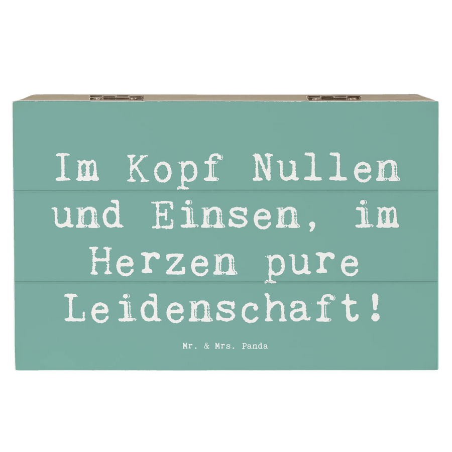 Die Holzkiste mit dem Motive 'Programmierer' von Mr. & Mrs. Panda ist der perfekte Ort, um all deine wertvollen Erinnerungen zu bewahren. Ob Fotos, kleine Andenken oder die ersten Zeichnungen deiner Kinder – diese hochwertige Kiste ist ideal für alles, was dir am Herzen liegt.