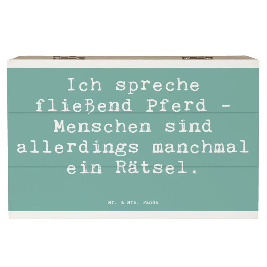 Die wunderschöne Holzkiste von Mr. & Mrs. Panda ist nicht nur ein einfaches Aufbewahrungsobjekt, sondern ein echtes Liebhaberstück für alle Pferdefans! Mit dem liebevollen Spruch "Ich spreche fließend Pferd - Menschen sind allerdings manchmal ein Rätsel." wird diese Kiste schnell zum besonderen Highlight in deinem Zuhause.