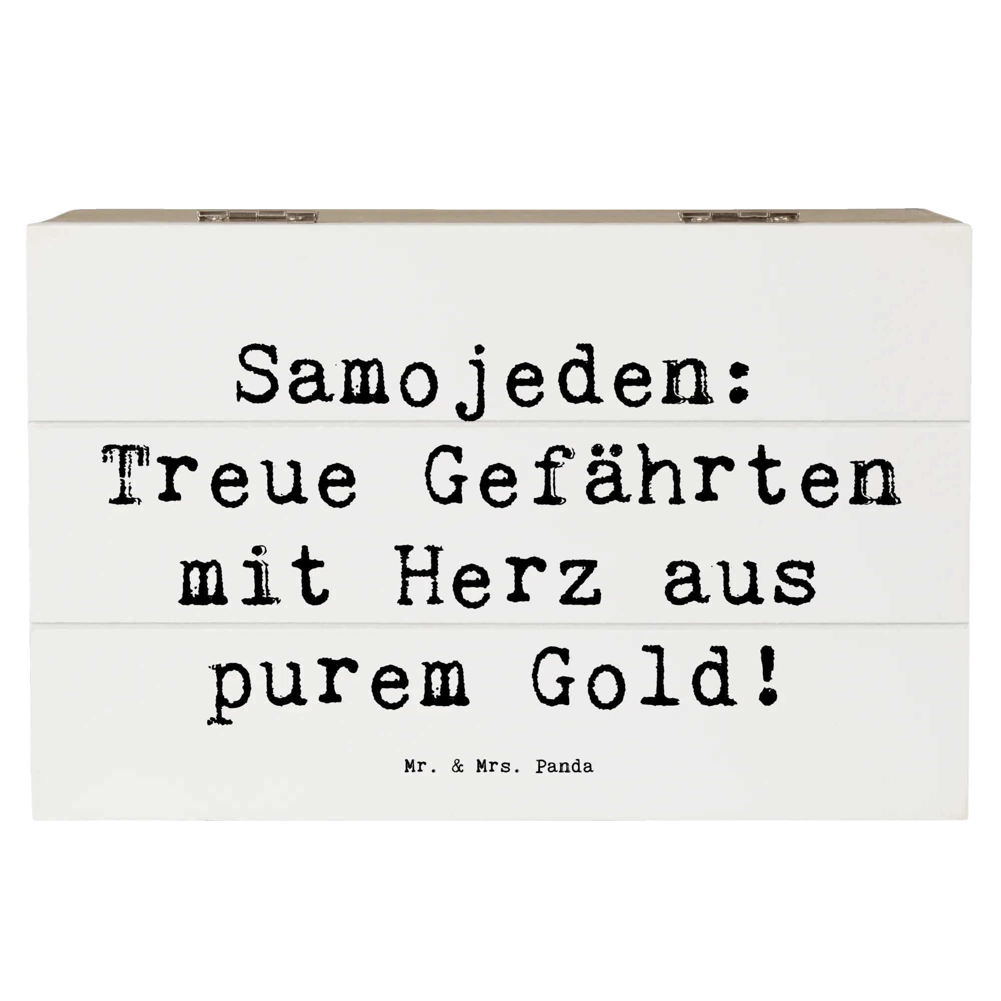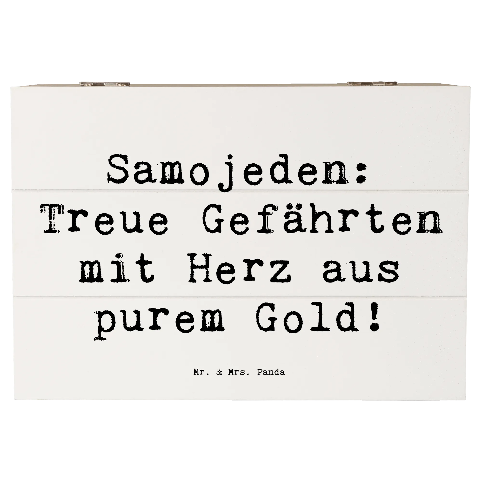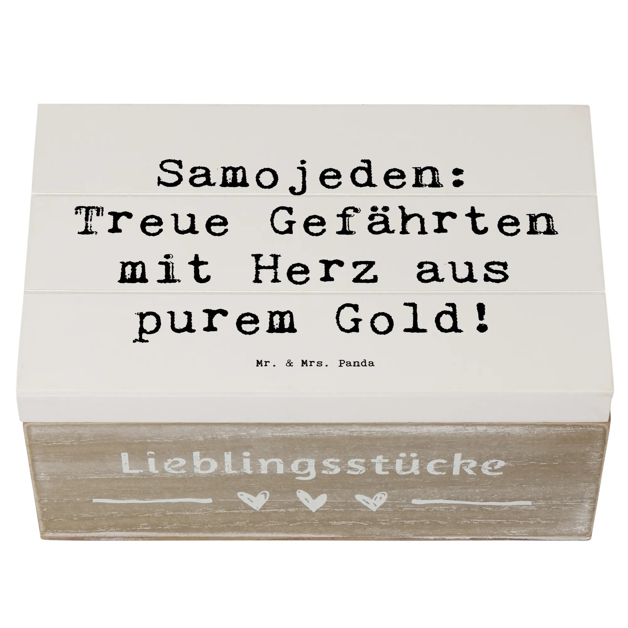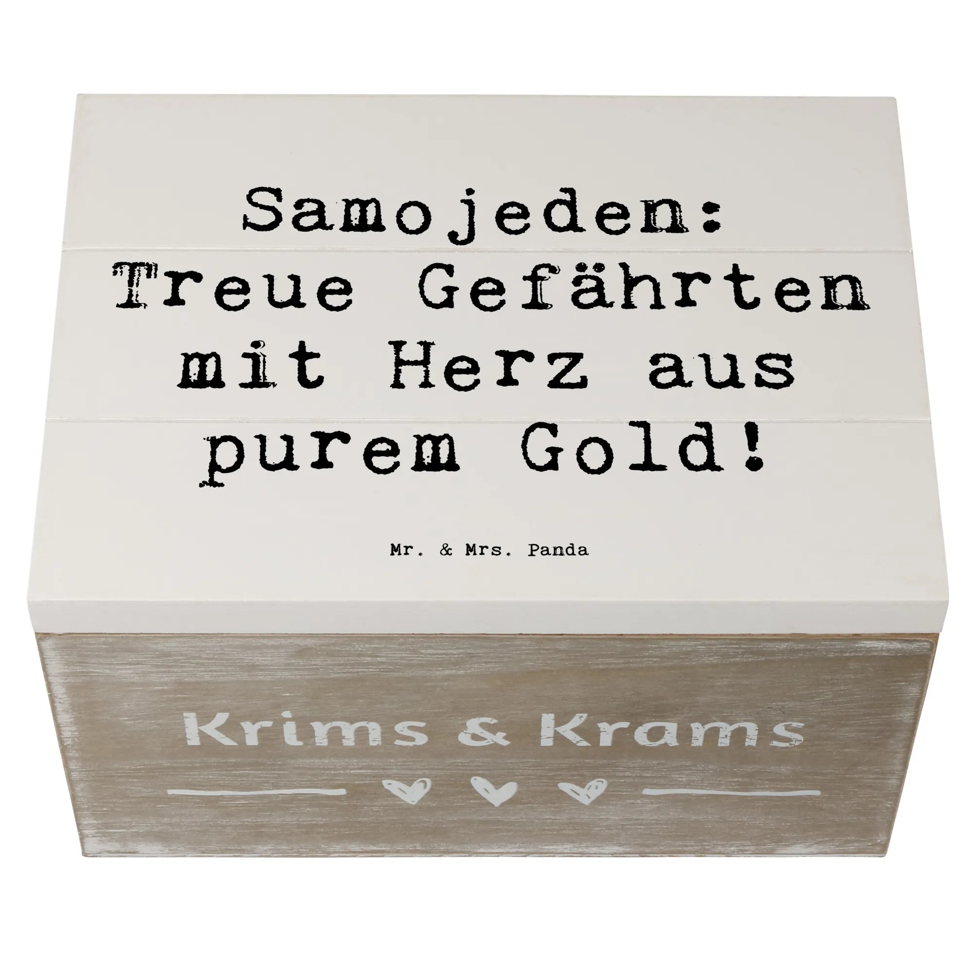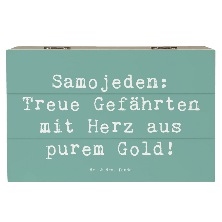 Entdecke die zauberhafte Holzkiste von Mr. & Mrs. Panda, die ideal ist für die Aufbewahrung Deiner liebsten Erinnerungen! Diese wunderschöne Holzkiste ist mit dem süßen Motiv des Samojeden geschmückt und trägt den liebevollen Spruch: 'Samojeden: Treue Gefährten mit Herz aus purem Gold!' Ob für Deinen eigenen Schmuck, Fotos aus der Kindheit oder als Erinnerungsbox für besondere Anlässe wie Kommunion oder Konfirmation – die Kiste ist der perfekte Ort, um all diese Schätze sicher und stilvoll aufzubewahren.