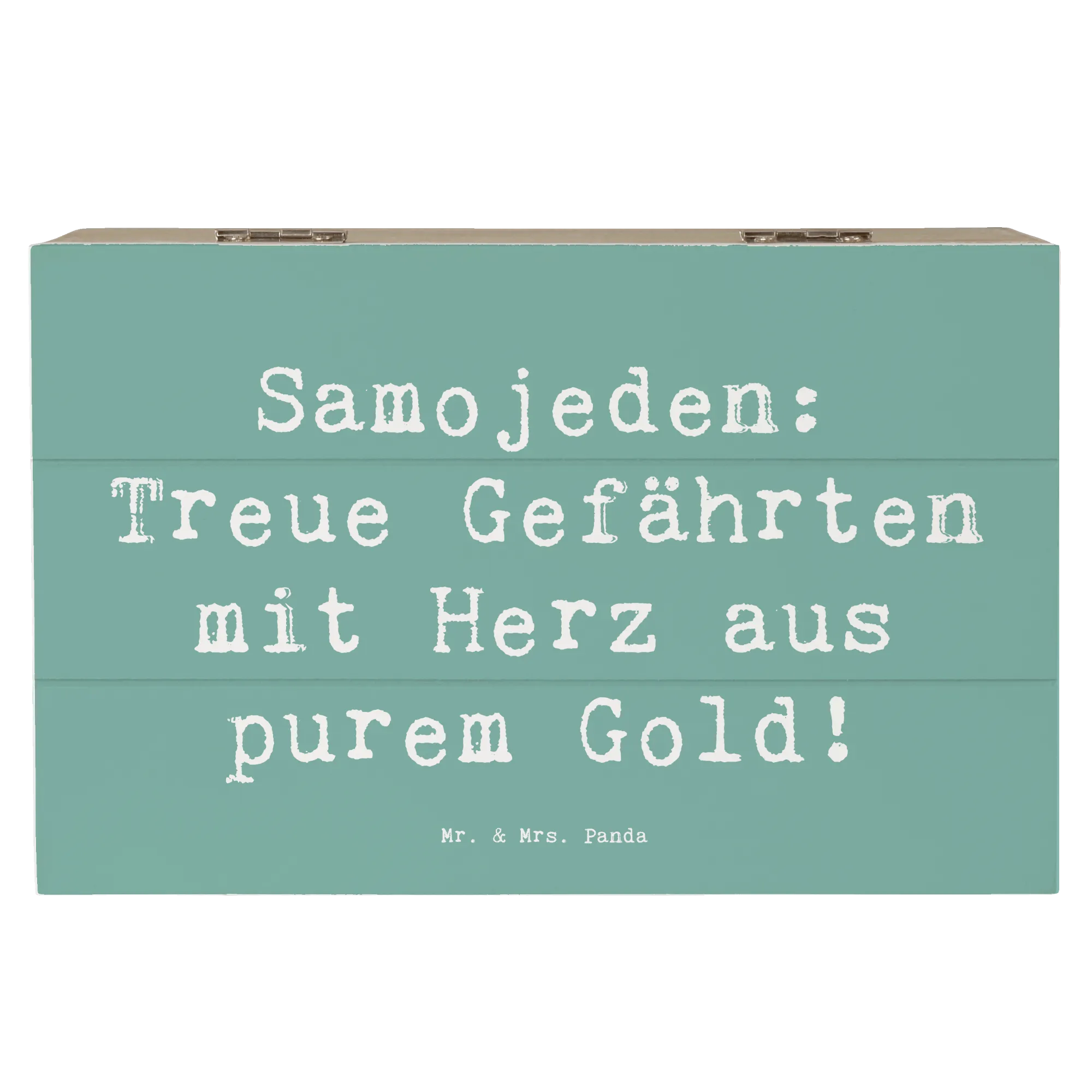 Das Motiv des Samojeden, verziert mit dem liebevollen Spruch "Samojeden: Treue Gefährten mit Herz aus purem Gold!", bringt nicht nur Freude ins Zuhause, sondern auch eine persönliche Note in jedes Geschenk. Die Kiste ist perfekt als nachhaltige und wiederverwendbare Geschenkbox und kann auch als Dekokiste genutzt werden, um das Wohnambiente aufzupeppen. Die hervorragenden Einschlagscharniere ermöglichen ein einfaches Öffnen und Schließen der Kiste, sodass du deine Schätze jederzeit griffbereit hast.