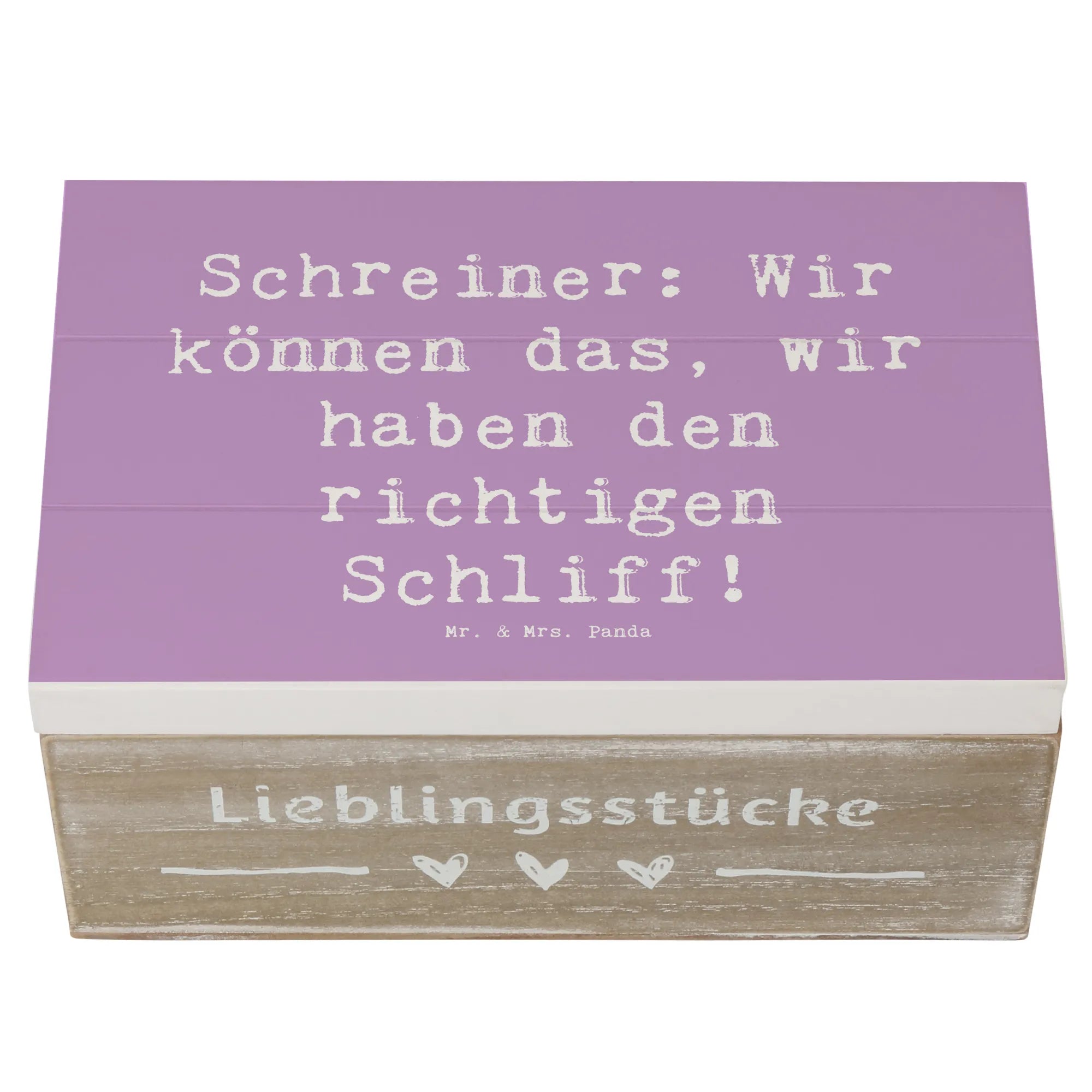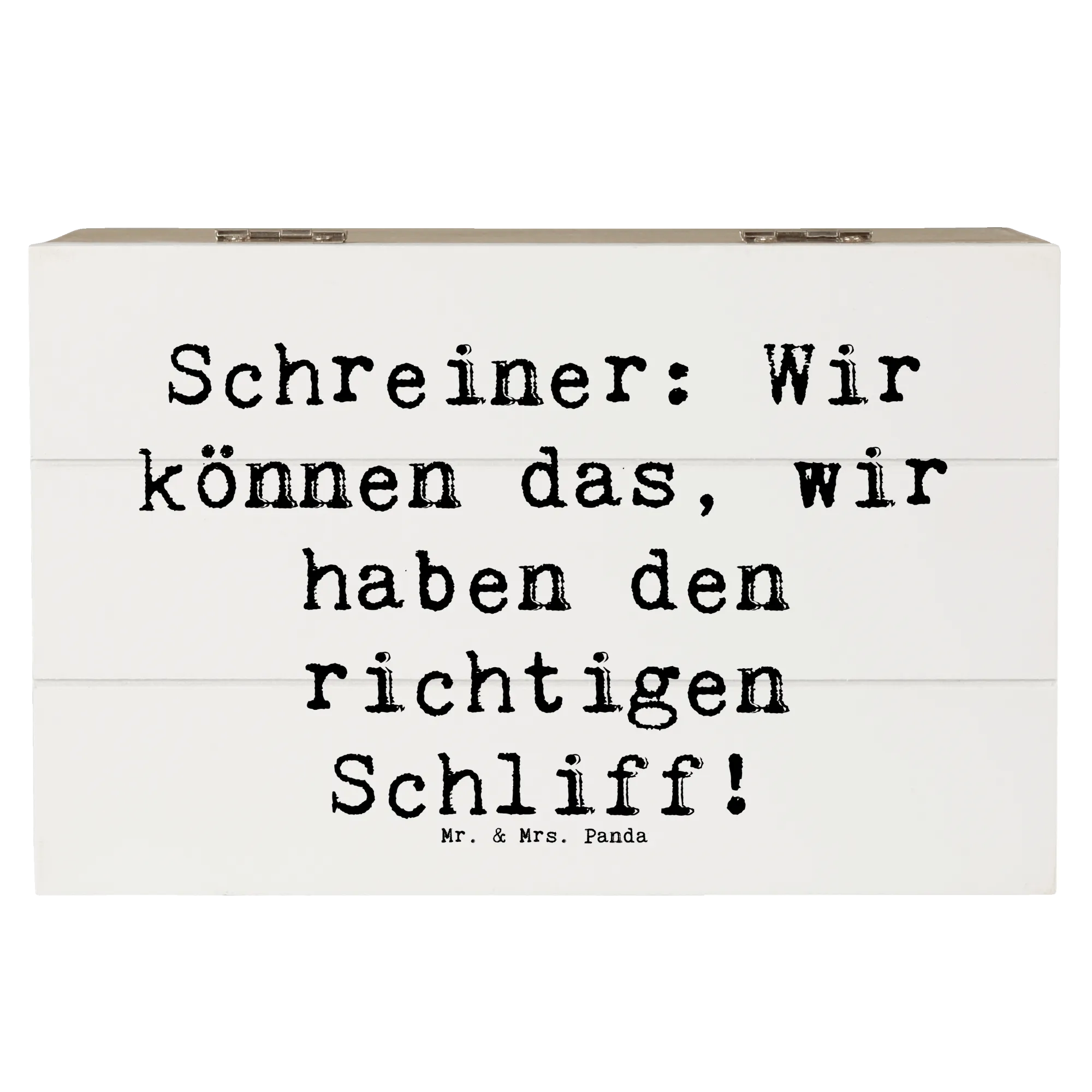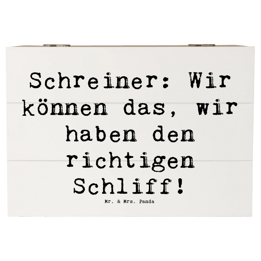Eine wunderschöne Holzkiste von Mr. & Mrs. Panda, die nicht nur funktional, sondern auch ein echter Blickfang ist. Sie ist ideal als Aufbewahrungsort für Deine wertvollsten Erinnerungen, Schätze oder auch als Dekokiste für besondere Anlässe. Mit dem liebevollen Motiv "Schreiner: Wir können das, wir haben den richtigen Schliff!" aus der Berufe-Kollektion von Mr. & Mrs. Panda ist diese Kiste ein perfektes Geschenk für jeden Schreiner, Holzarbeiter oder einfach für jeden, der den Beruf des Schreiners wertschätzt.