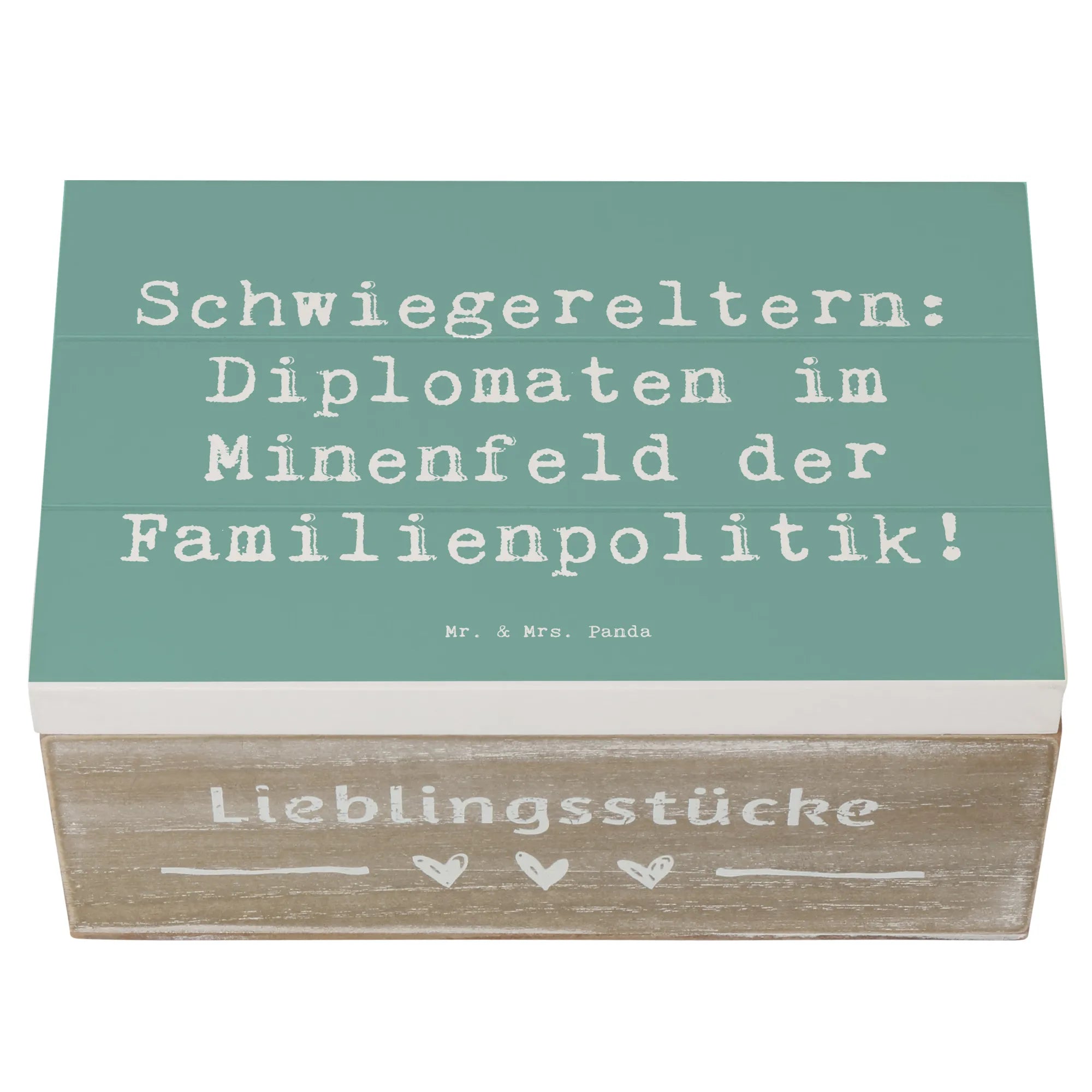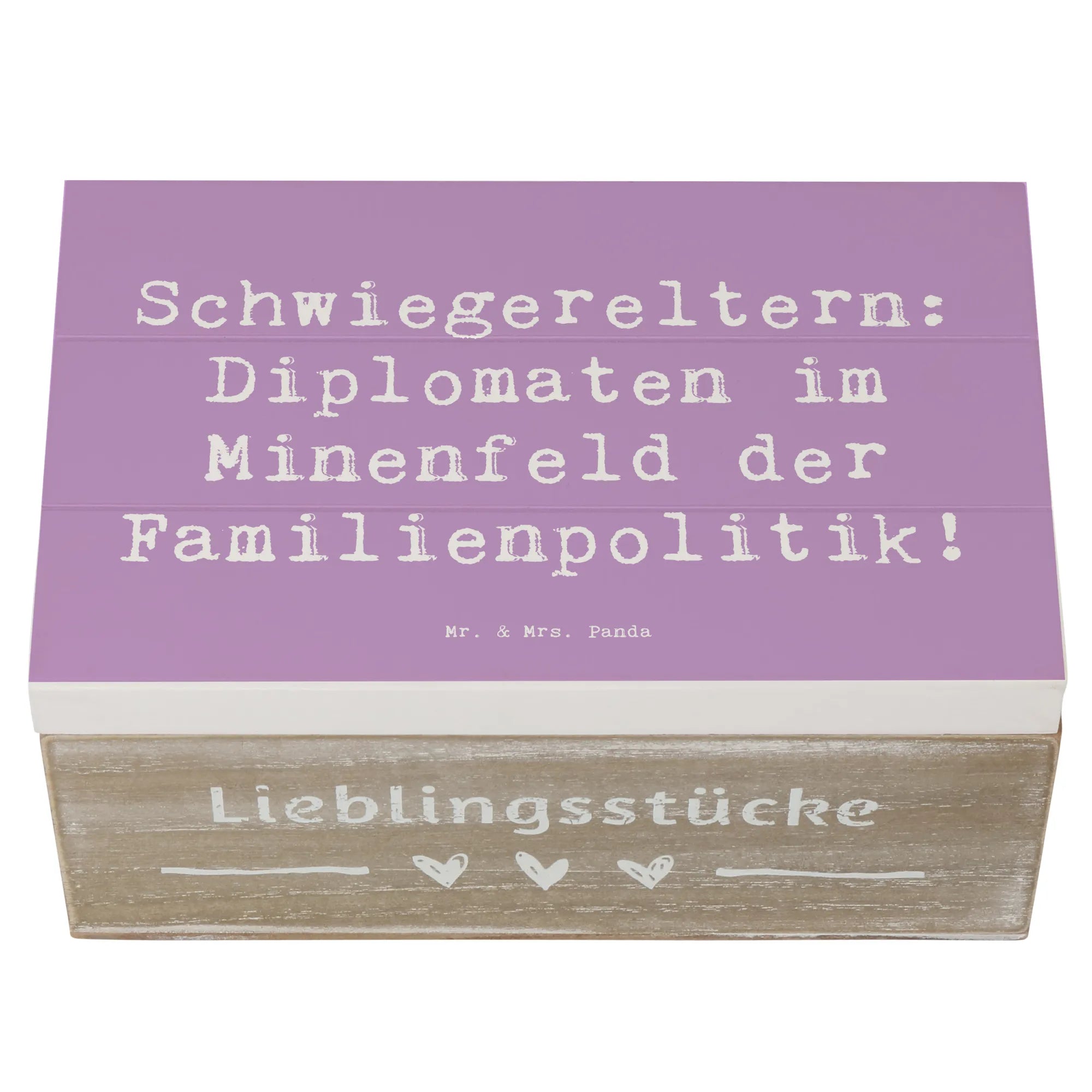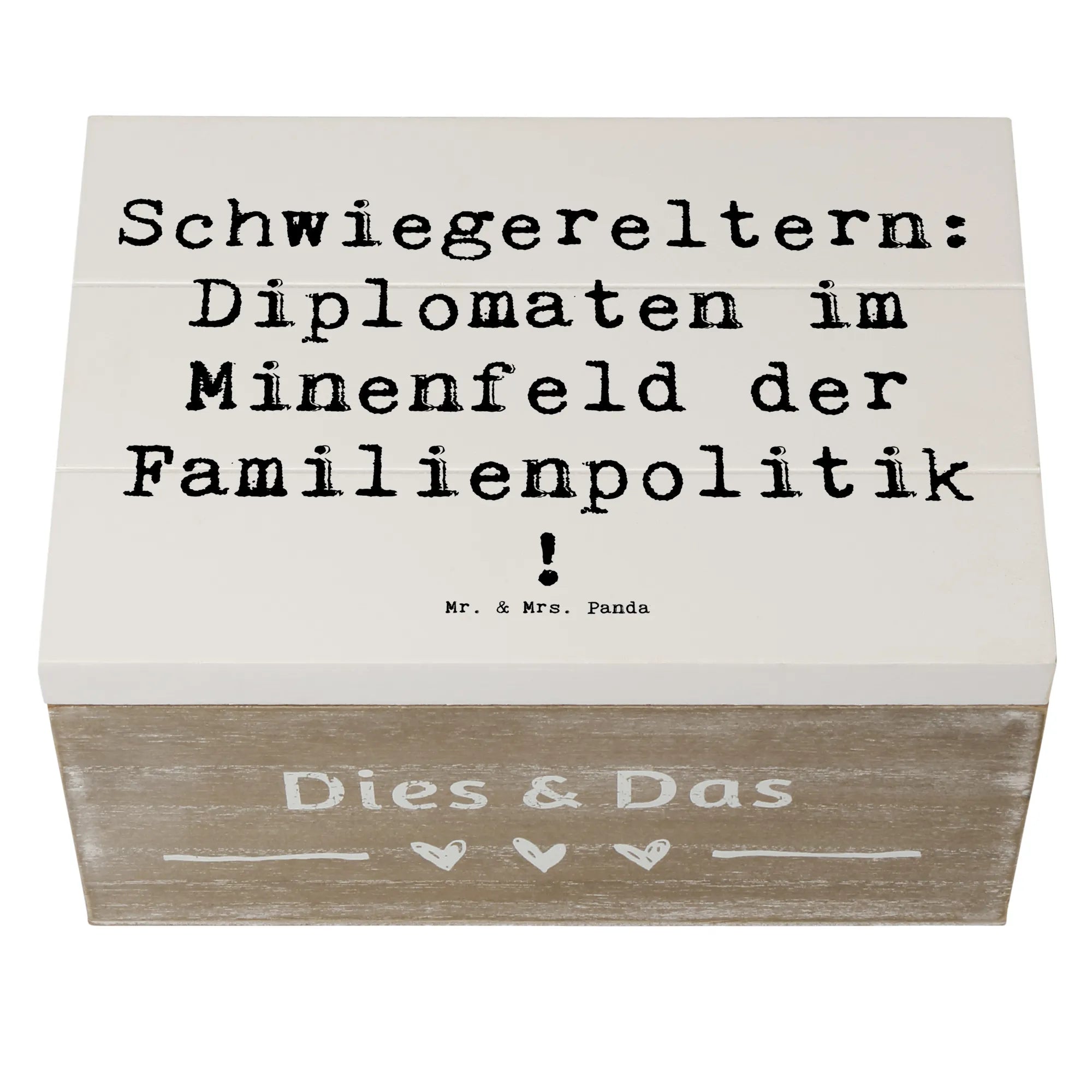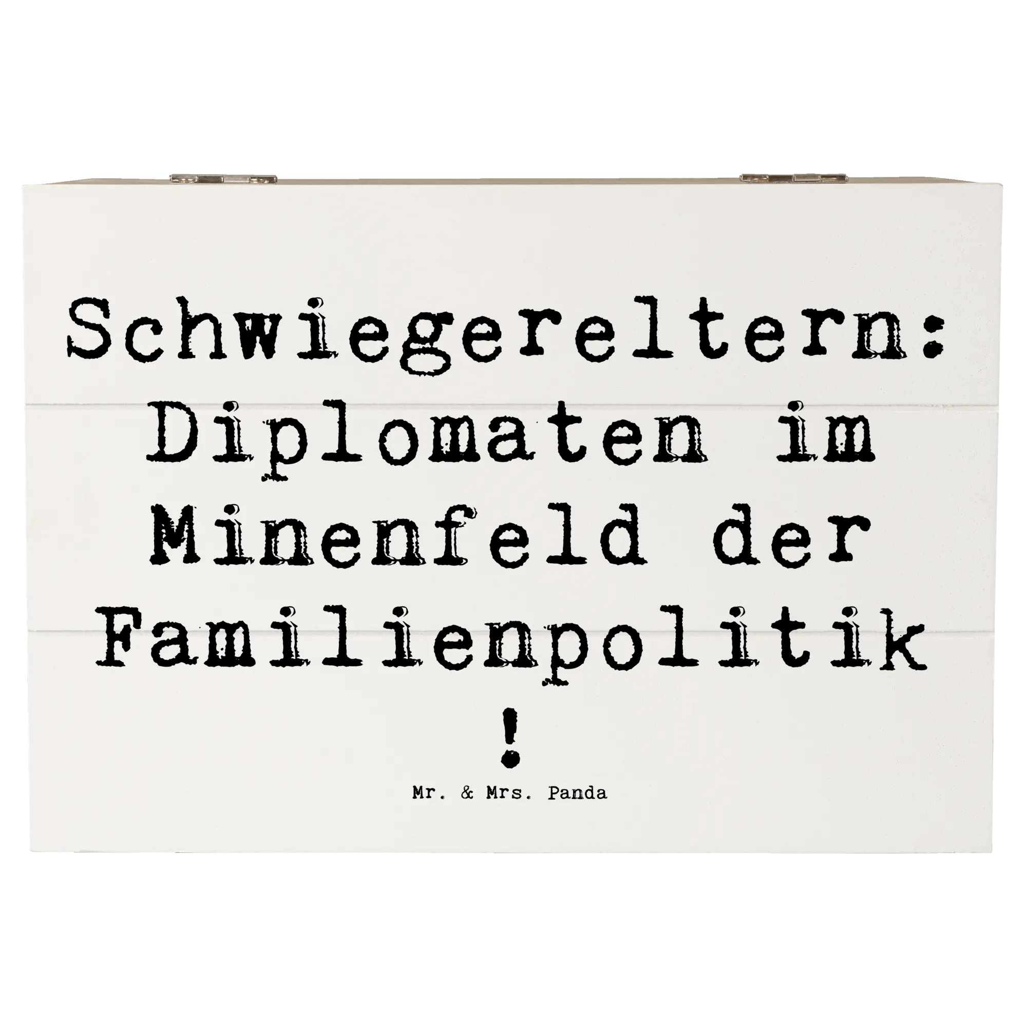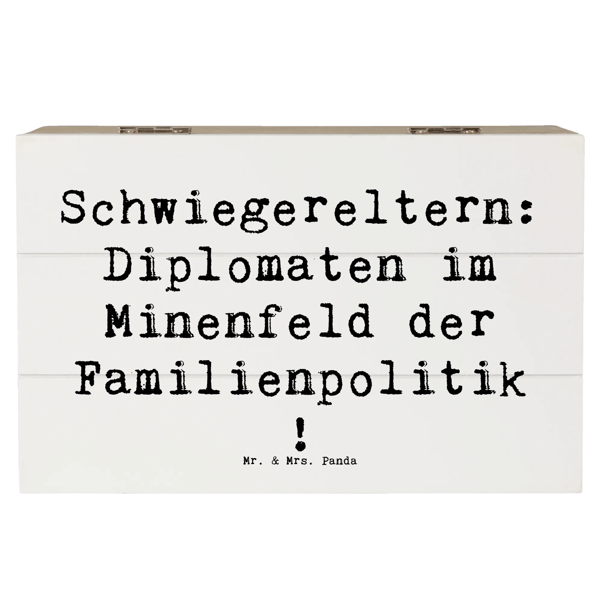 Die wunderschöne Holzkiste von Mr. & Mrs. Panda ist das perfekte Geschenk für Deine Schwiegereltern! Mit einem charmanten Spruch, der sie als "Diplomaten im Minenfeld der Familienpolitik" beschreibt, ist diese Kiste nicht nur ein Aufbewahrungsort für wertvolle Erinnerungen, sondern auch ein Zeichen der Dankbarkeit.