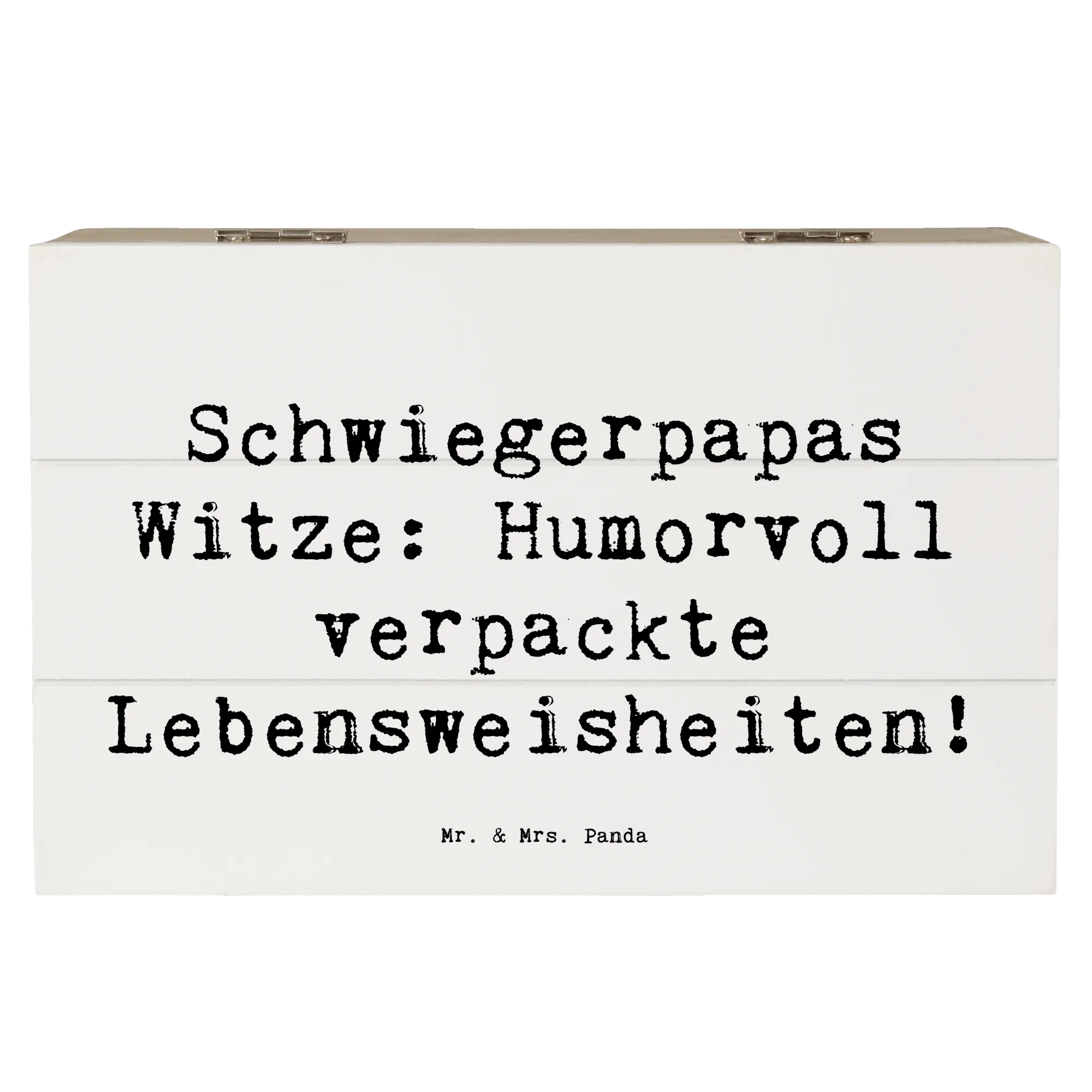 Die wunderschöne Holzkiste von Mr. & Mrs. Panda mit dem Motiv "Schwiegerpapa" ist das perfekte Geschenk für jeden Anlass! Egal, ob zum Vatertag, Geburtstag oder als kleines Dankeschön – diese Erinnerungskiste ist ein echtes Highlight in jedem Zuhause.