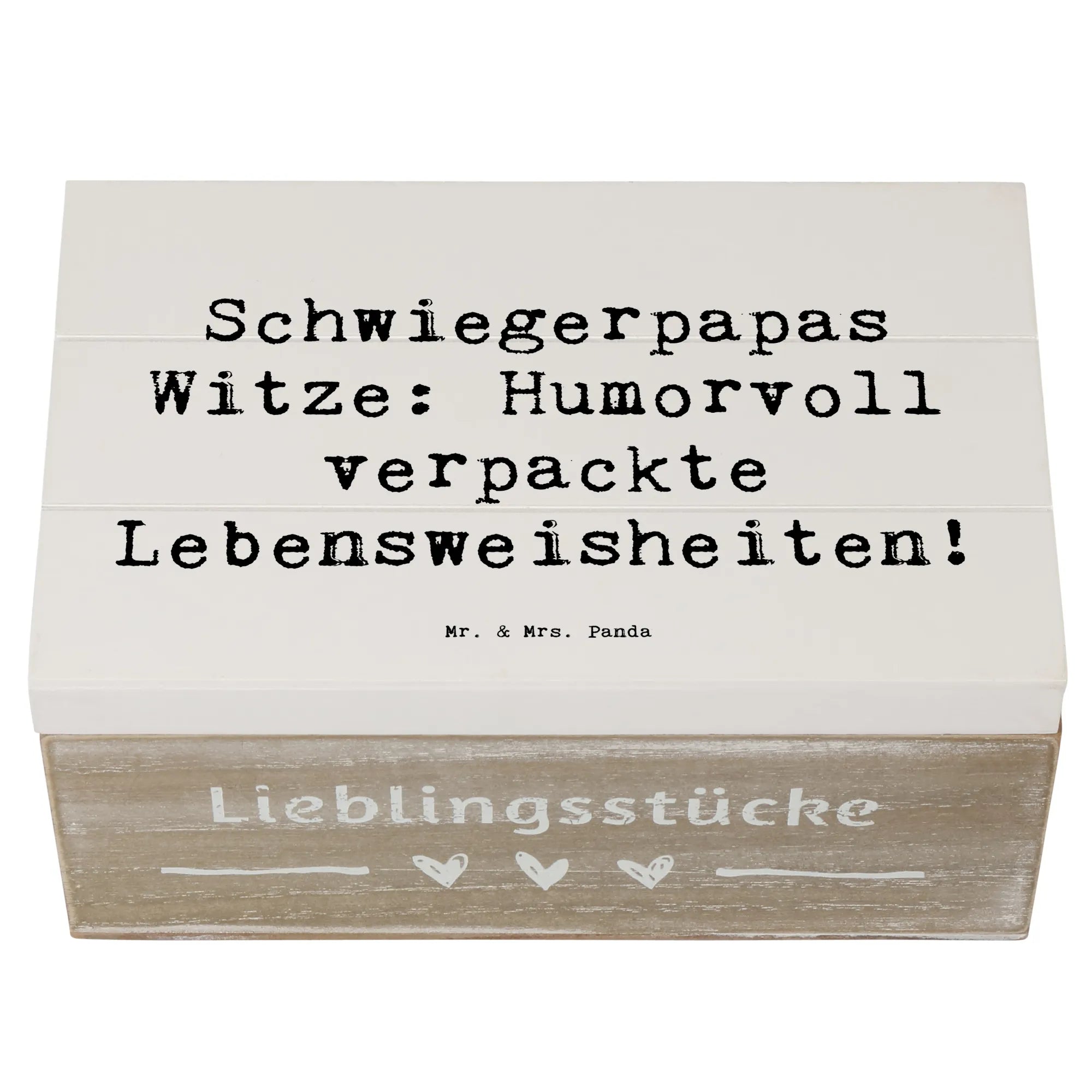 Du suchst nach einem besonderen Geschenk für Deinen Schwiegerpapa? Unsere wunderschöne Holzkiste von Mr. & Mrs. Panda ist die perfekte Wahl! Diese stabile XXL Erinnerungsbox aus hochwertiger Premium Hartfaser hat die idealen Maße von 190 mm x 120 mm x 100 mm. Sie eignet sich nicht nur als Aufbewahrungsort für Deine wertvollsten Schätze, sondern auch wunderbar als Dekokiste für Erinnerungen, Fotos oder Liebesbriefe.
