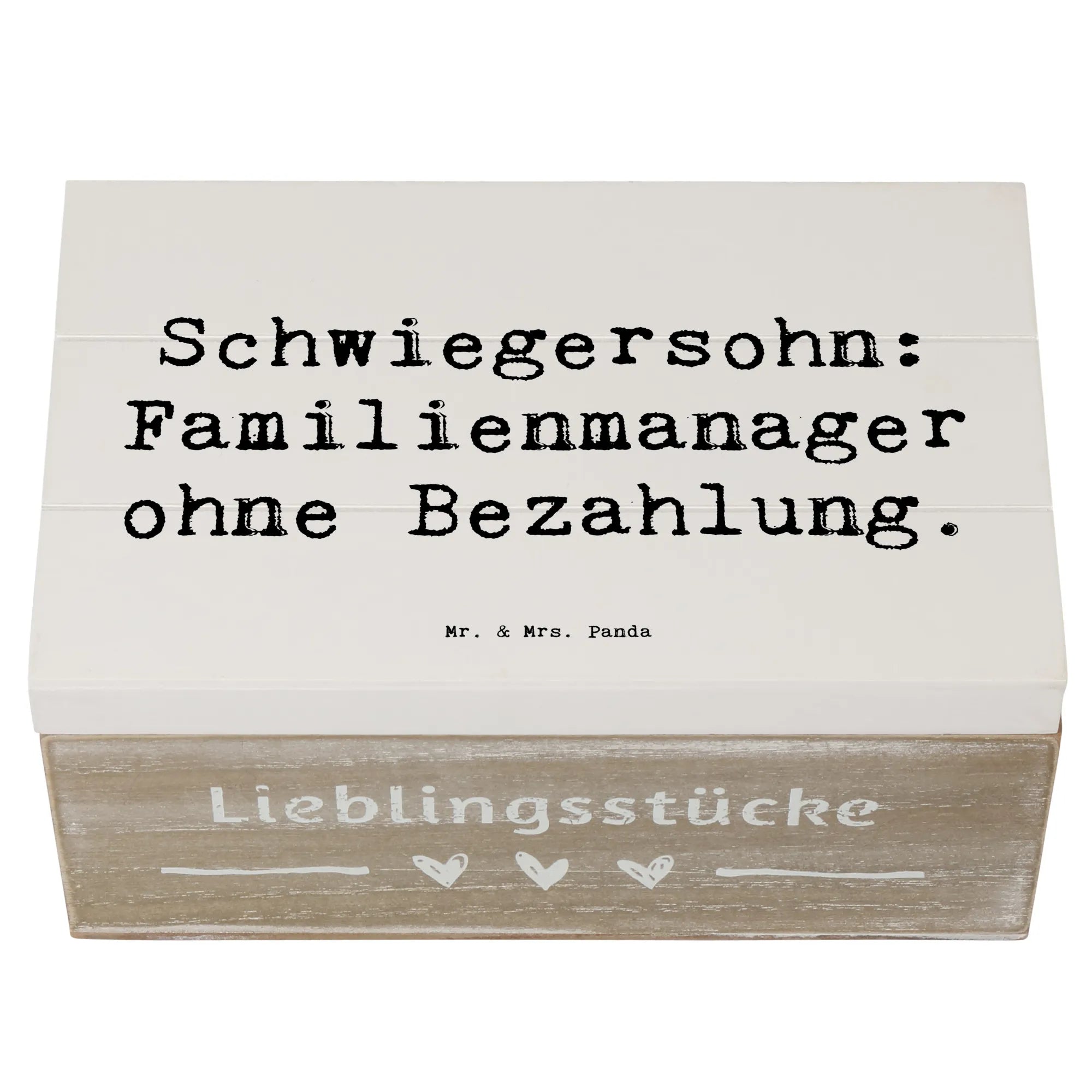 Die wunderschöne Holzkiste von Mr. & Mrs. Panda ist das perfekte Geschenk für Deinen Schwiegersohn! Mit dem liebevollen Spruch "Schwiegersohn: Familienmanager ohne Bezahlung" ausgestattet, wird diese Kiste zu einem besonderen Aufbewahrungsort für all die kleinen Schätze und Erinnerungen, die das Leben so einzigartig machen.