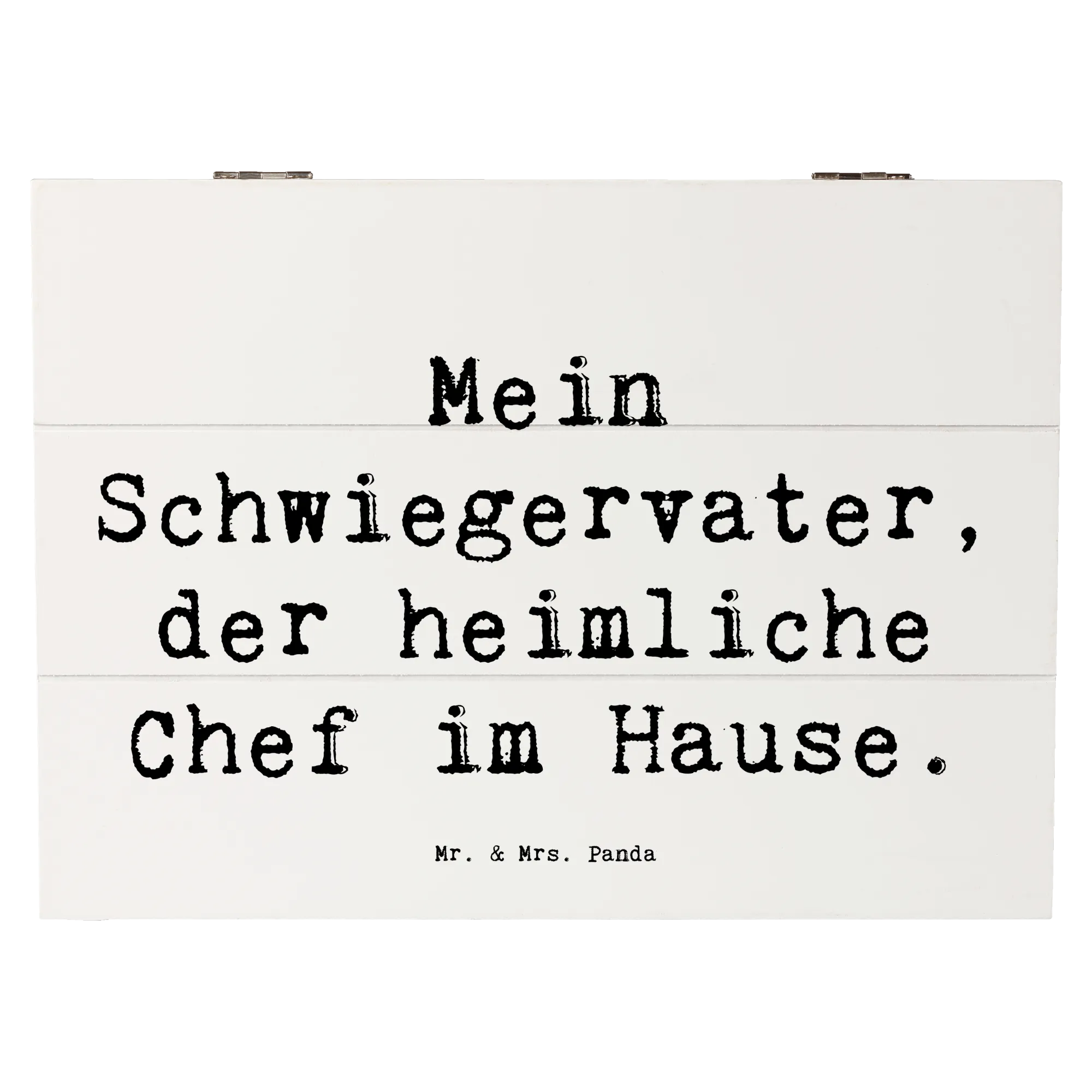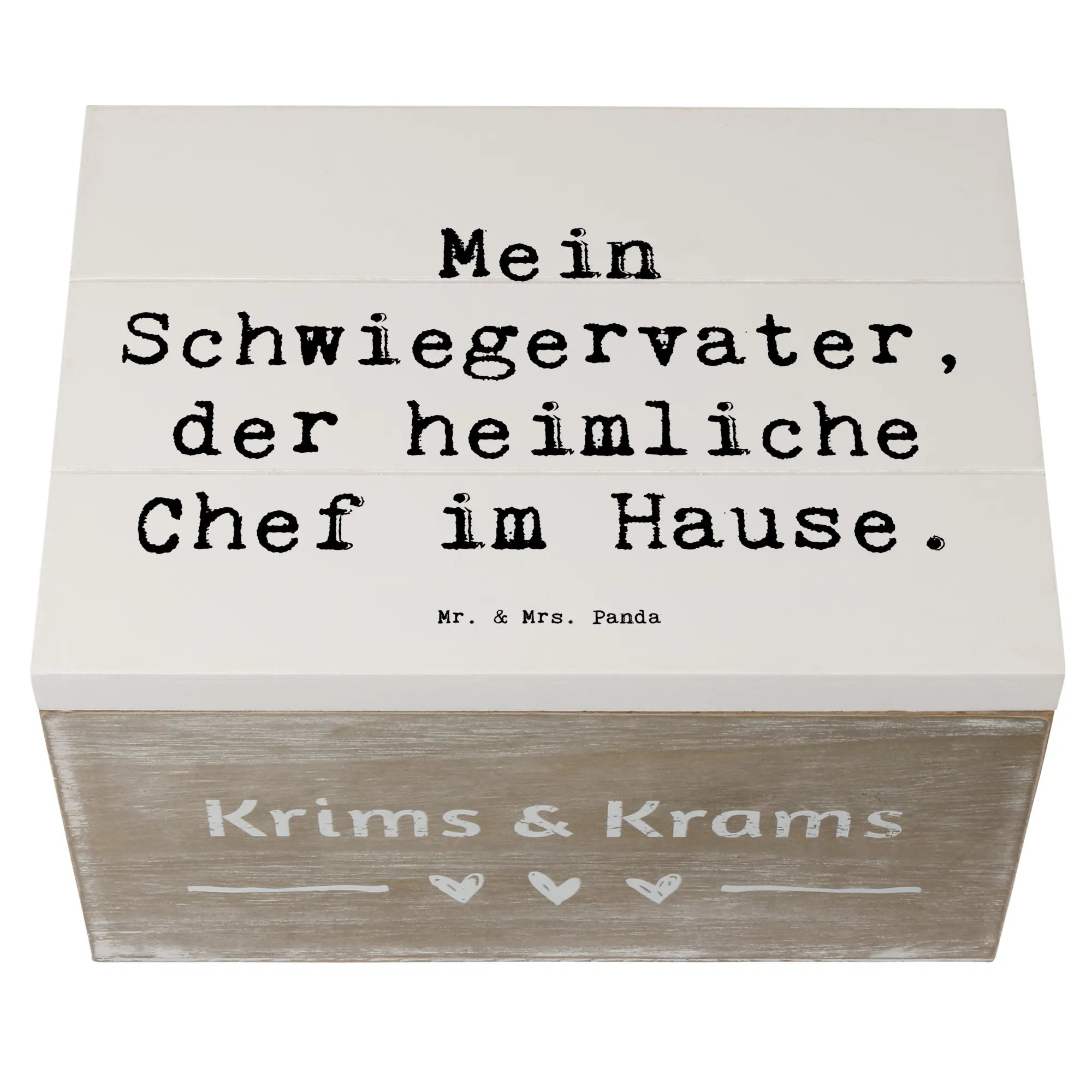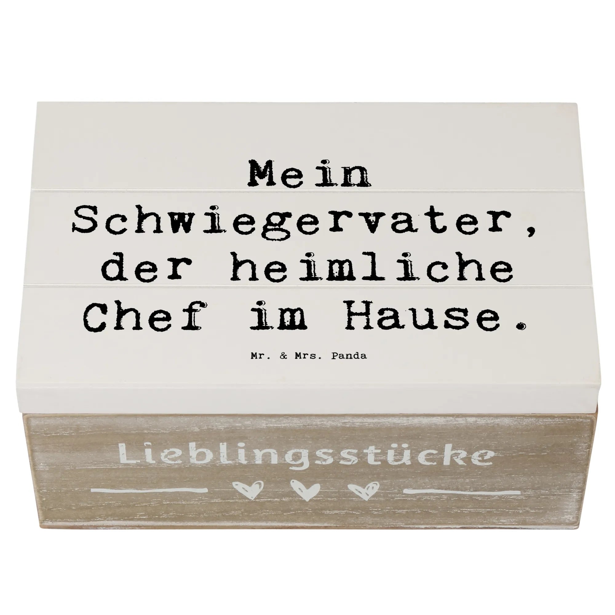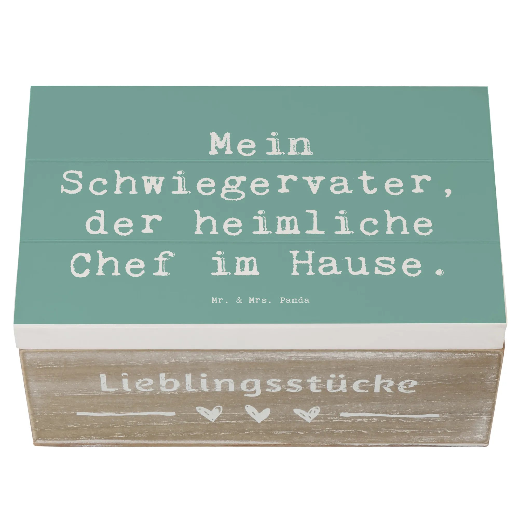 Die wunderschöne Holzkiste "Mein Schwiegervater, der heimliche Chef im Hause" von Mr. & Mrs. Panda ist das perfekte Geschenk für jeden Schwiegervater! Diese liebevoll gestaltete Kiste, die aus robuster Holzfaser gefertigt wird, bringt nicht nur Ordnung ins Homeoffice oder die Wohnräume, sondern ist auch ein hübsches Accessoire für jeden Anlass. Ob als Aufbewahrungsbox für persönliche Schätze, als Erinnerungskiste an besondere Momente oder als stilvolle Dekokiste, sie eignet sich hervorragend, um Erinnerungen und kleine Geschenke stilvoll aufzubewahren.