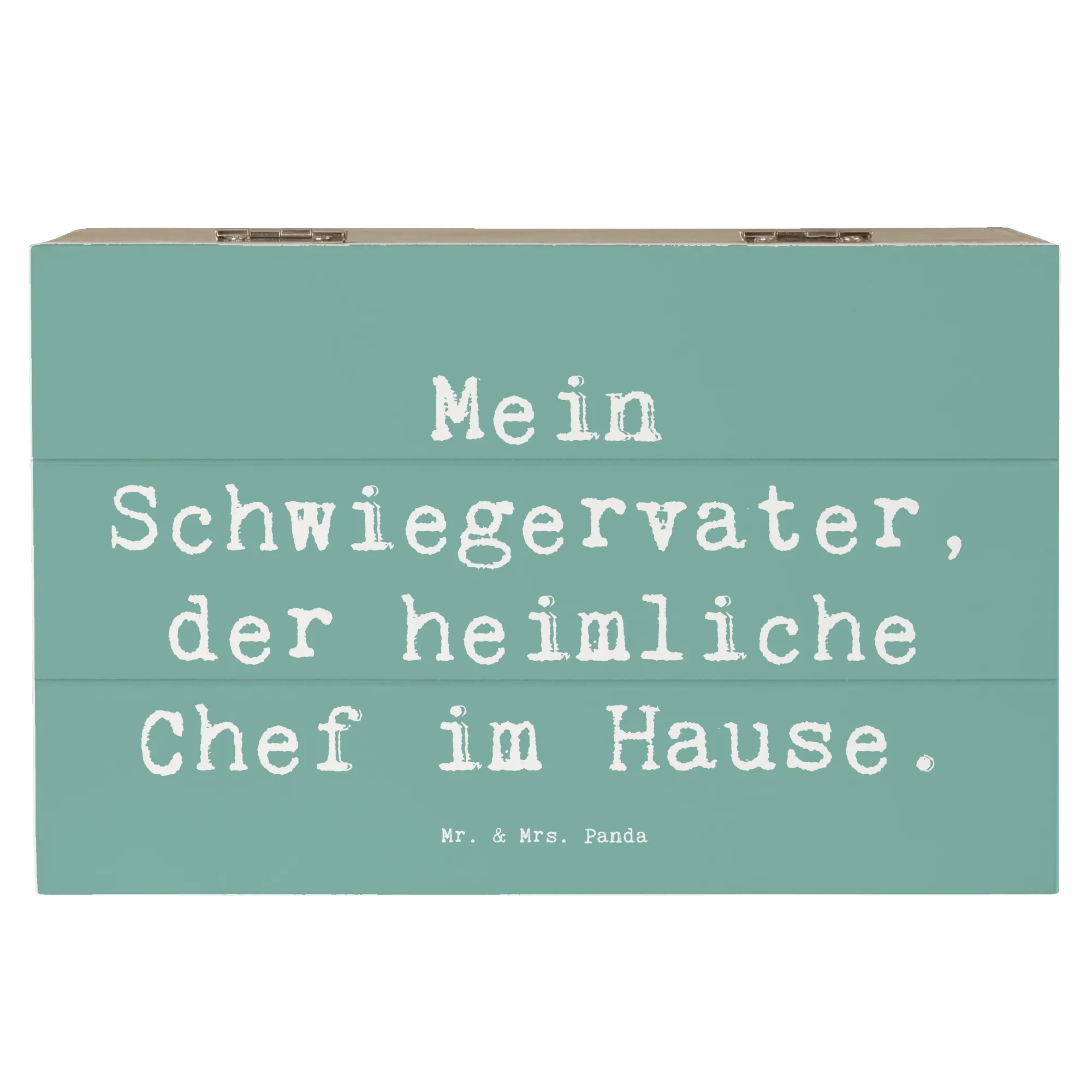 Die Holzkiste trägt den charmanten Slogan "Mein Schwiegervater, der heimliche Chef im Hause." und bringt die besondere Beziehung zwischen Schwiegervater und Schwiegerkind perfekt zum Ausdruck. In vielen Familien ist der Schwiegervater eine wichtige Stütze und Respektsperson – ein echter Herzensmensch, der immer ein offenes Ohr hat und Rat weiß. Unsere Holzkiste würdigt diesen besonderen Platz im Familienleben und ist daher nicht nur ein praktisches Aufbewahrungsstück, sondern auch ein Zeichen der Wertschätzung.