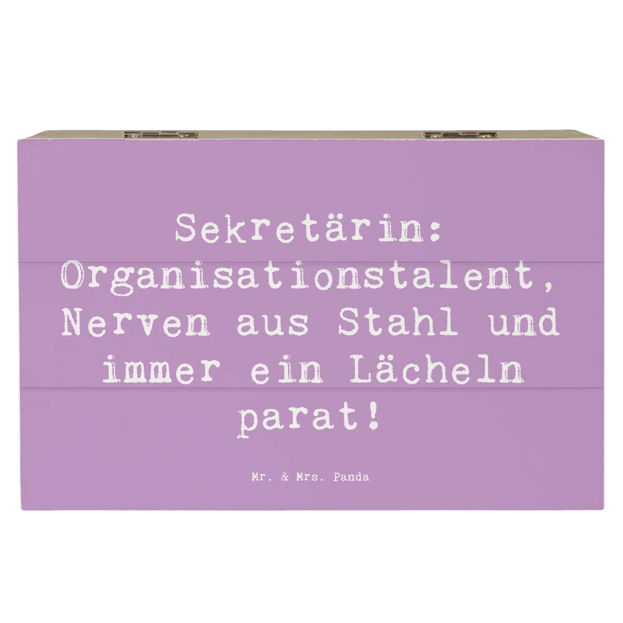 Die Holzkiste 'Sekretärin' von Mr. & Mrs. Panda ist das perfekte Geschenk für alle Organisationstalente und Freundinnen der Ordnung! Egal, ob zum Geburtstag, als liebevolles Dankeschön für die freundliche Sekretärin im Büro oder einfach nur, um jemandem eine Freude zu machen – diese wunderschöne Kiste ist die ideale Aufbewahrung für die kleinen Schätze des Lebens!