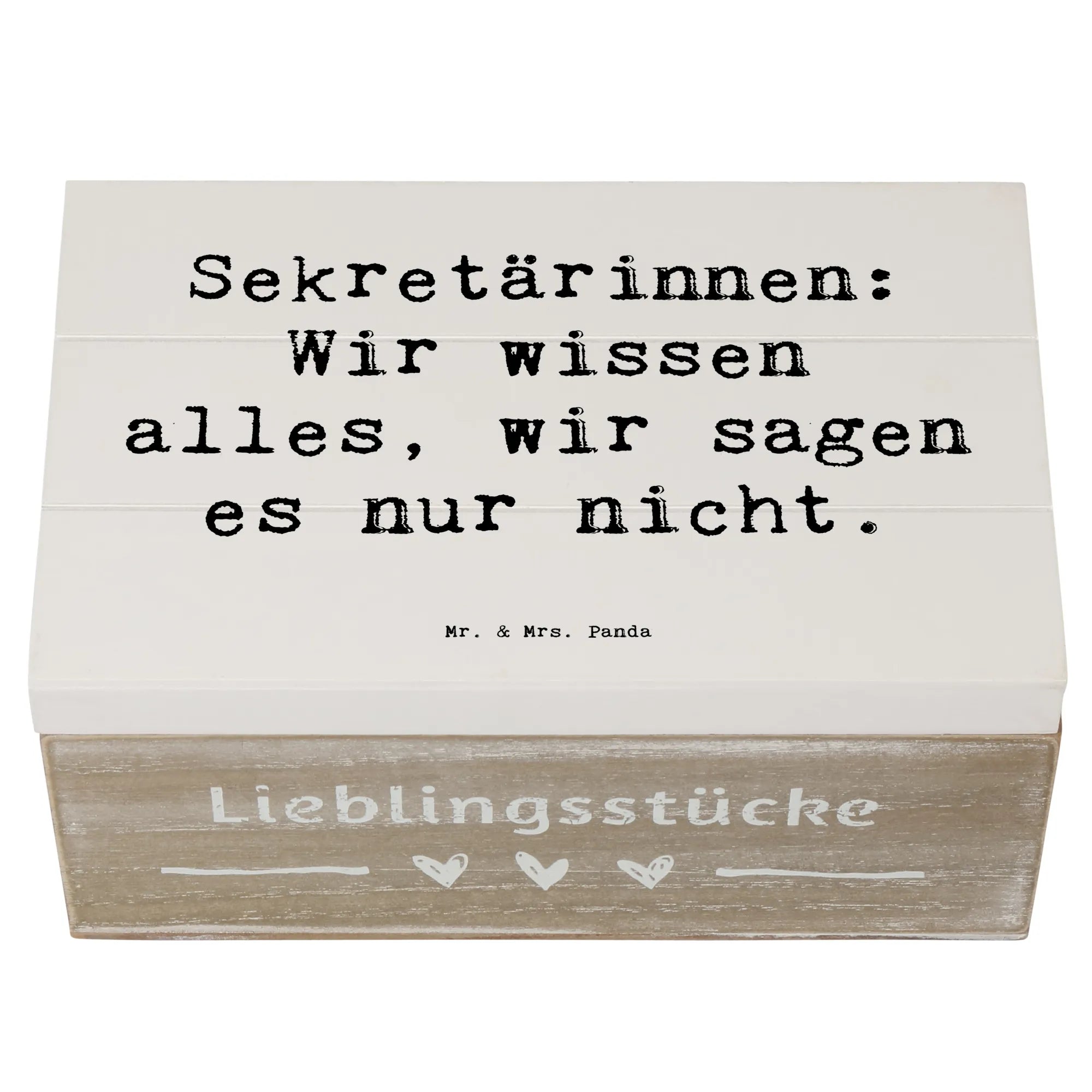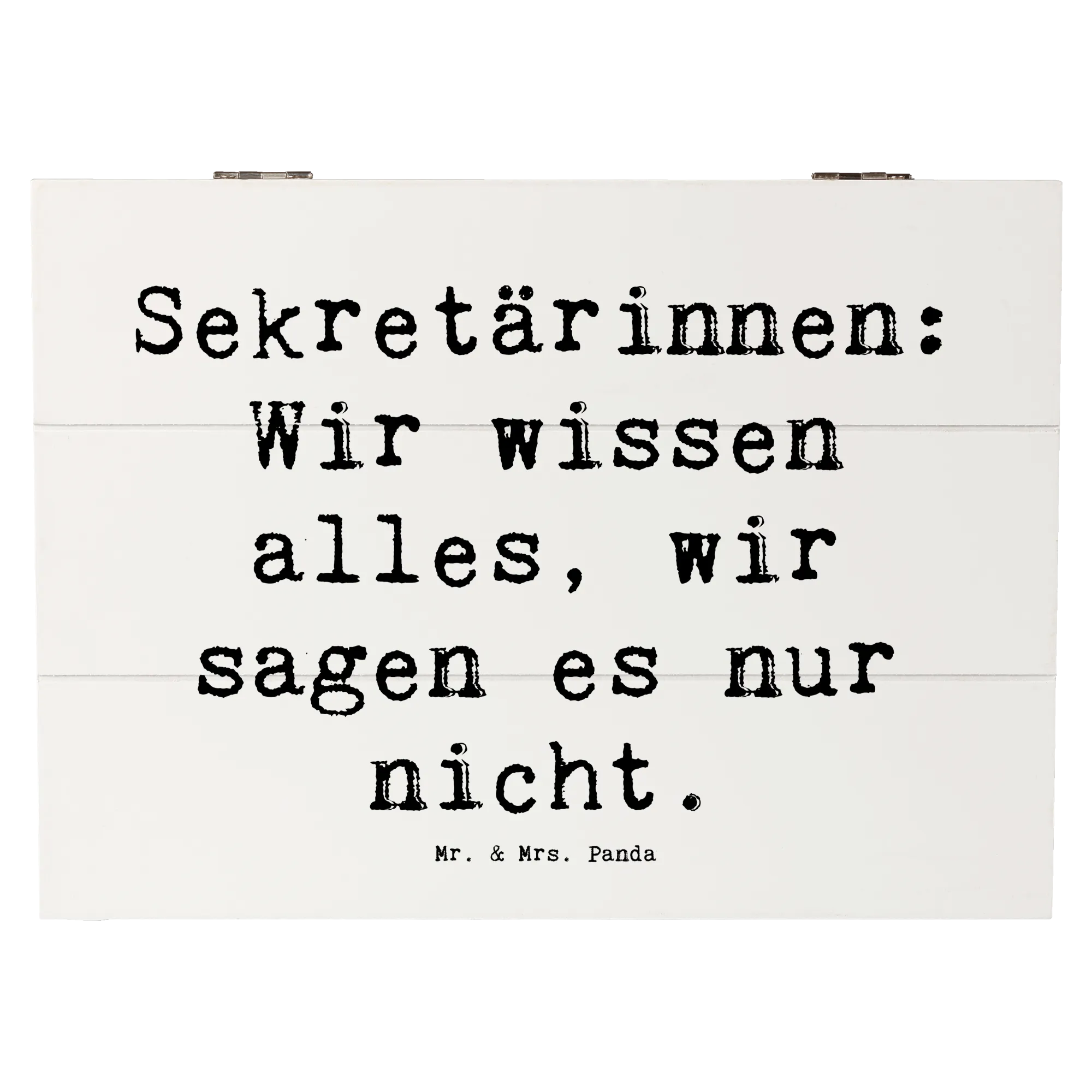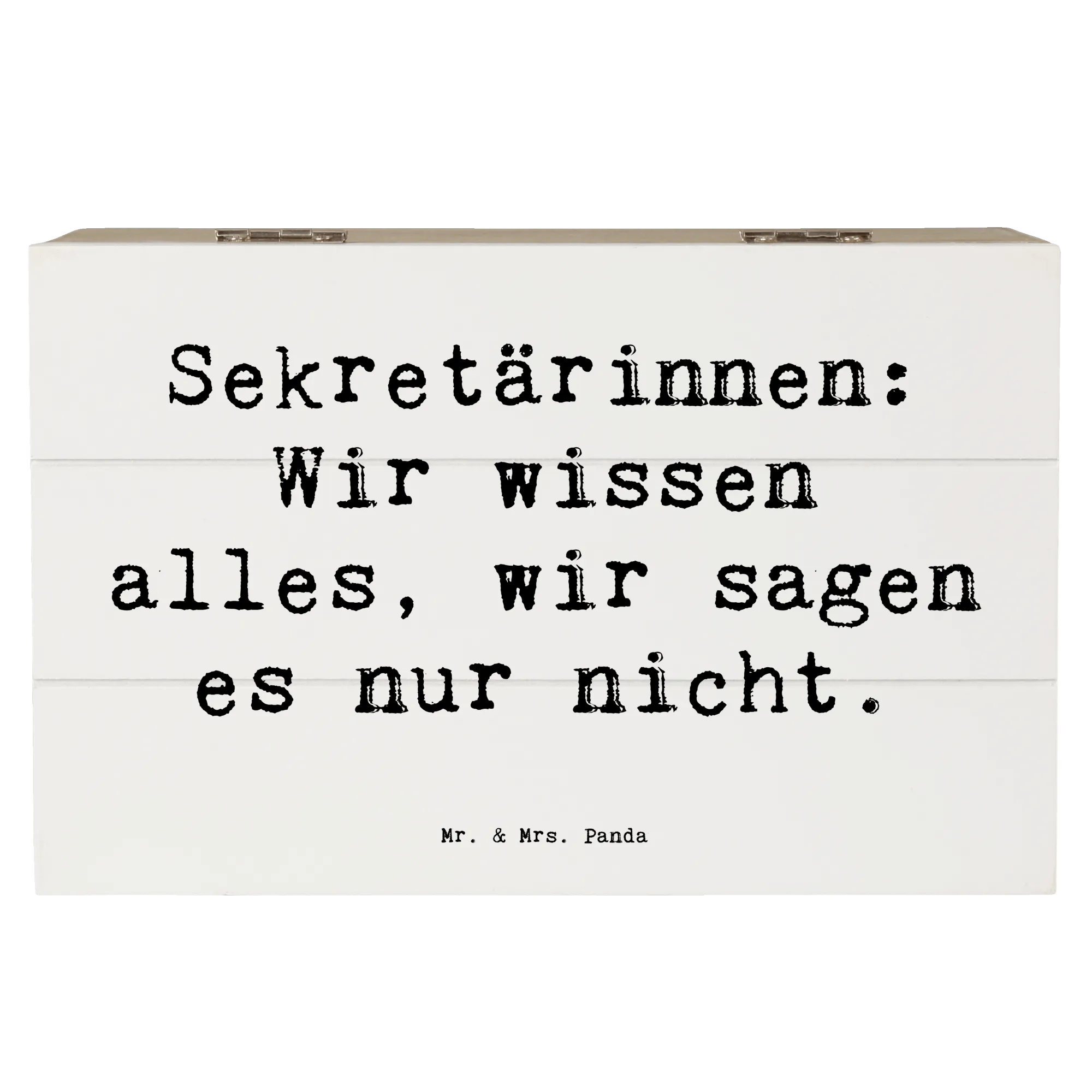 Die wunderschöne Holzkiste von Mr. & Mrs. Panda ist der perfekte Aufbewahrungsort für all deine wertvollen Erinnerungen. Mit einem charmanten Motiv für Sekretärinnen und dem Spruch "Sekretärinnen: Wir wissen alles, wir sagen es nur nicht." ist diese Kiste nicht nur praktisch, sondern auch ein echter Blickfang!