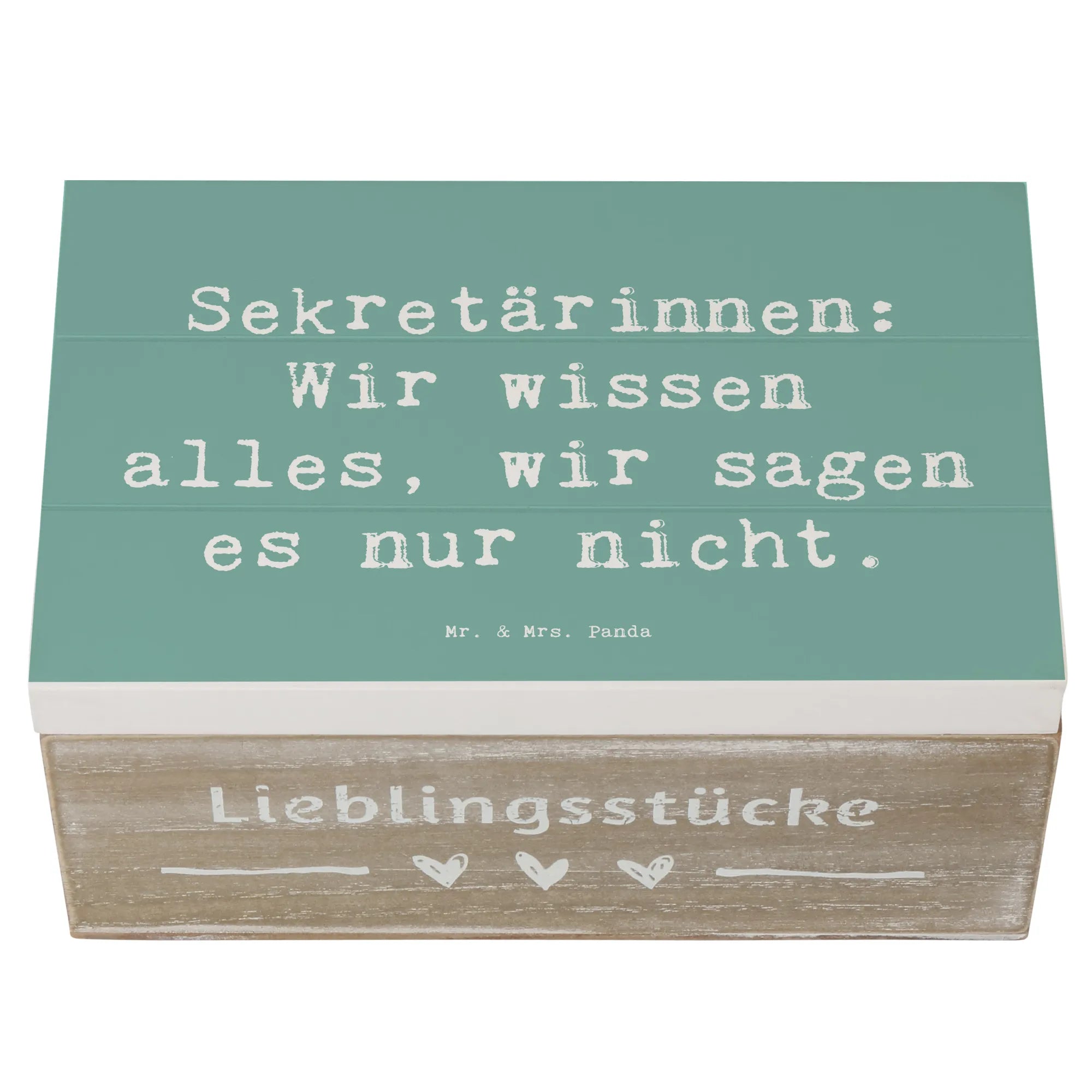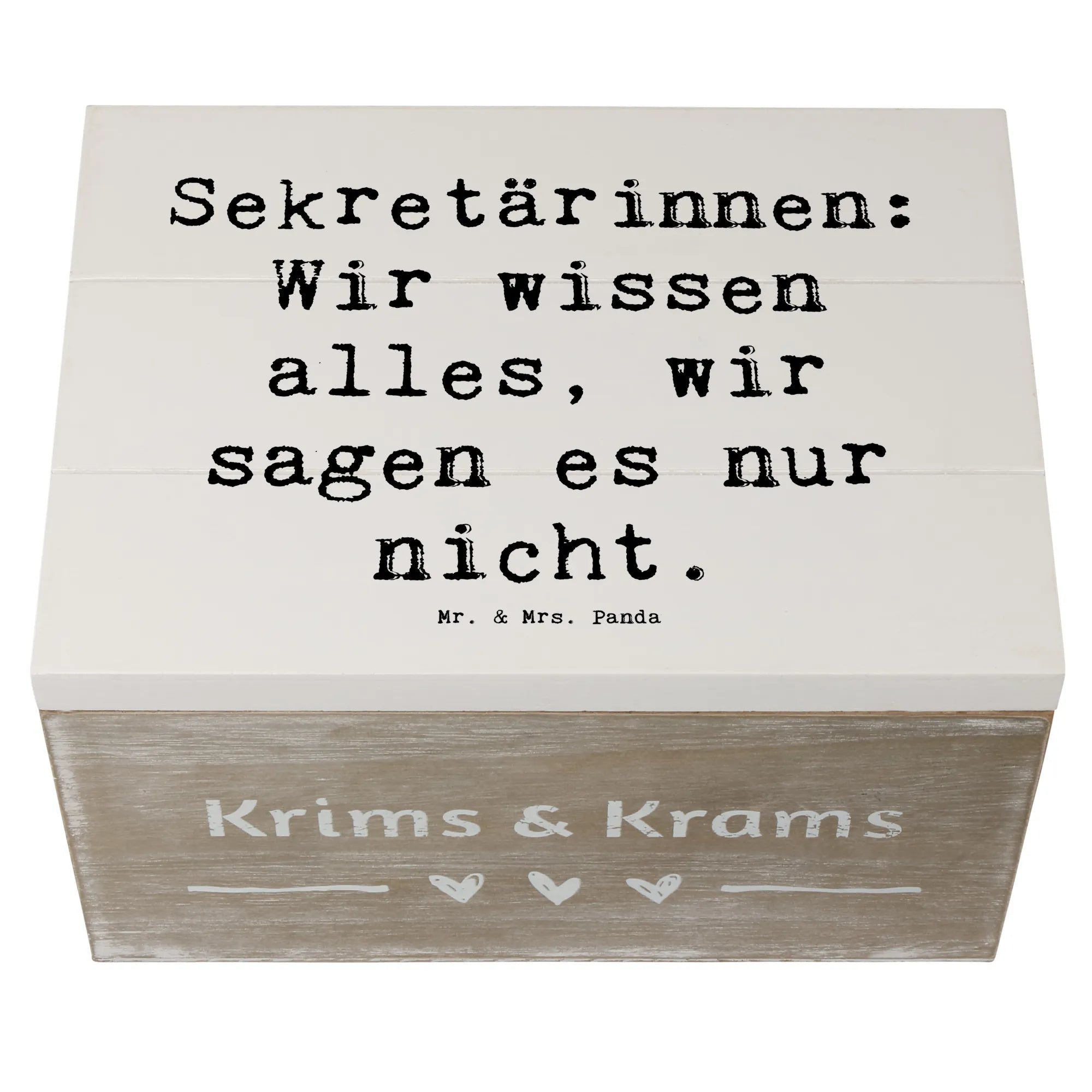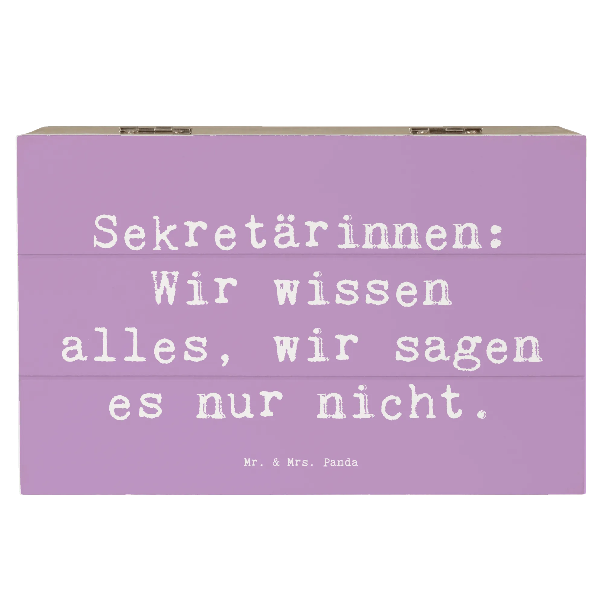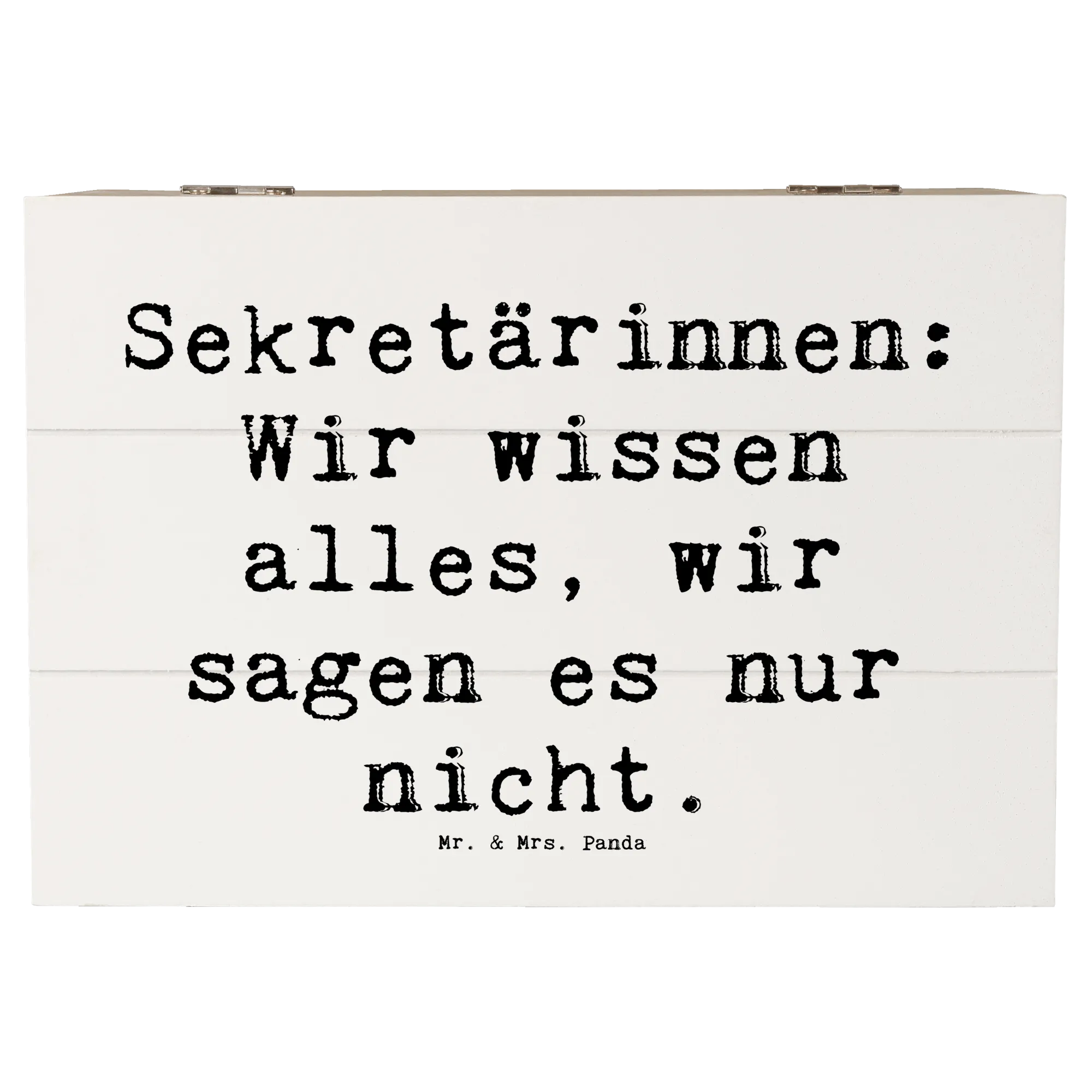 Die wunderschöne Holzkiste von Mr. & Mrs. Panda ist der perfekte Aufbewahrungsort für all deine wertvollen Erinnerungen. Mit einem charmanten Motiv für Sekretärinnen und dem Spruch "Sekretärinnen: Wir wissen alles, wir sagen es nur nicht." ist diese Kiste nicht nur praktisch, sondern auch ein echter Blickfang!
