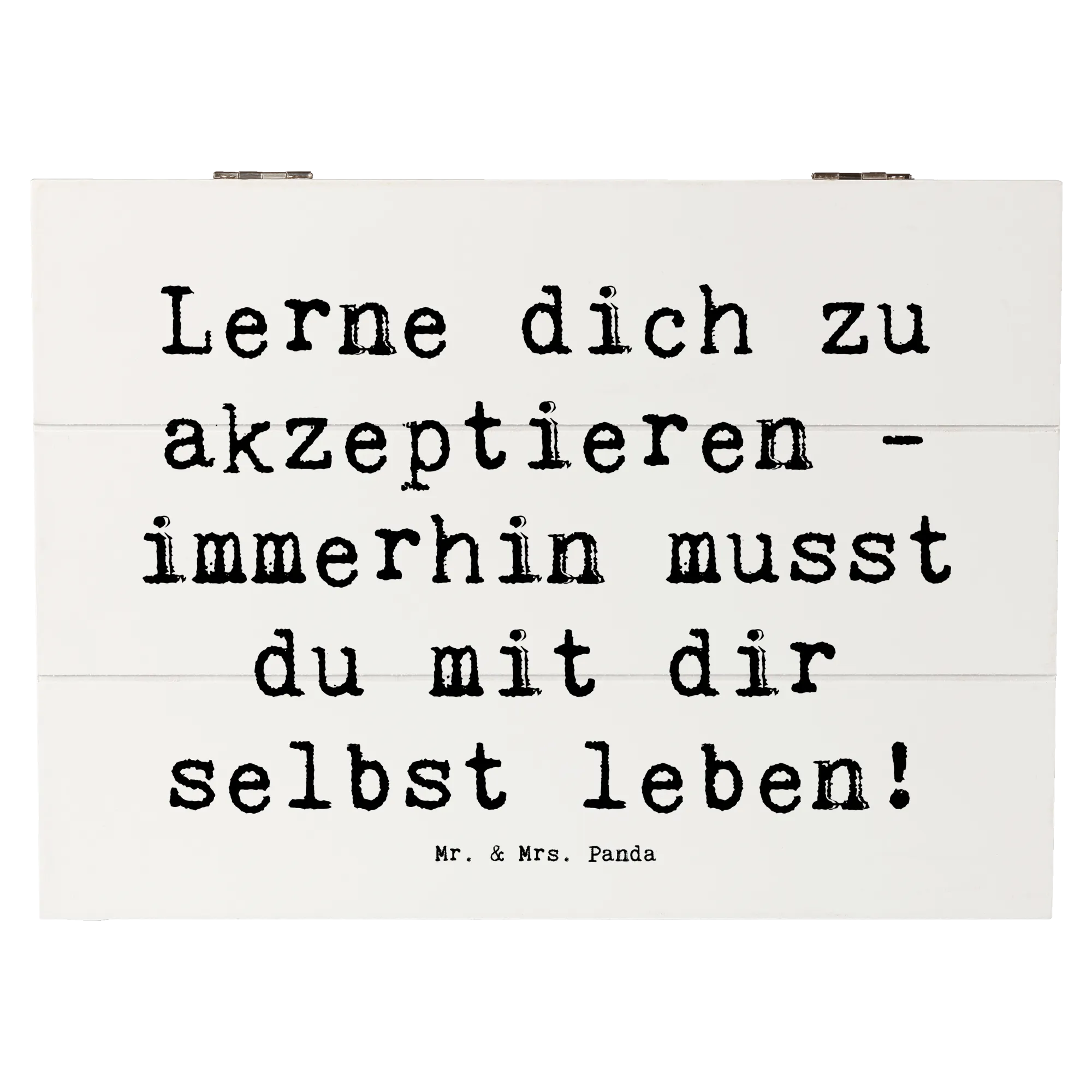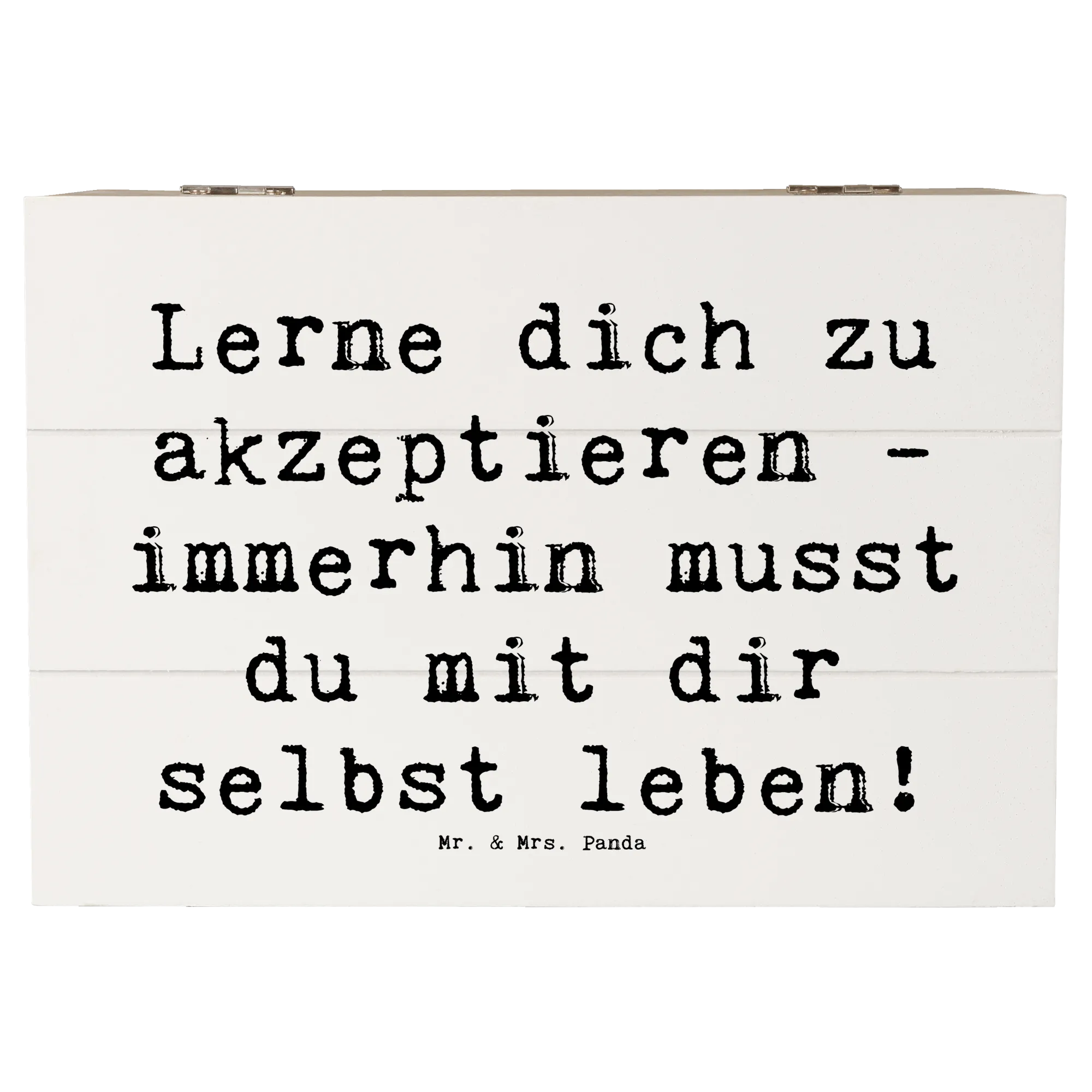 Holzkiste Spruch Selbstakzeptanz Lernen - 22 x 15 cm - Premium Hartfaser - Weiß