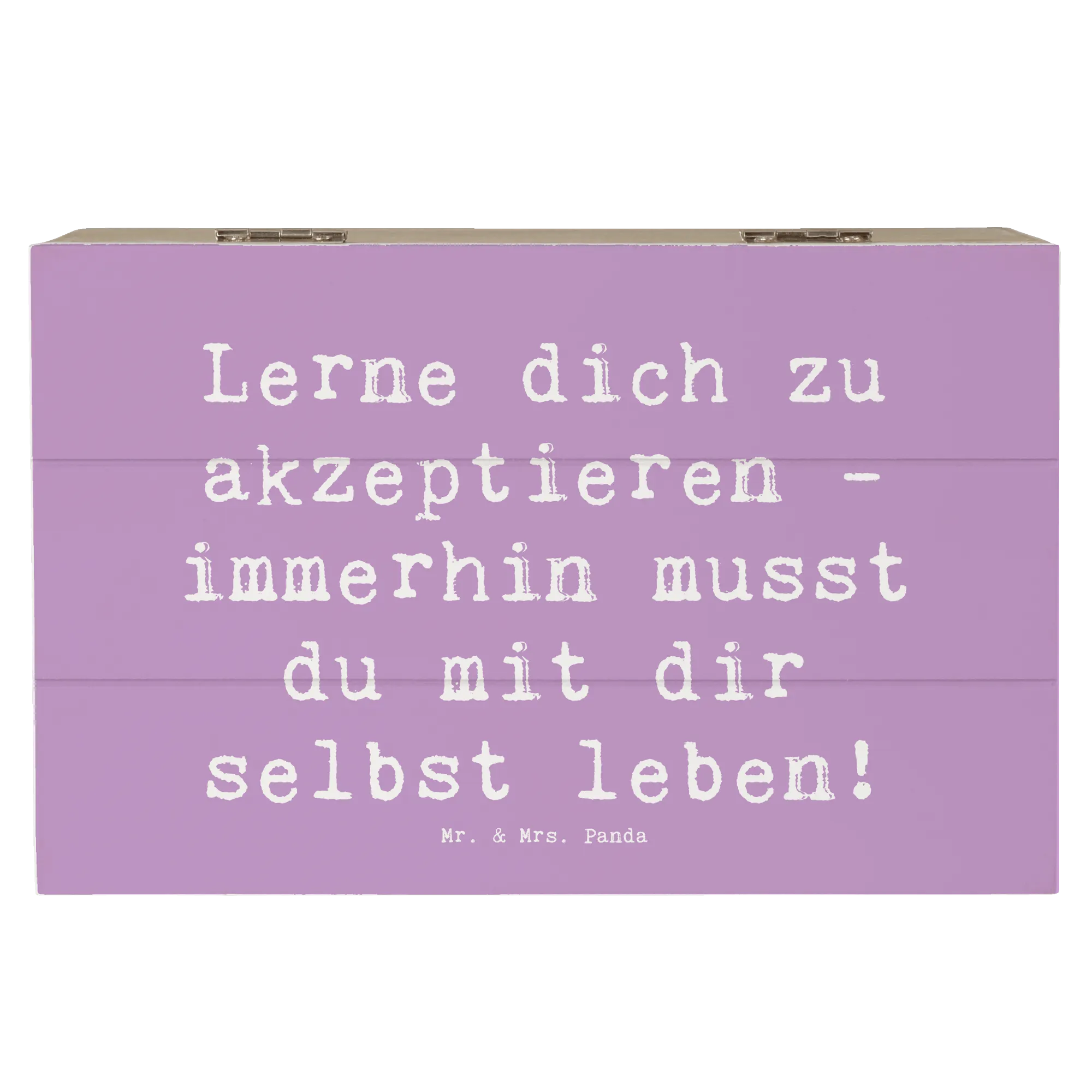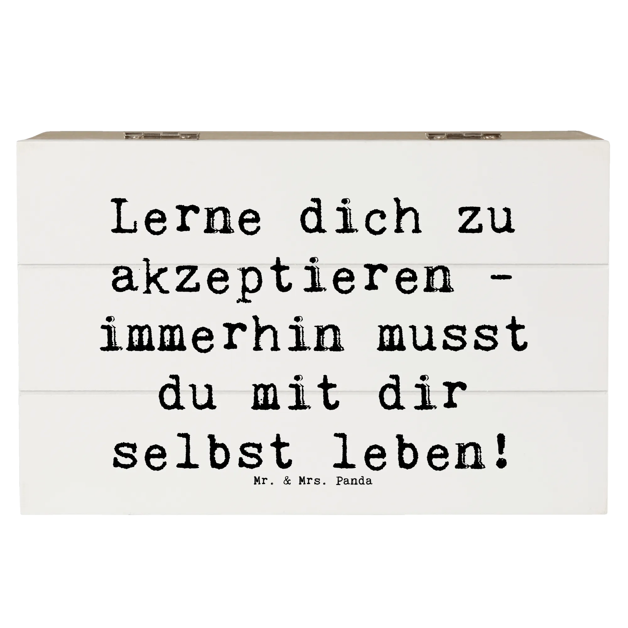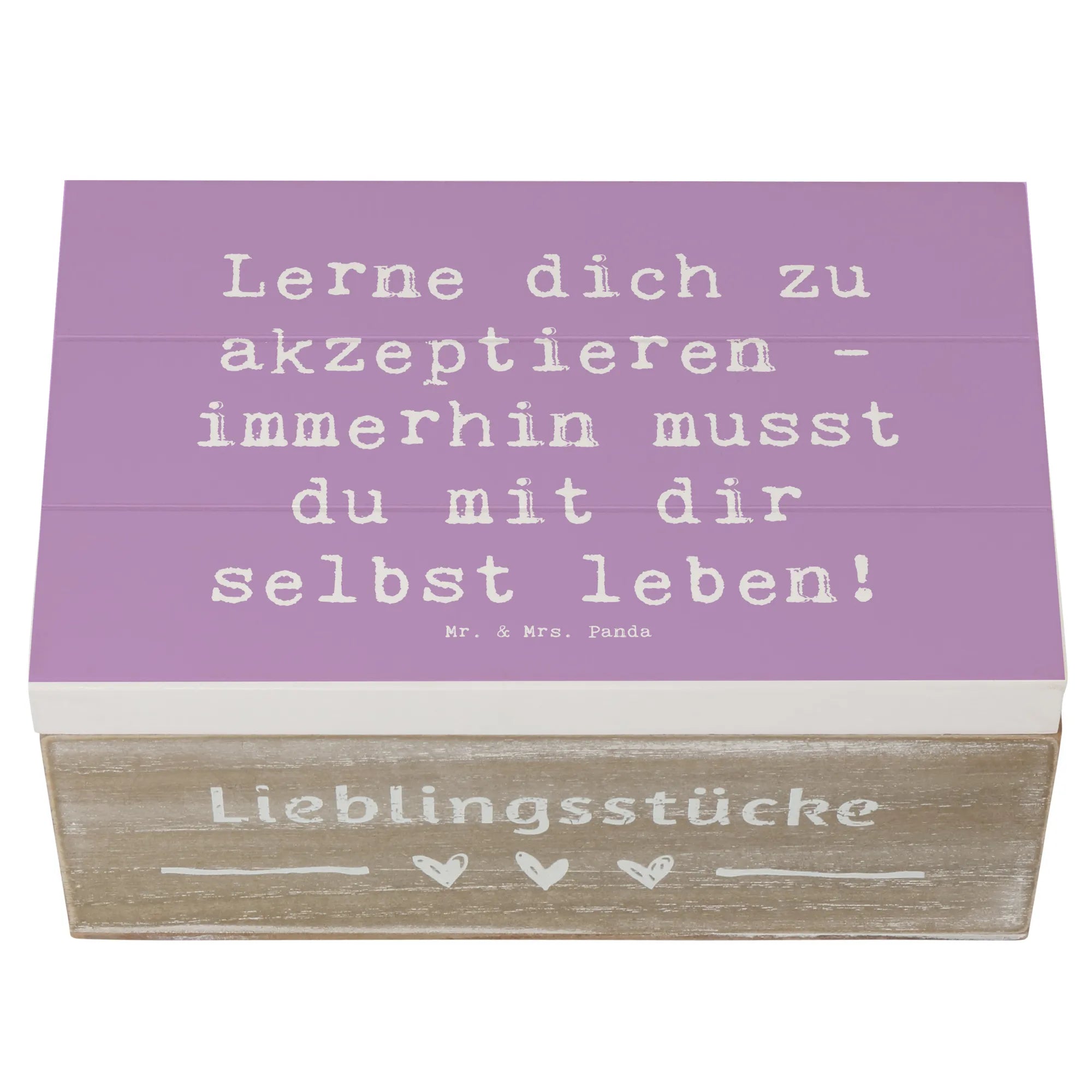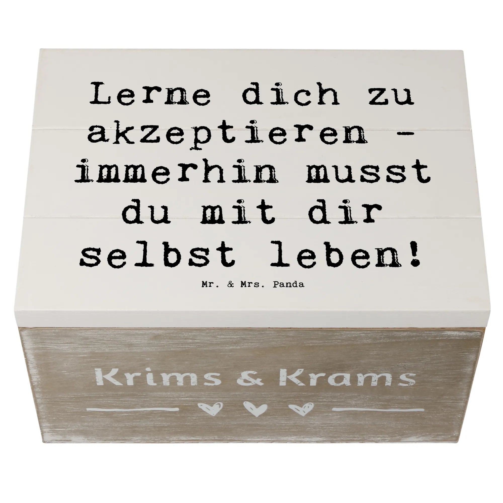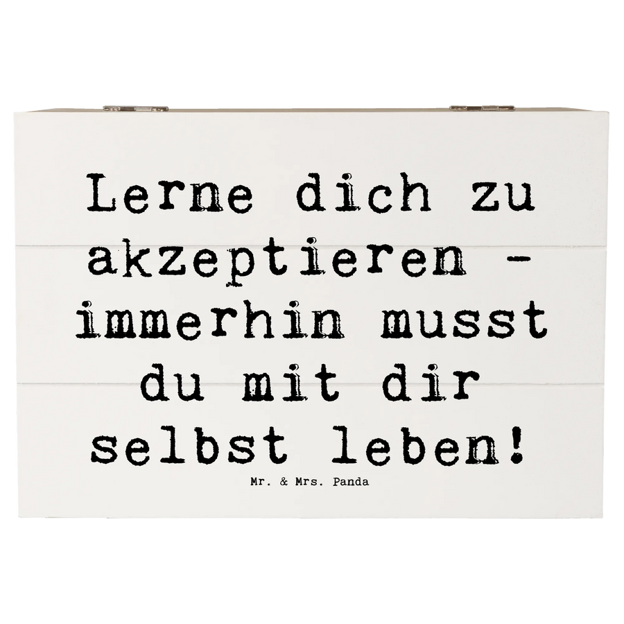 Die wunderschöne Holzkiste von Mr. & Mrs. Panda mit dem zauberhaften Motiv zur Selbstakzeptanz ist das perfekte Geschenk für alle, die in ihrem Leben die positive Botschaft "Lerne dich zu akzeptieren - immerhin musst du mit dir selbst leben!" genießen möchten.
