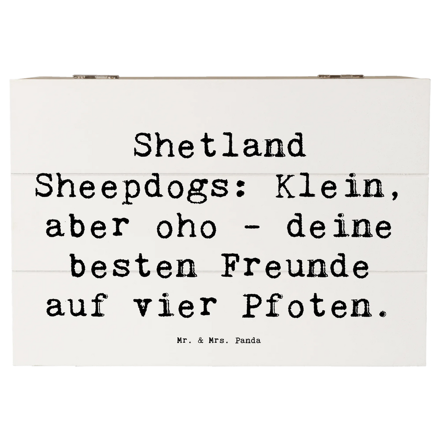 Die wunderschöne Holzkiste von Mr. & Mrs. Panda mit dem bezaubernden Motiv des Shetland Sheepdogs ist das perfekte Geschenk für alle Hundeliebhaber und echte Freunde dieser tollen Hunderasse. Egal ob zur Kommunion, Konfirmation oder einfach nur so – diese Erinnerungskiste ist der ideale Aufbewahrungsort für all die wertvollen Schätze deines Lebens!