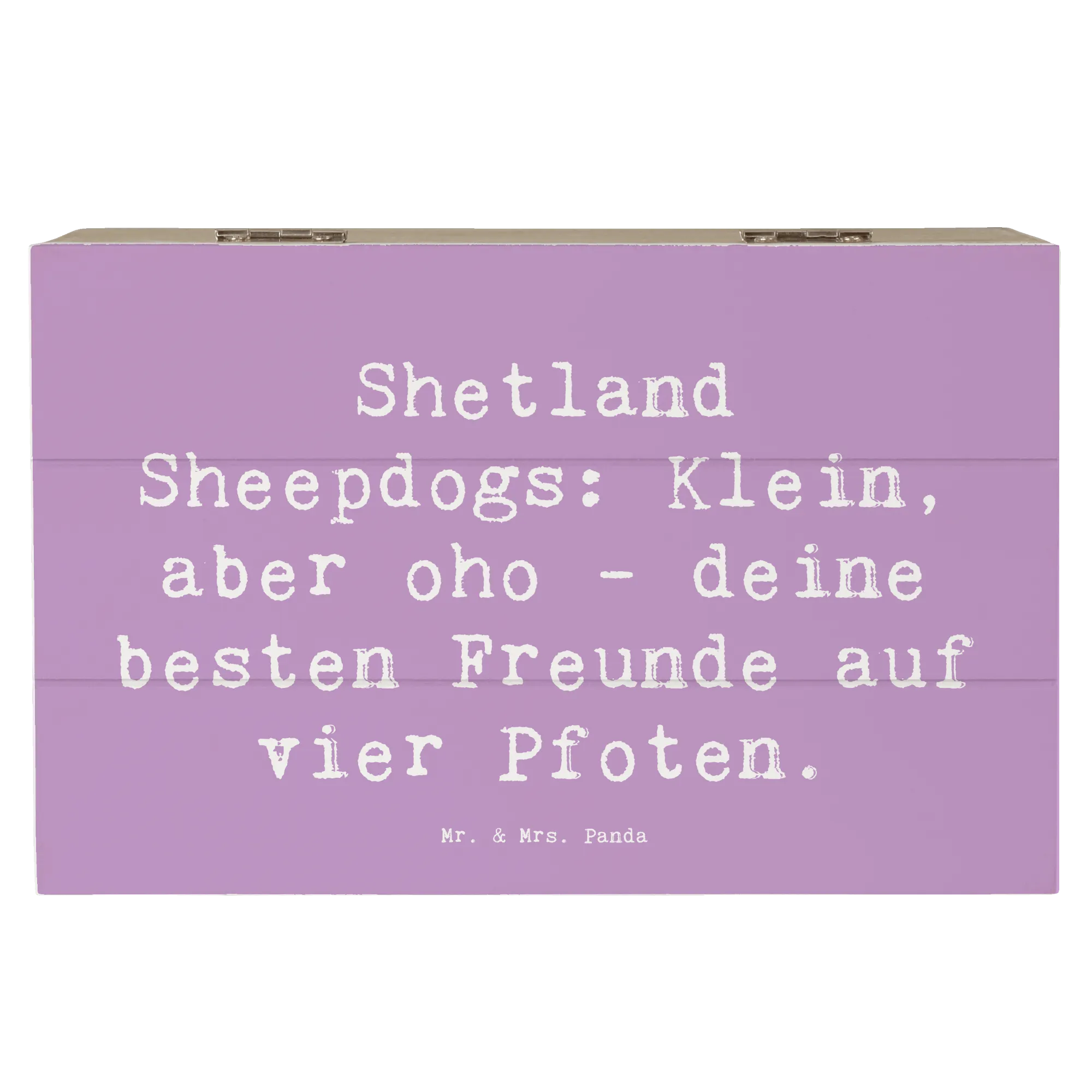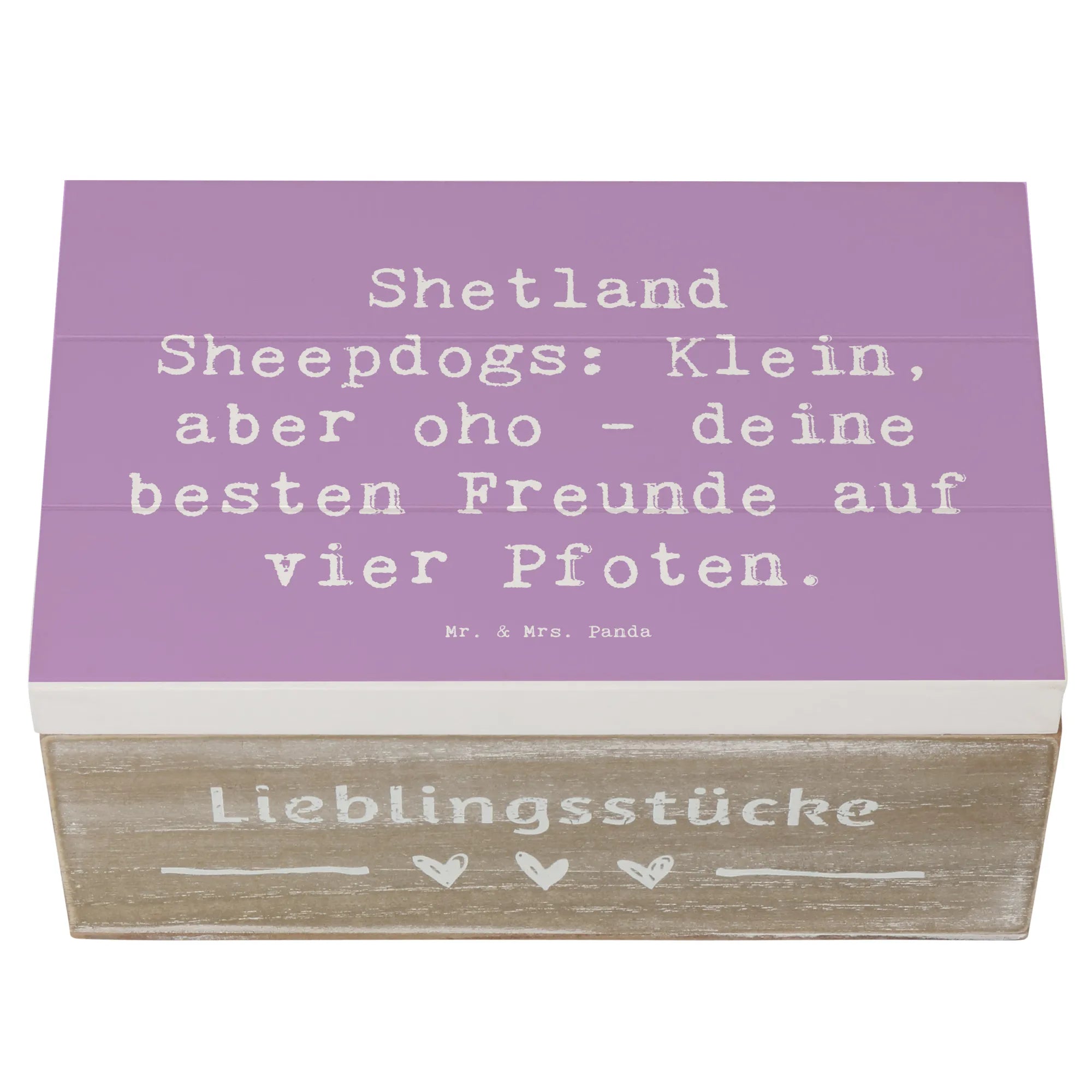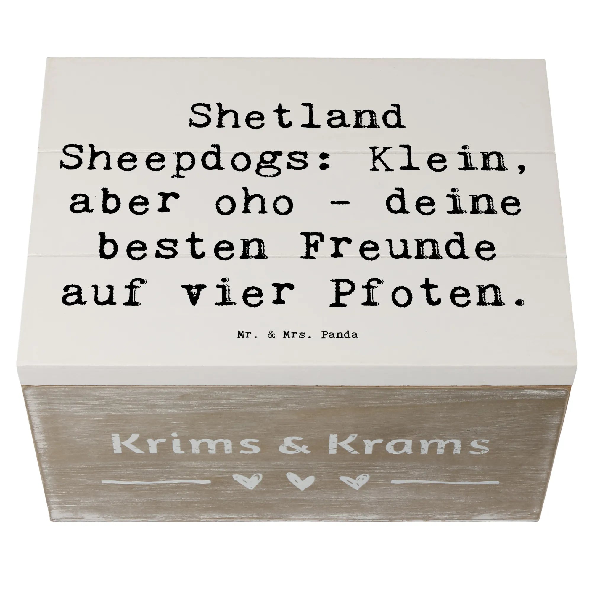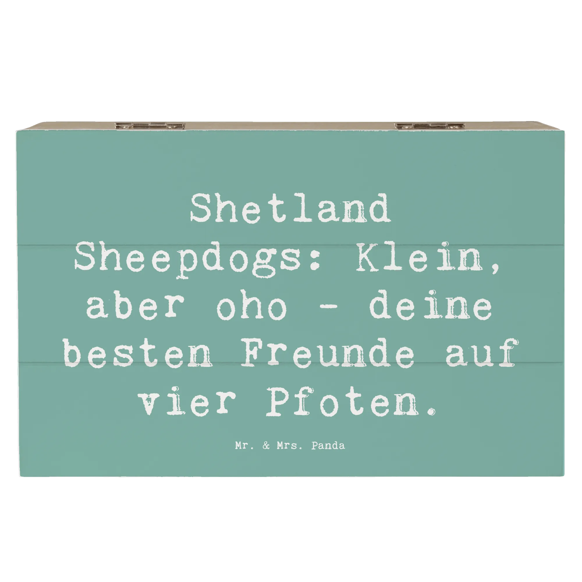 Jede Kiste ist mit einem süßen Spruch versehen: 'Shetland Sheepdogs: Klein, aber oho - deine besten Freunde auf vier Pfoten.', was dein Herz sicherlich höher schlagen lässt.