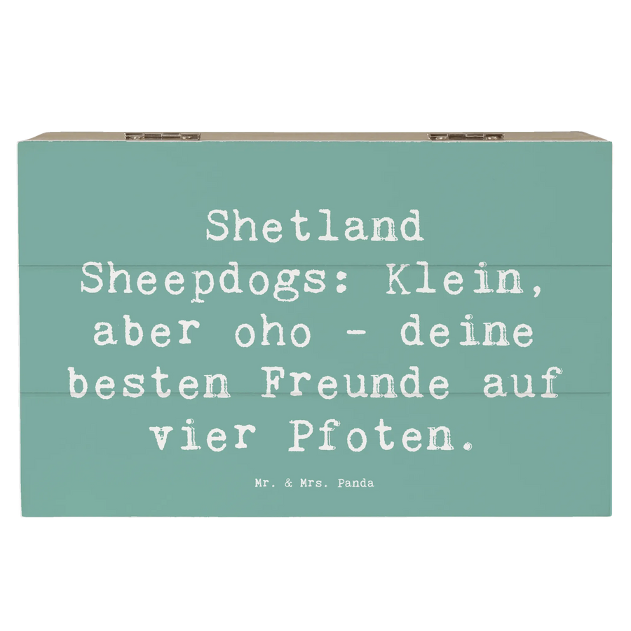 Die wunderschöne Holzkiste von Mr. & Mrs. Panda mit dem bezaubernden Motiv des Shetland Sheepdogs ist das perfekte Geschenk für alle Hundeliebhaber und echte Freunde dieser tollen Hunderasse. Egal ob zur Kommunion, Konfirmation oder einfach nur so – diese Erinnerungskiste ist der ideale Aufbewahrungsort für all die wertvollen Schätze deines Lebens!