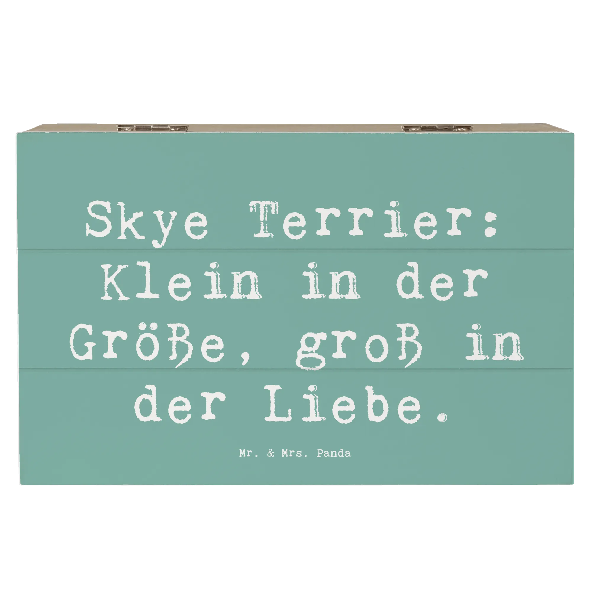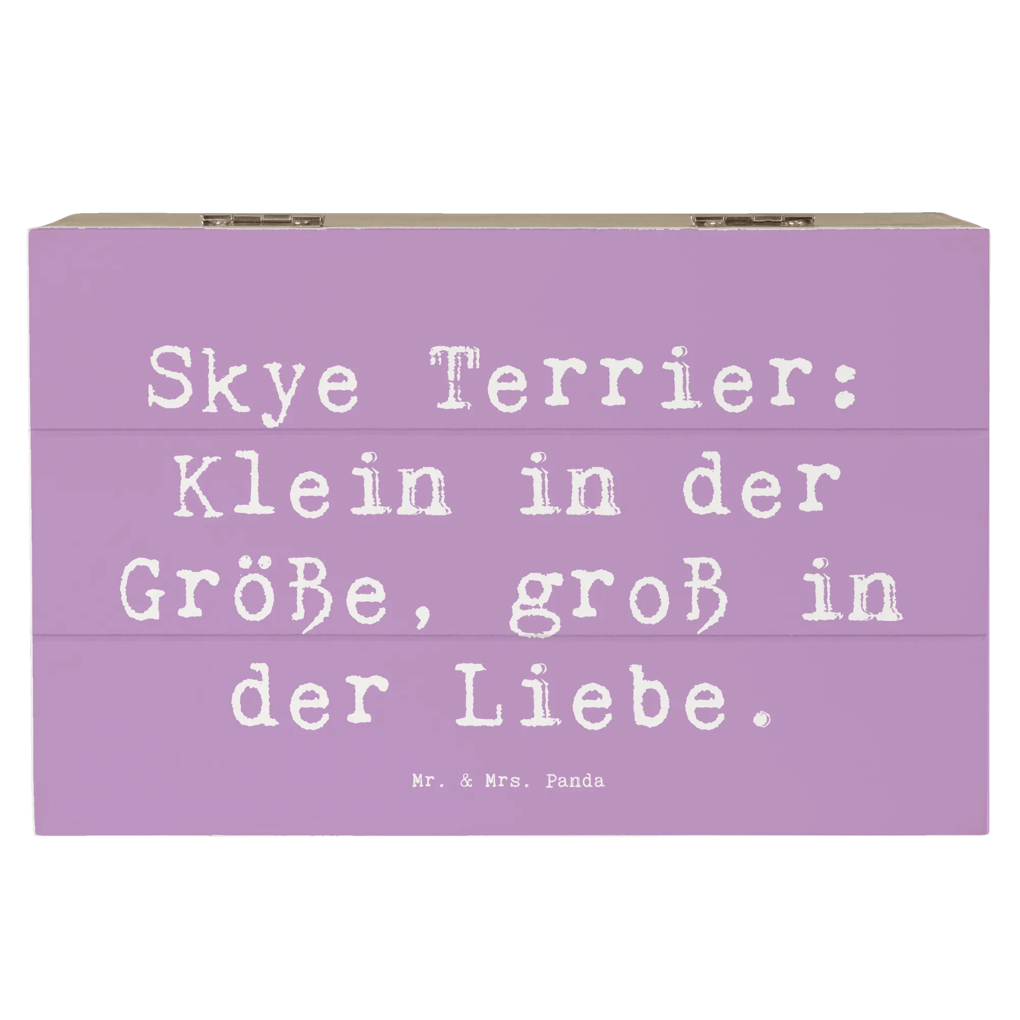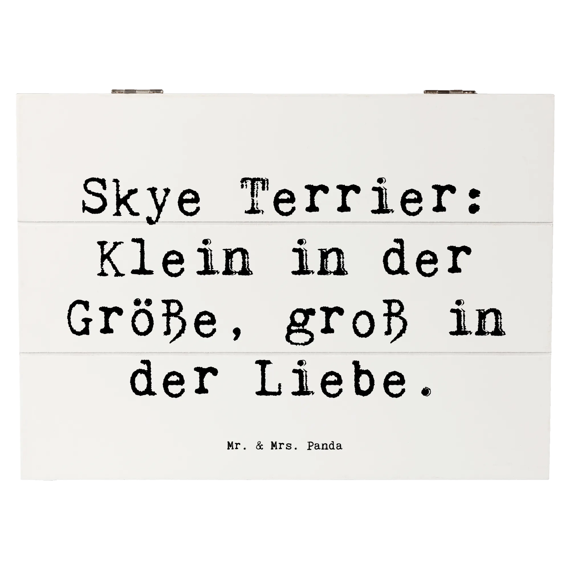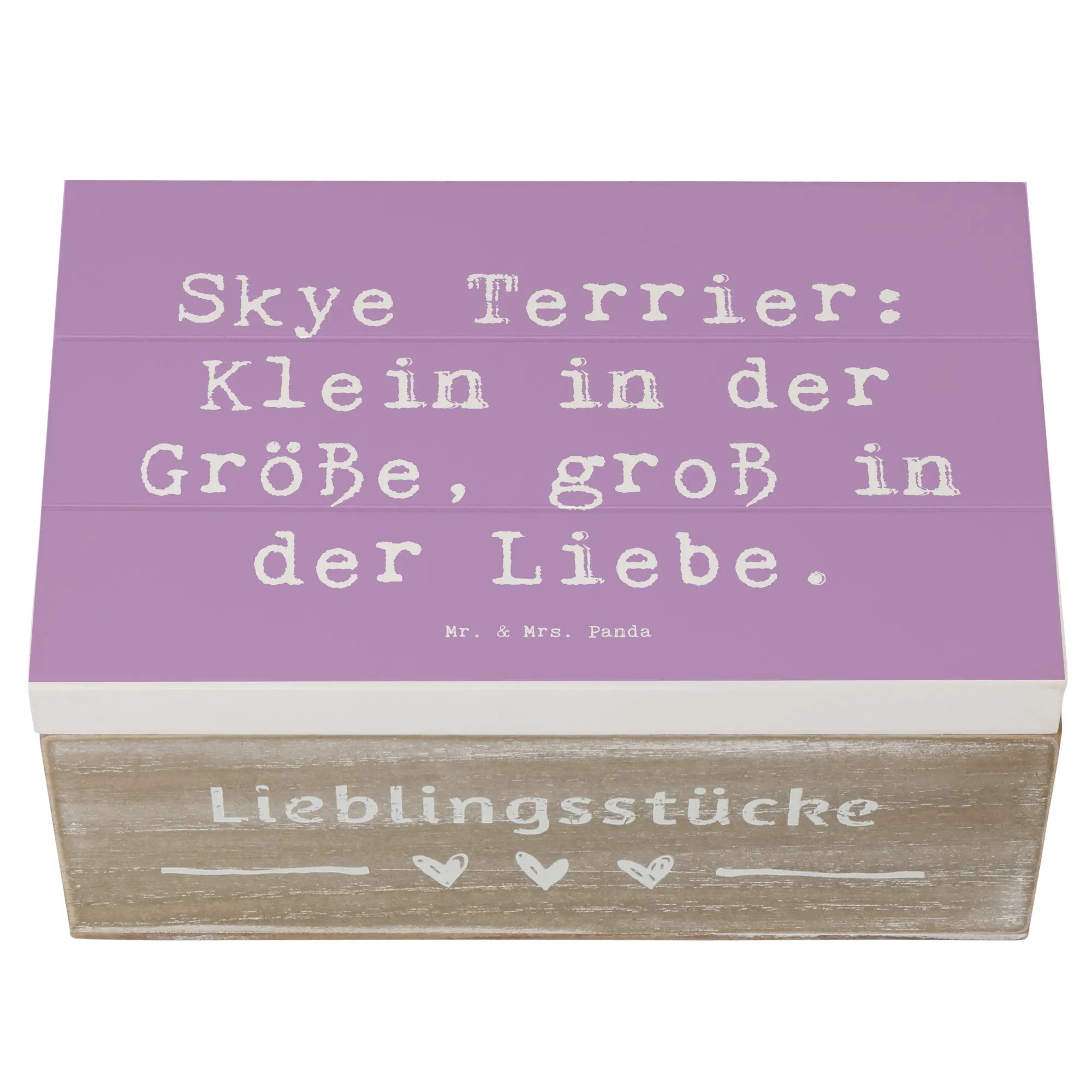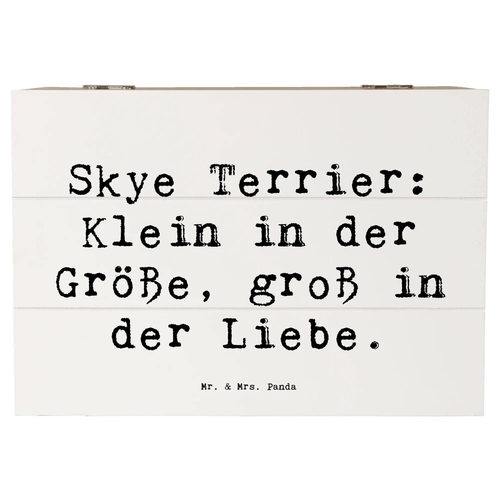 Entdecke die wundervolle Holzkiste von Mr. & Mrs. Panda, die mit dem liebevollen Motiv des Skye Terriers bedruckt ist. Diese Kiste ist nicht nur ein echter Hingucker, sondern auch der perfekte Aufbewahrungsort für Deine schönsten Schätze. Egal, ob Du Erinnerungen an besondere Anlässe, Kindheitserinnerungen oder einfach nur Fotos sammeln möchtest, diese Erinnerungskiste ist genau das Richtige für Dich! Mit einem liebevollen Spruch, der sagt: „Skye Terrier: Klein in der Größe, groß in der Liebe“, wird die Kiste zu einem ganz besonderen Geschenk für jeden Hundefan.