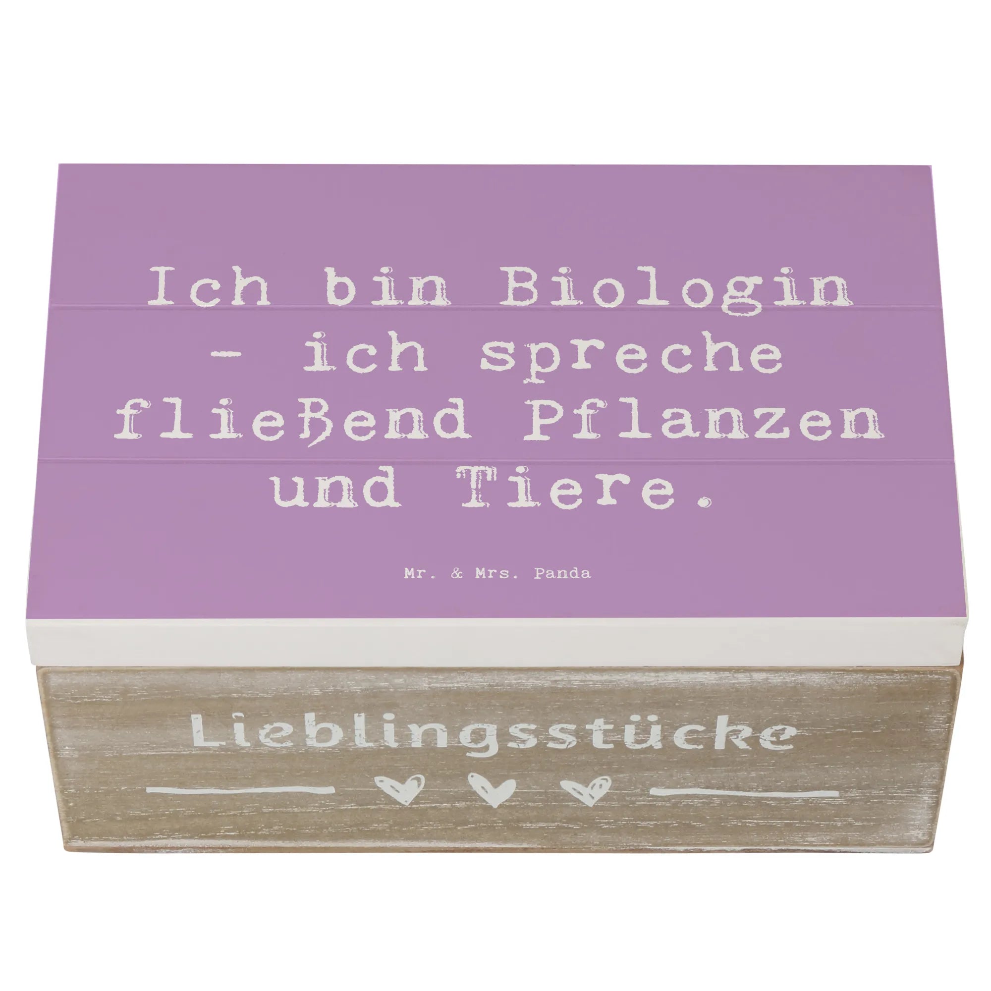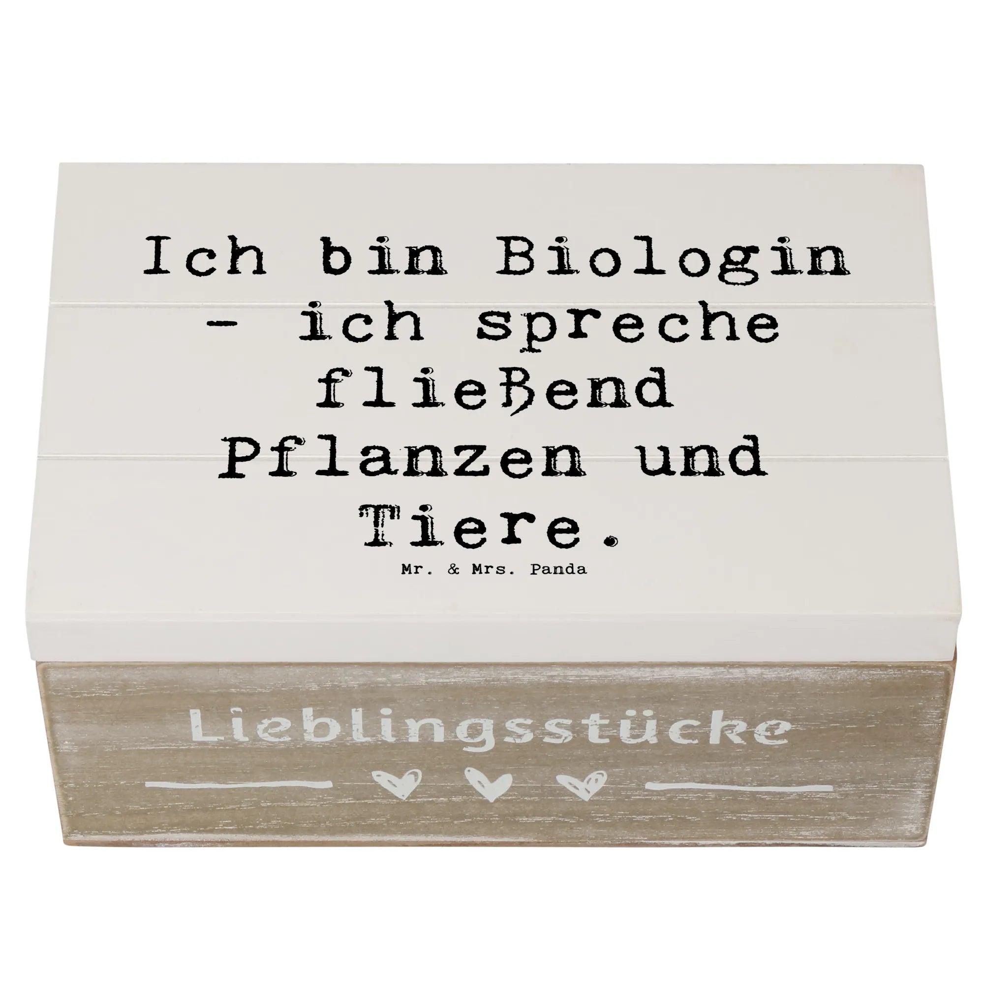 Die wunderschöne Holzkiste 'Ich bin Biologin - ich spreche fließend Pflanzen und Tiere' von Mr. & Mrs. Panda ist das perfekte Geschenk für alle Biologinnen und Pflanzenliebhaber. Sie ist nicht nur ein praktischer Aufbewahrungsort für all deine wertvollen Schätze und Erinnerungen, sondern auch ein stylisches Wohnaccessoire, das deine Liebe zum Beruf liebevoll zum Ausdruck bringt.