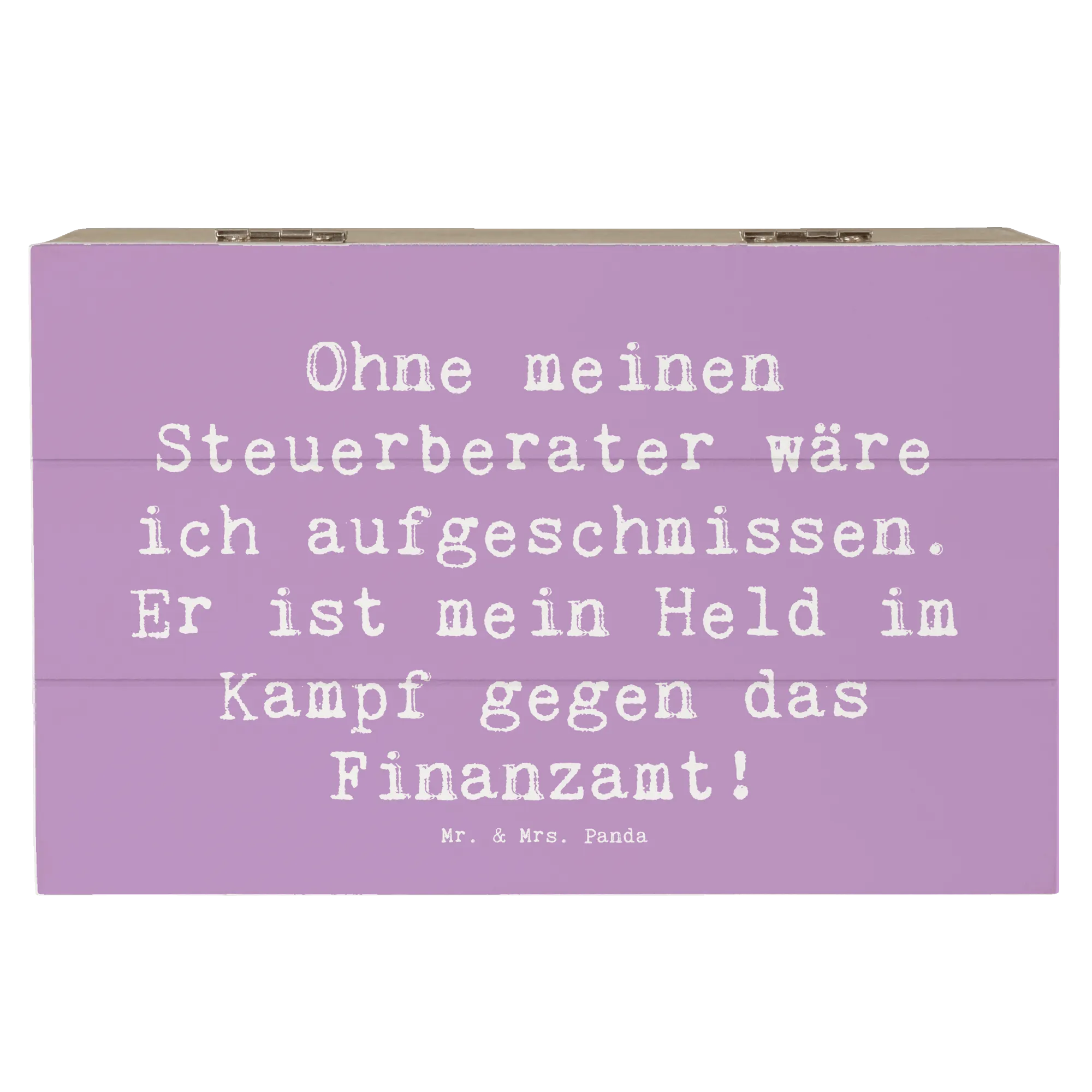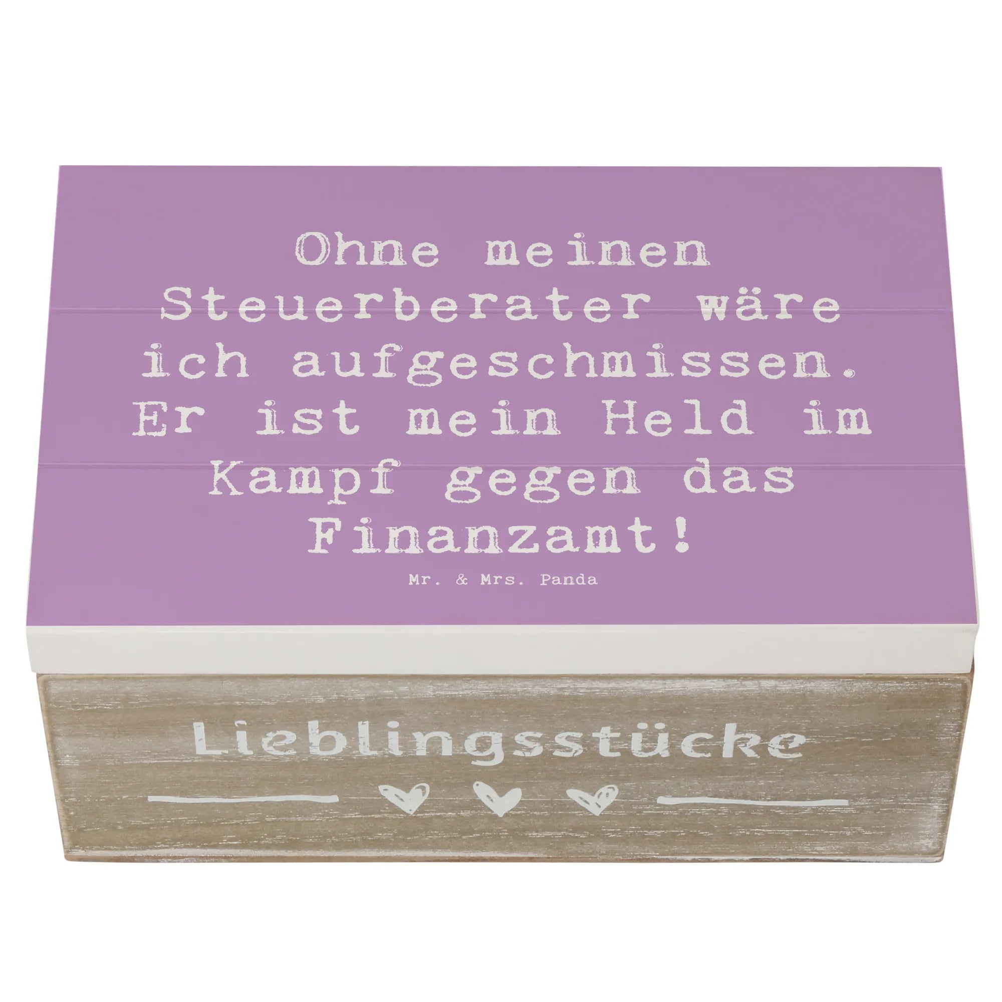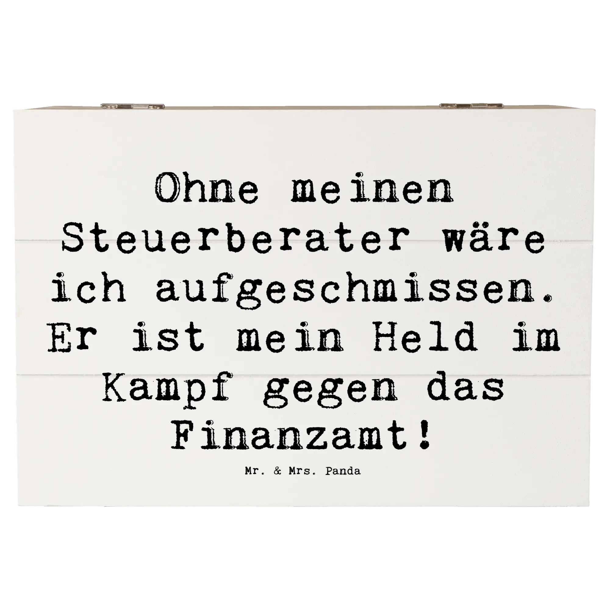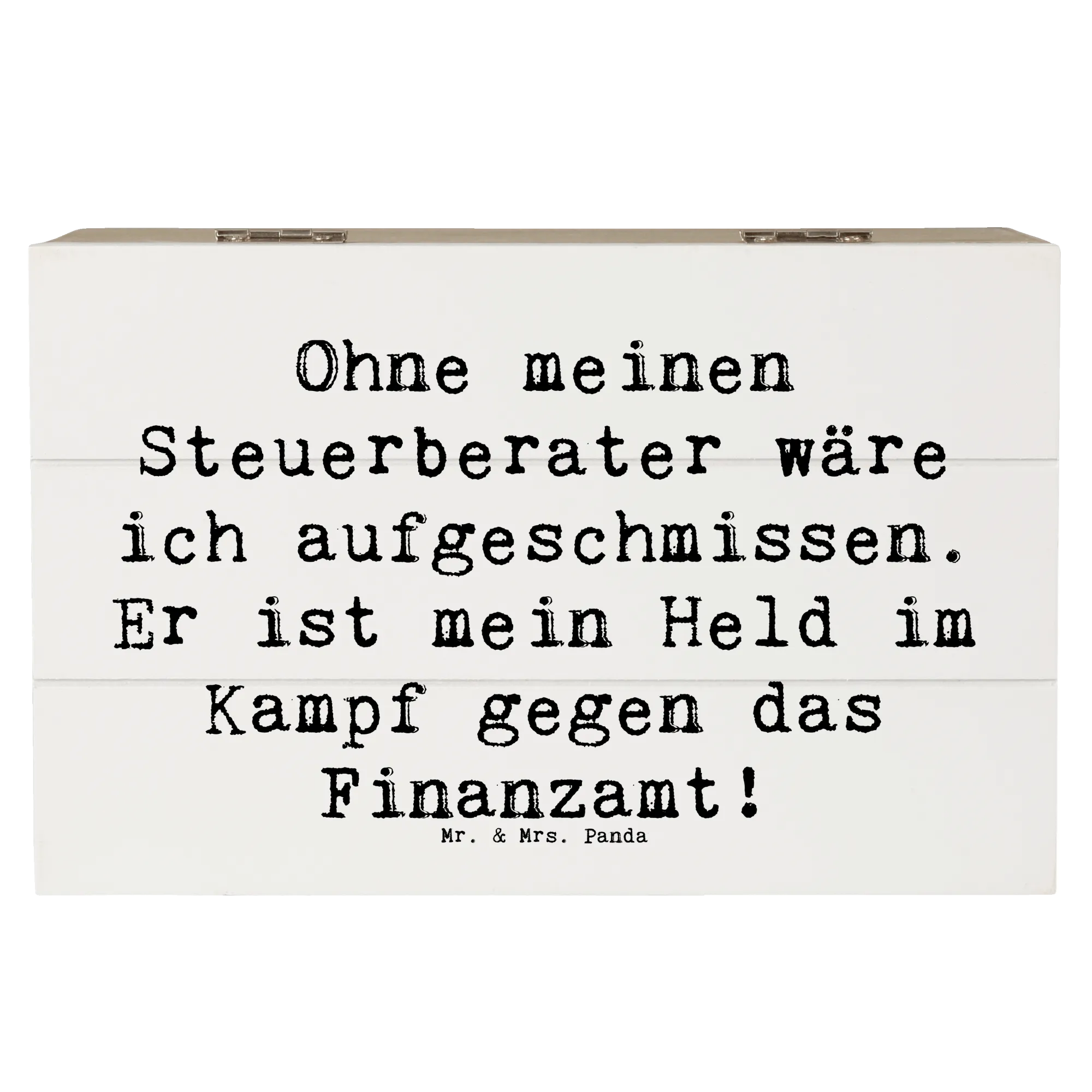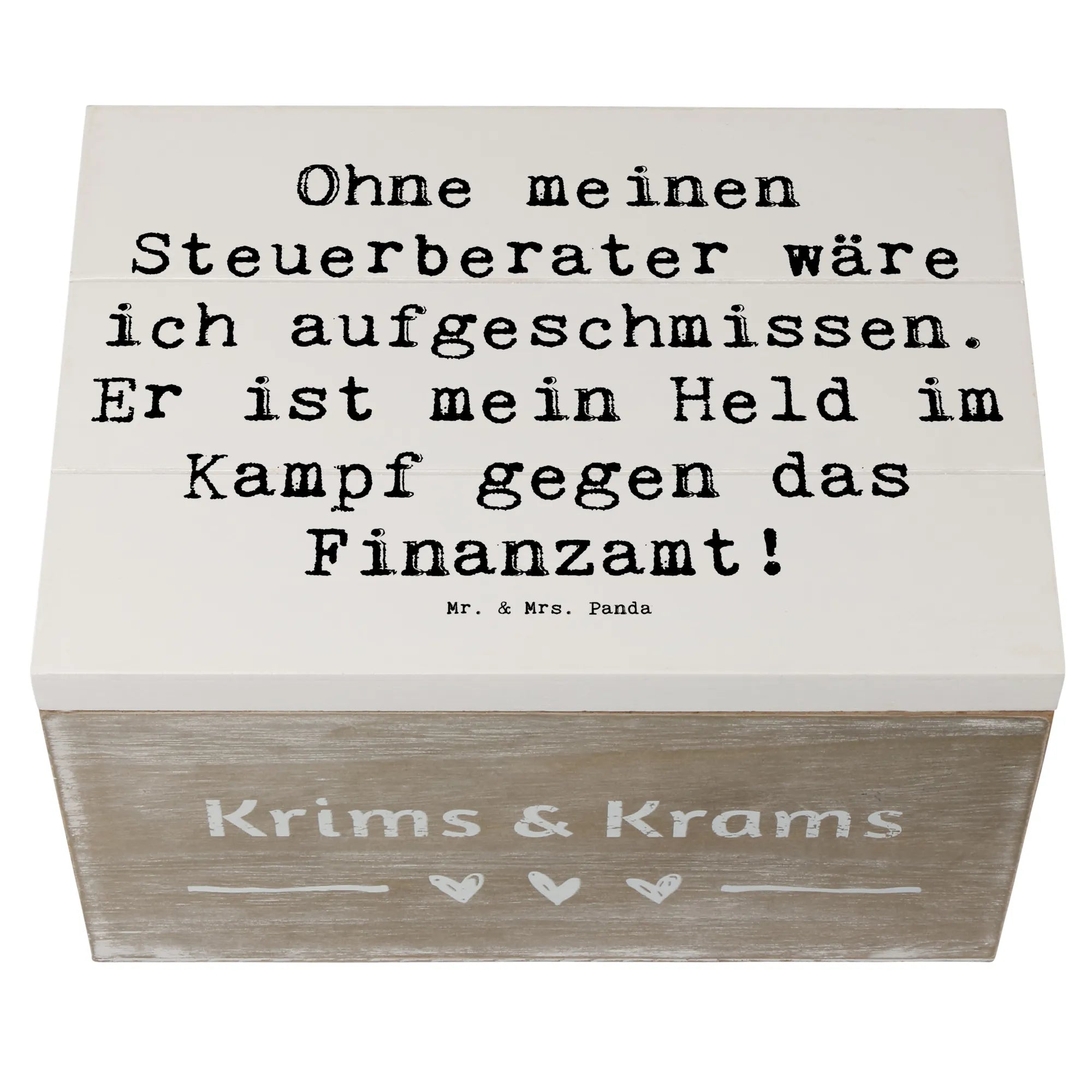 Die wunderschöne Holzkiste von Mr. & Mrs. Panda ist nicht nur ein stilvolles Deko-Element, sondern auch eine praktische Aufbewahrungslösung. Mit ihrem liebevoll gestalteten Motiv 'Ohne meinen Steuerberater wäre ich aufgeschmissen. Er ist mein Held im Kampf gegen das Finanzamt!' ist sie das perfekte Geschenk für jeden Steuerberater oder für Freunde und Familie, die im Finanzwesen tätig sind.