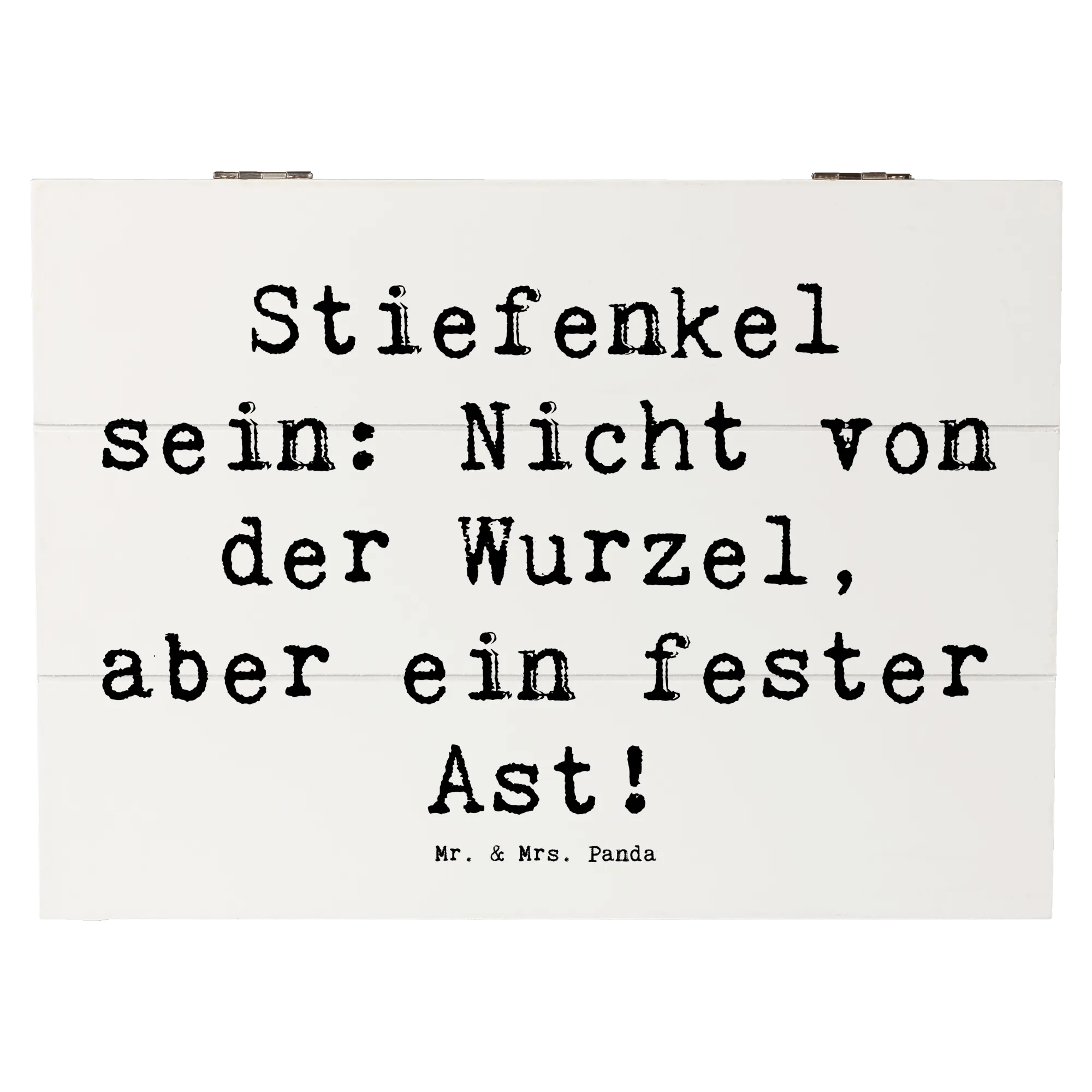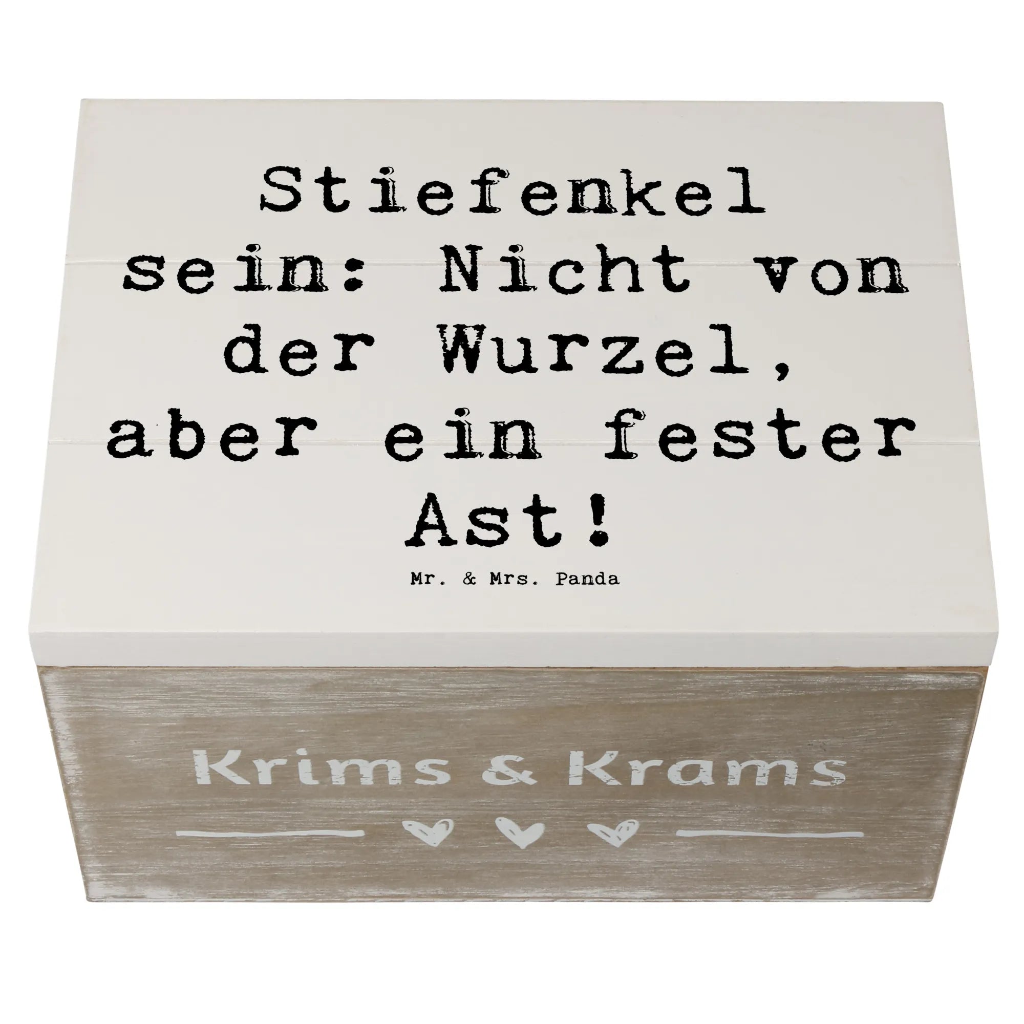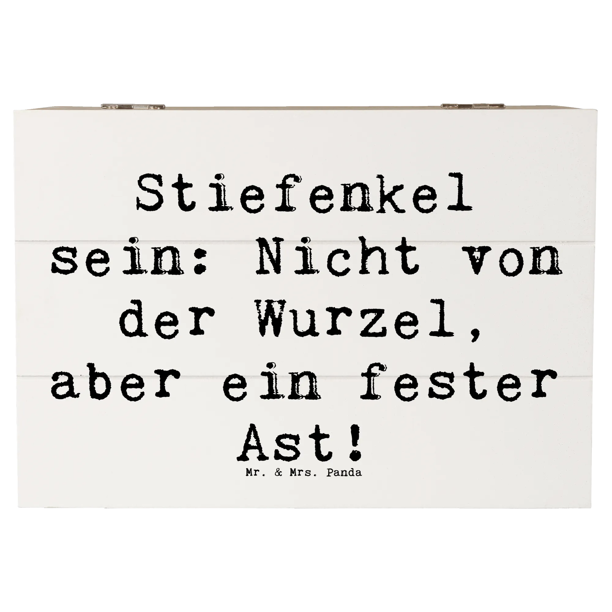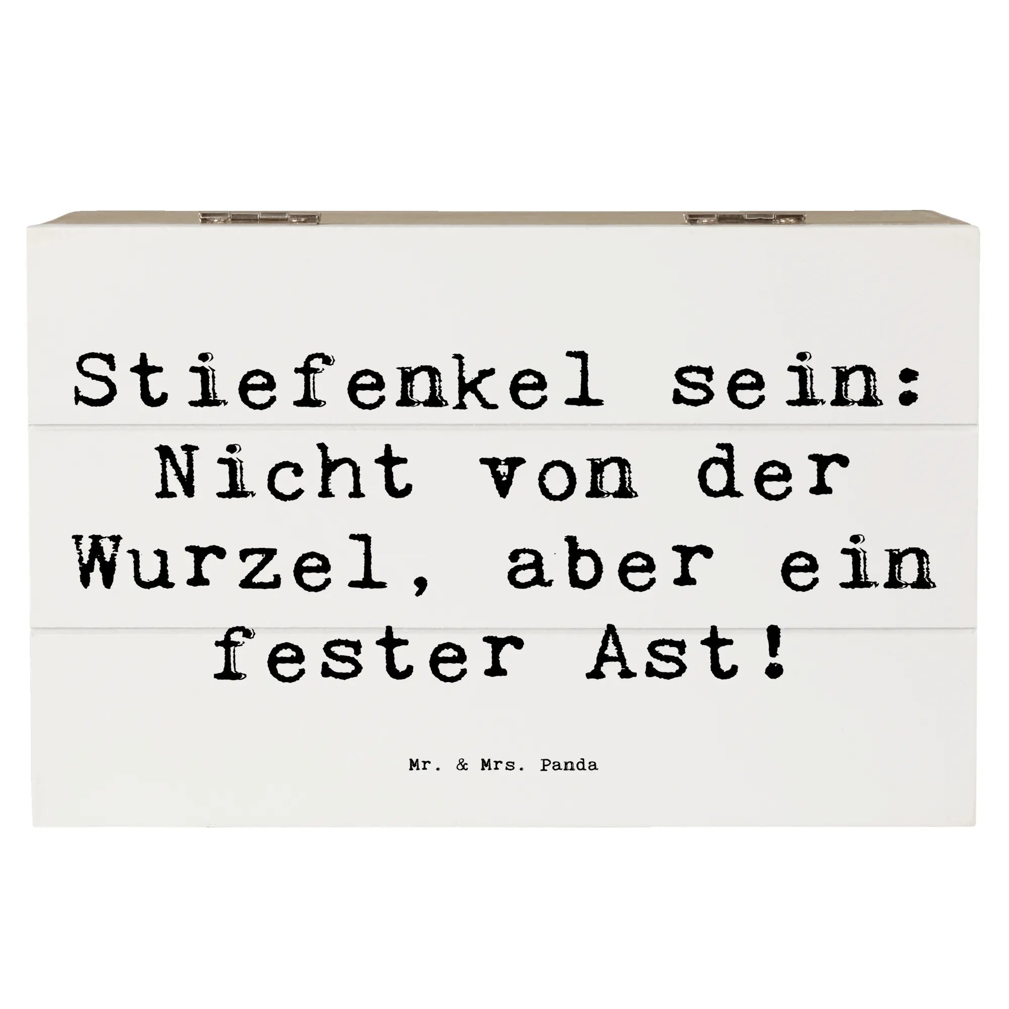 Die Holzkiste 'Stiefenkel sein: Nicht von der Wurzel, aber ein fester Ast!' von Mr. & Mrs. Panda ist das perfekte Geschenk für Großeltern und Familienmitglieder, die die besonderen Beziehungen in modernen Patchworkfamilien feiern möchten.