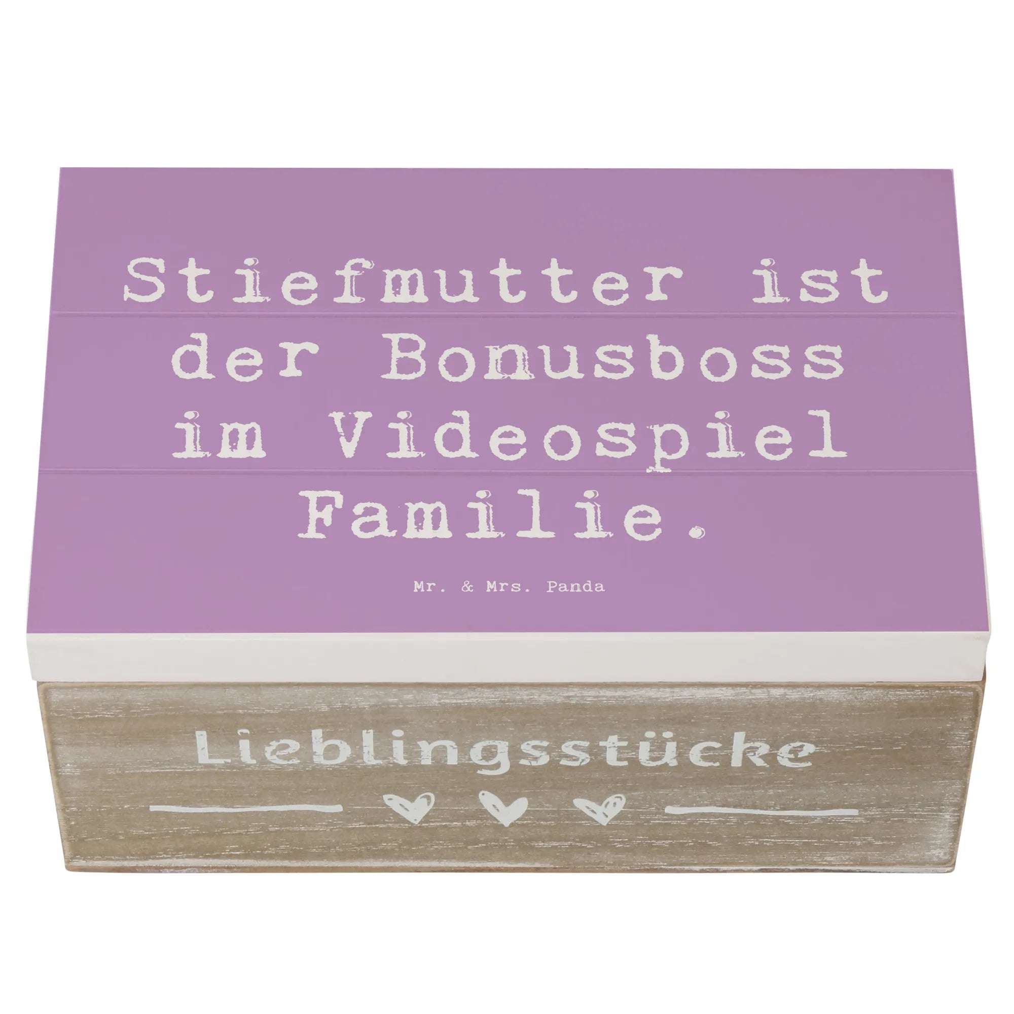 Suchst Du das perfekte Geschenk für Deine Stiefmutter? Unsere wunderschöne Holzkiste von Mr. & Mrs. Panda ist eine einzigartige Erinnerungskiste, die Liebe und Wertschätzung perfekt verkörpert.
