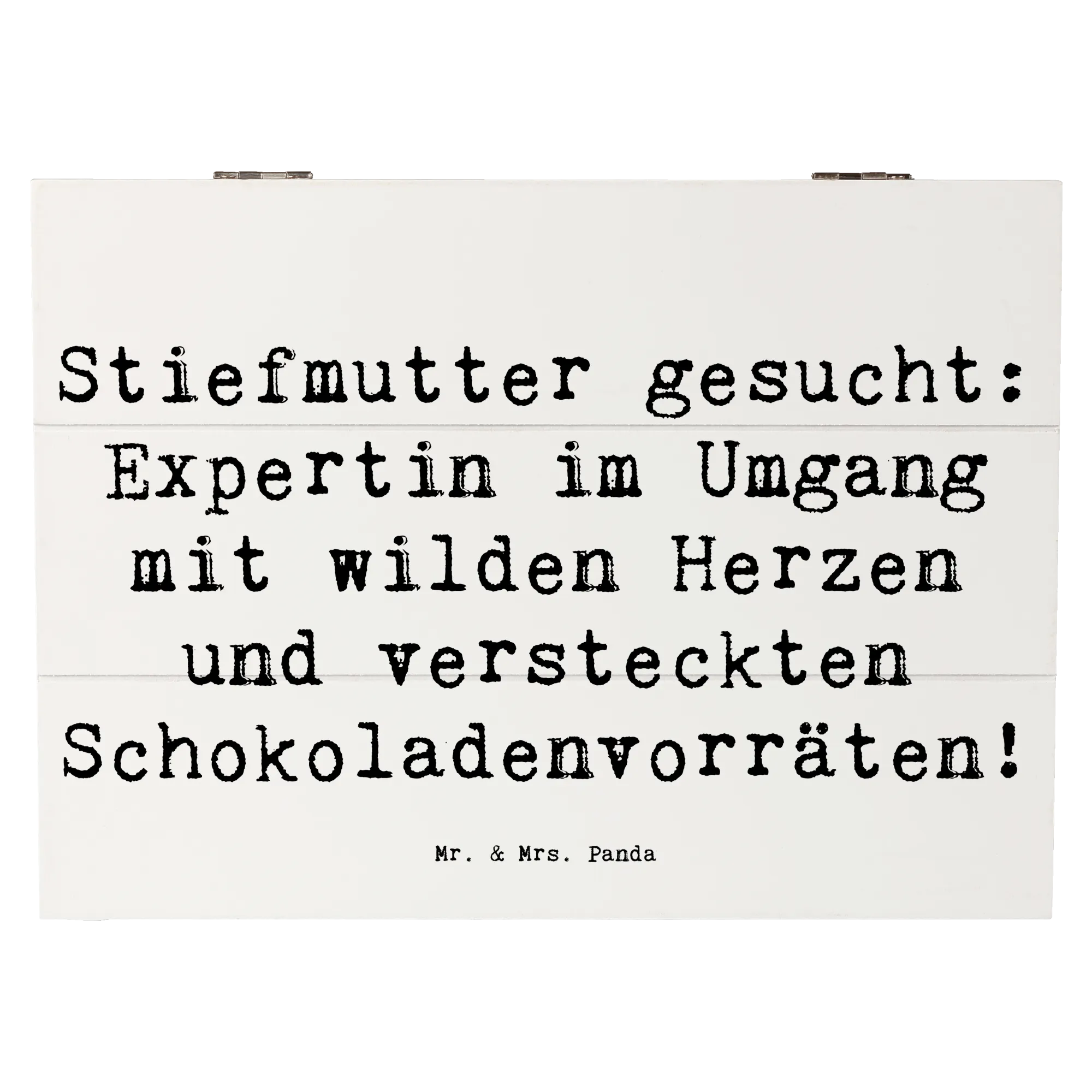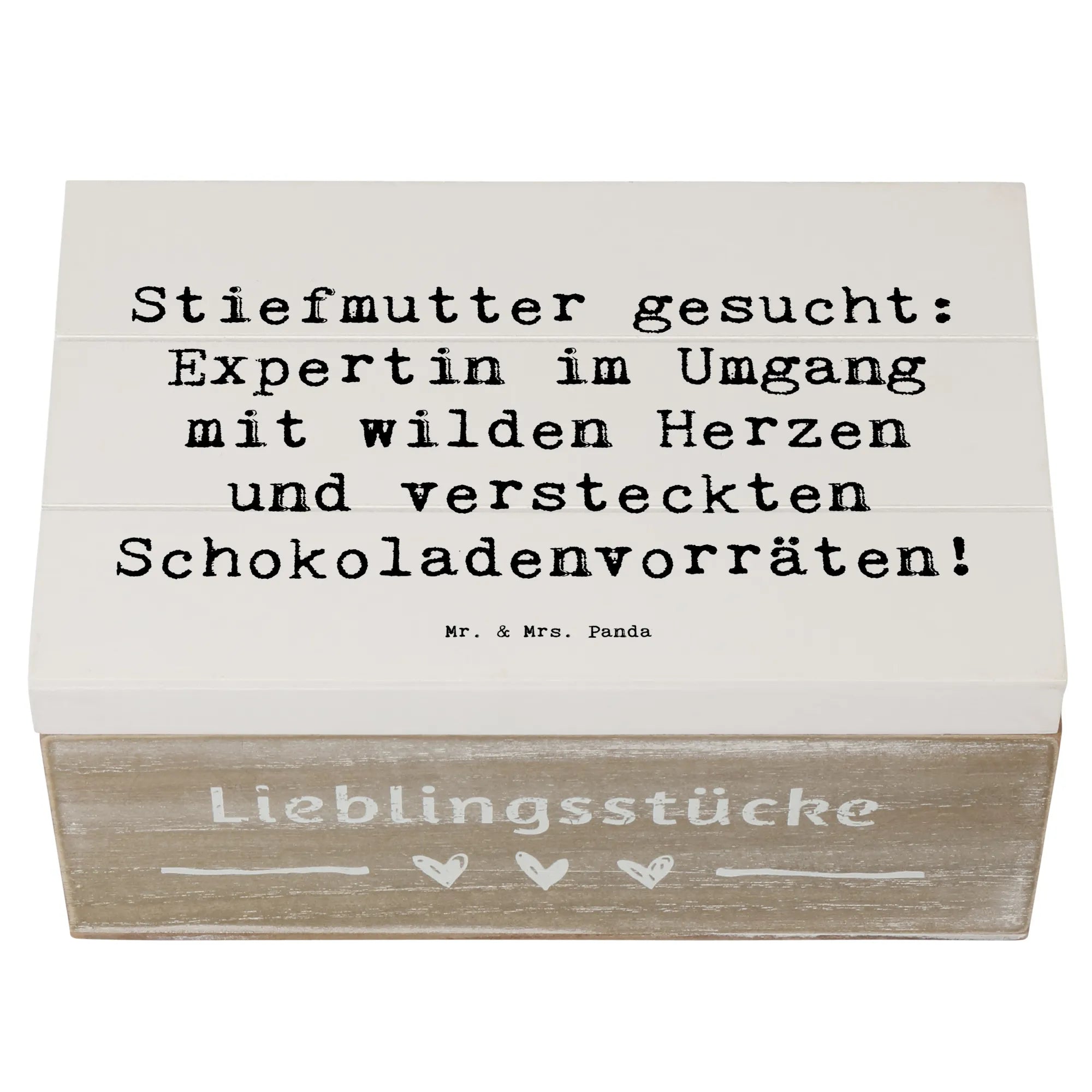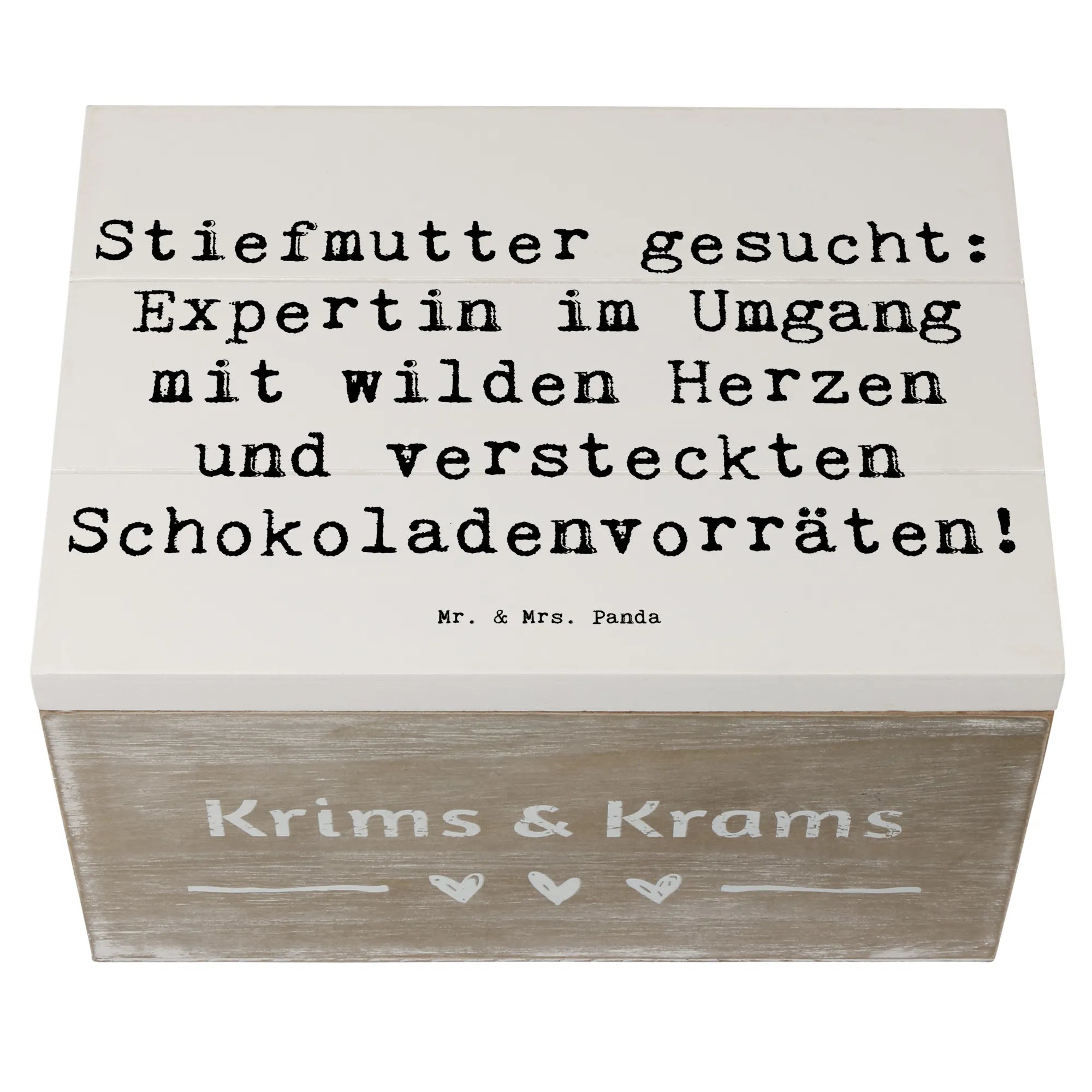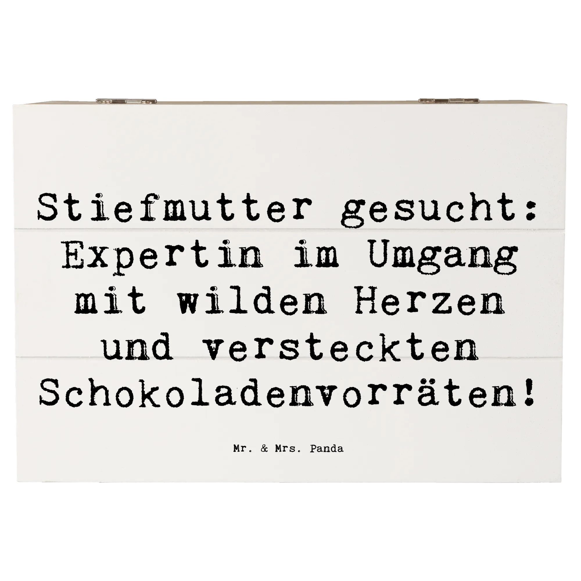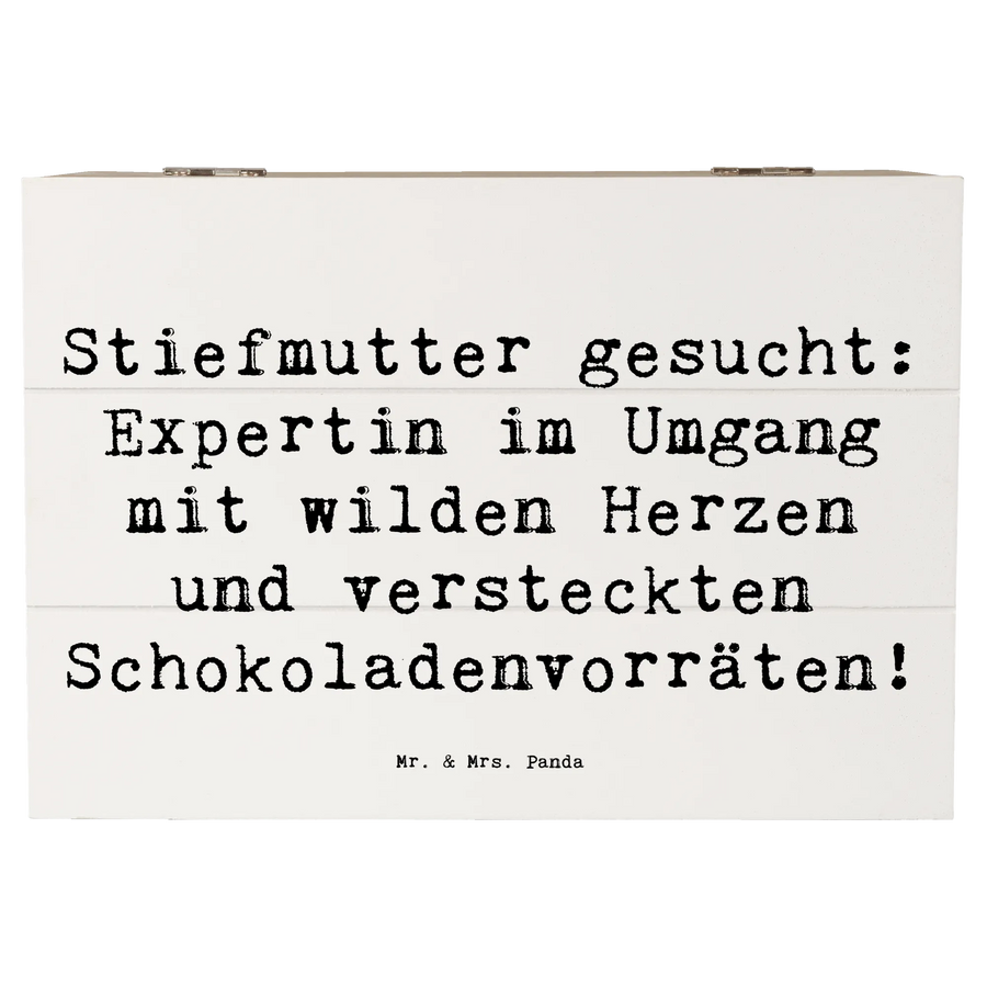 Die wunderschöne Holzkiste von Mr. & Mrs. Panda ist das perfekte Geschenk für alle, die eine Stiefmutter in ihrem Leben haben oder als Stiefmutter agieren. Mit dem charmanten Spruch "Stiefmutter gesucht: Expertin im Umgang mit wilden Herzen und versteckten Schokoladenvorräten!" ist diese Kiste nicht nur ein praktischer Aufbewahrungsort, sondern auch ein liebevolles Zeichen der Wertschätzung.