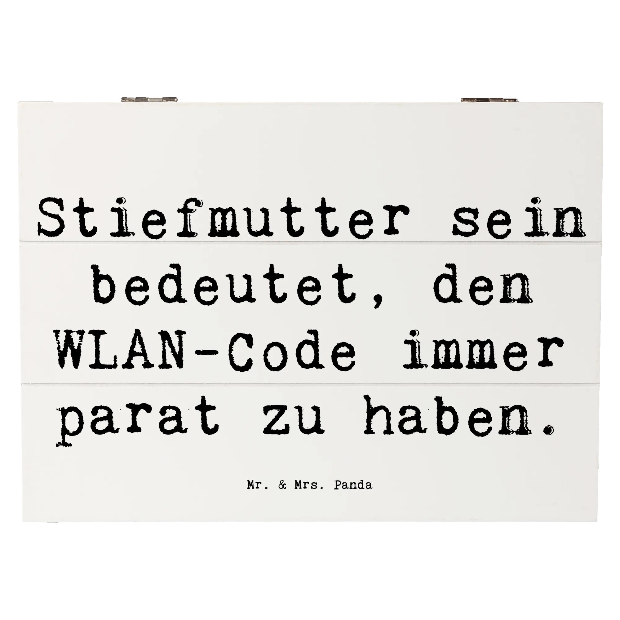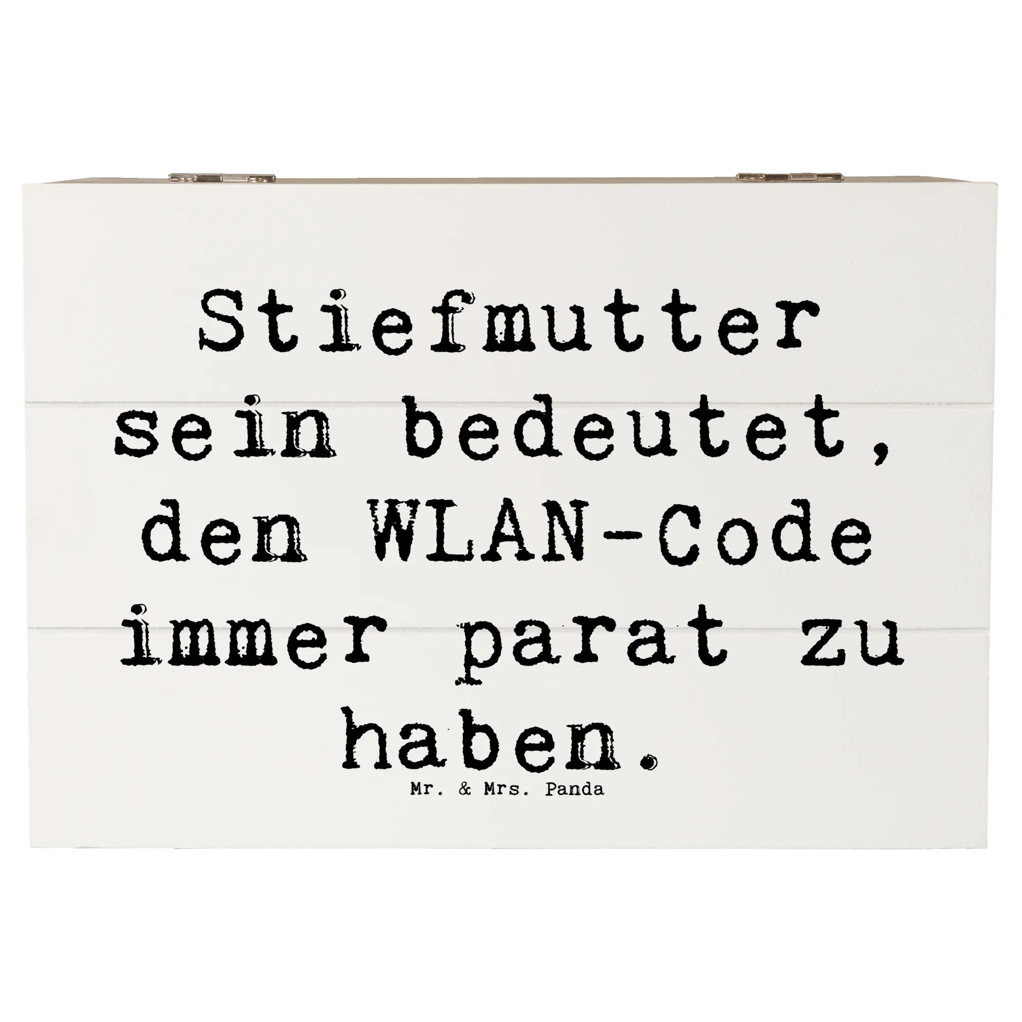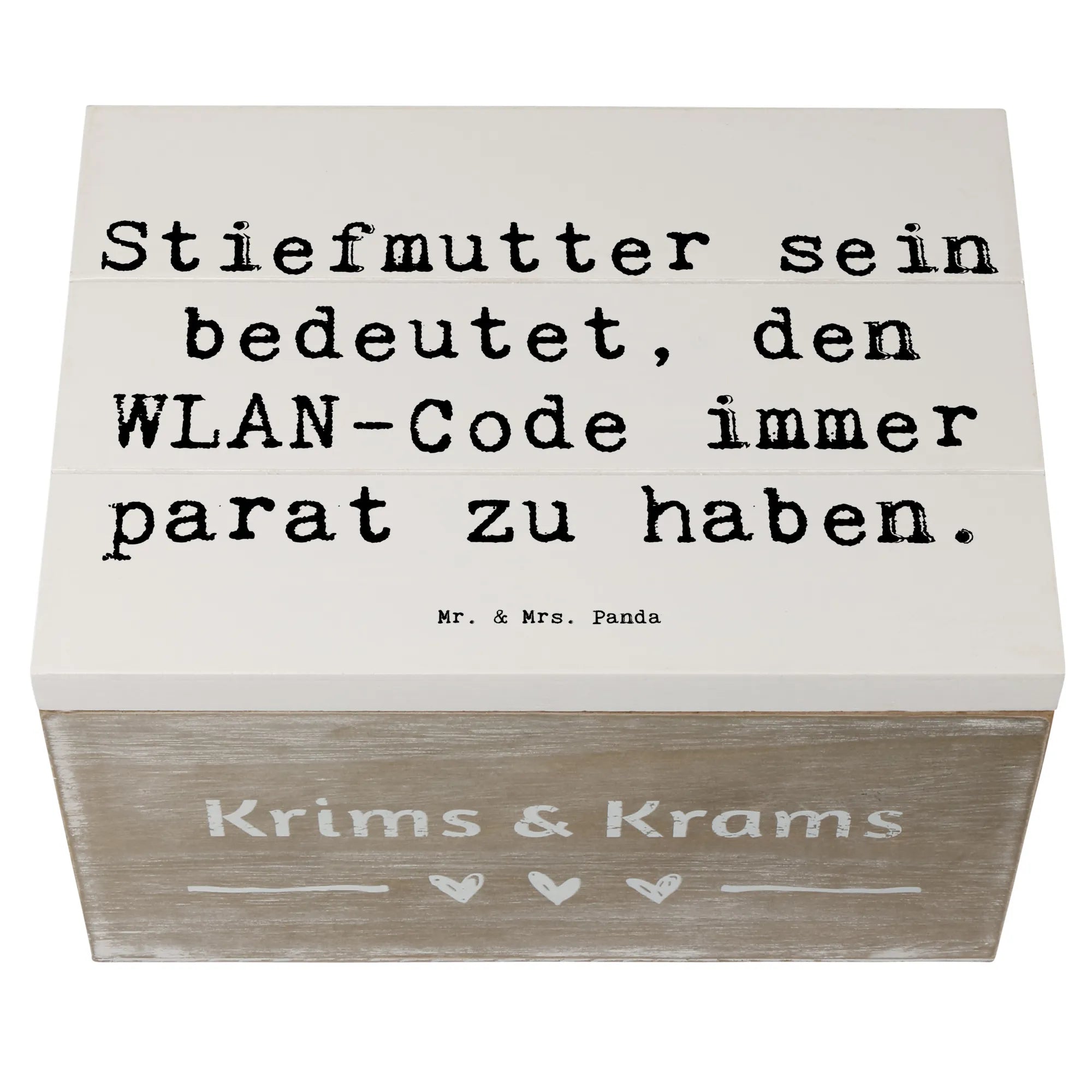 Die wunderschöne Holzkiste von Mr. & Mrs. Panda ist das perfekte Geschenk für jede Stiefmutter und ein unverzichtbares Accessoire für jede Patchwork-Familie. Mit einem ganz besonderen Aufdruck, der den Slogan 'Stiefmutter sein bedeutet, den WLAN-Code immer parat zu haben.' präsentiert, bringt diese Kiste nicht nur Ordnung in das Zuhause, sondern auch ein Lächeln in das Gesicht der Beschenkten.