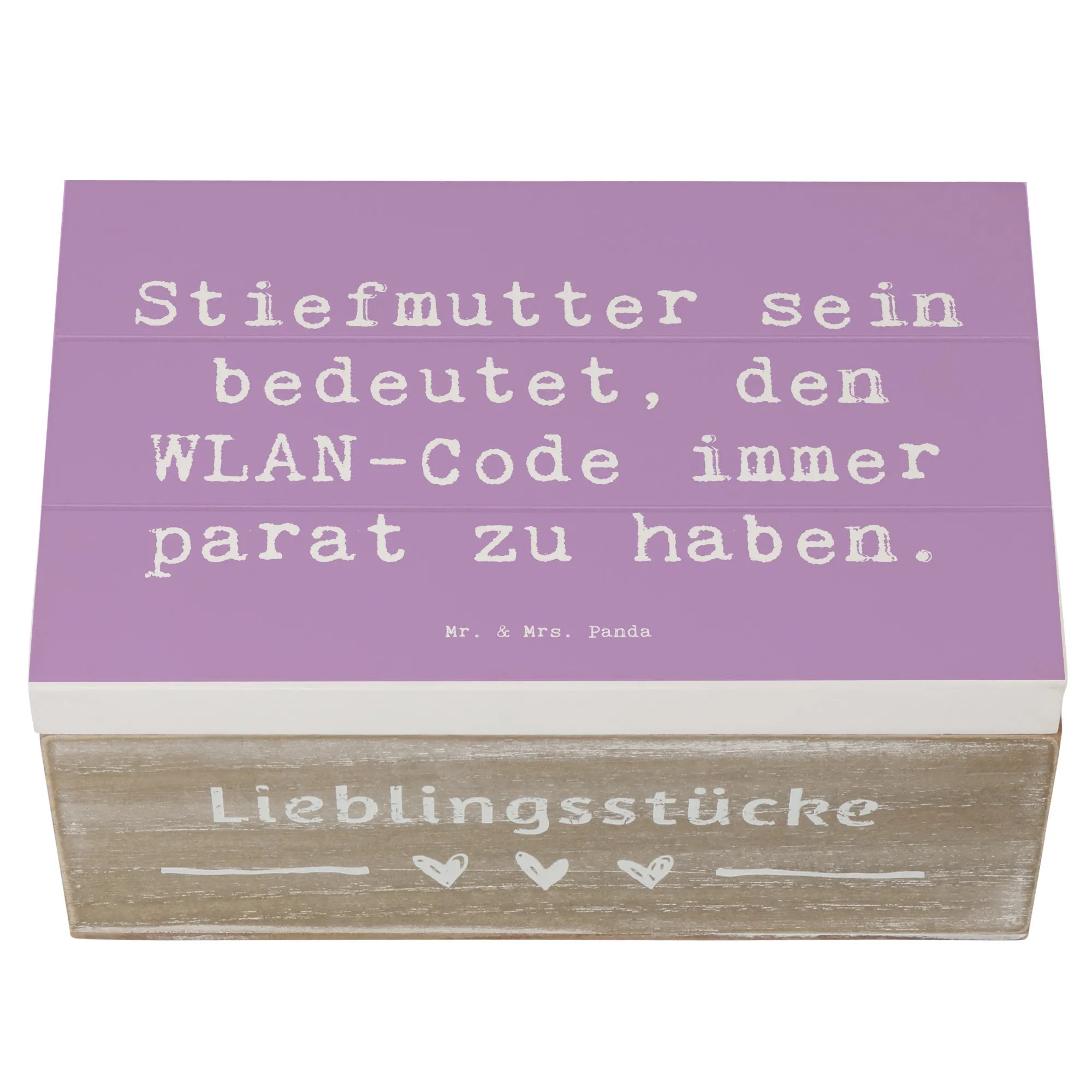 Die wunderschöne Holzkiste von Mr. & Mrs. Panda ist das perfekte Geschenk für jede Stiefmutter! Mit ihrem inspirierenden Spruch "Stiefmutter sein bedeutet, den WLAN-Code immer parat zu haben." ist sie nicht nur ein praktisches Aufbewahrungsstück, sondern zaubert auch ein Lächeln ins Gesicht.