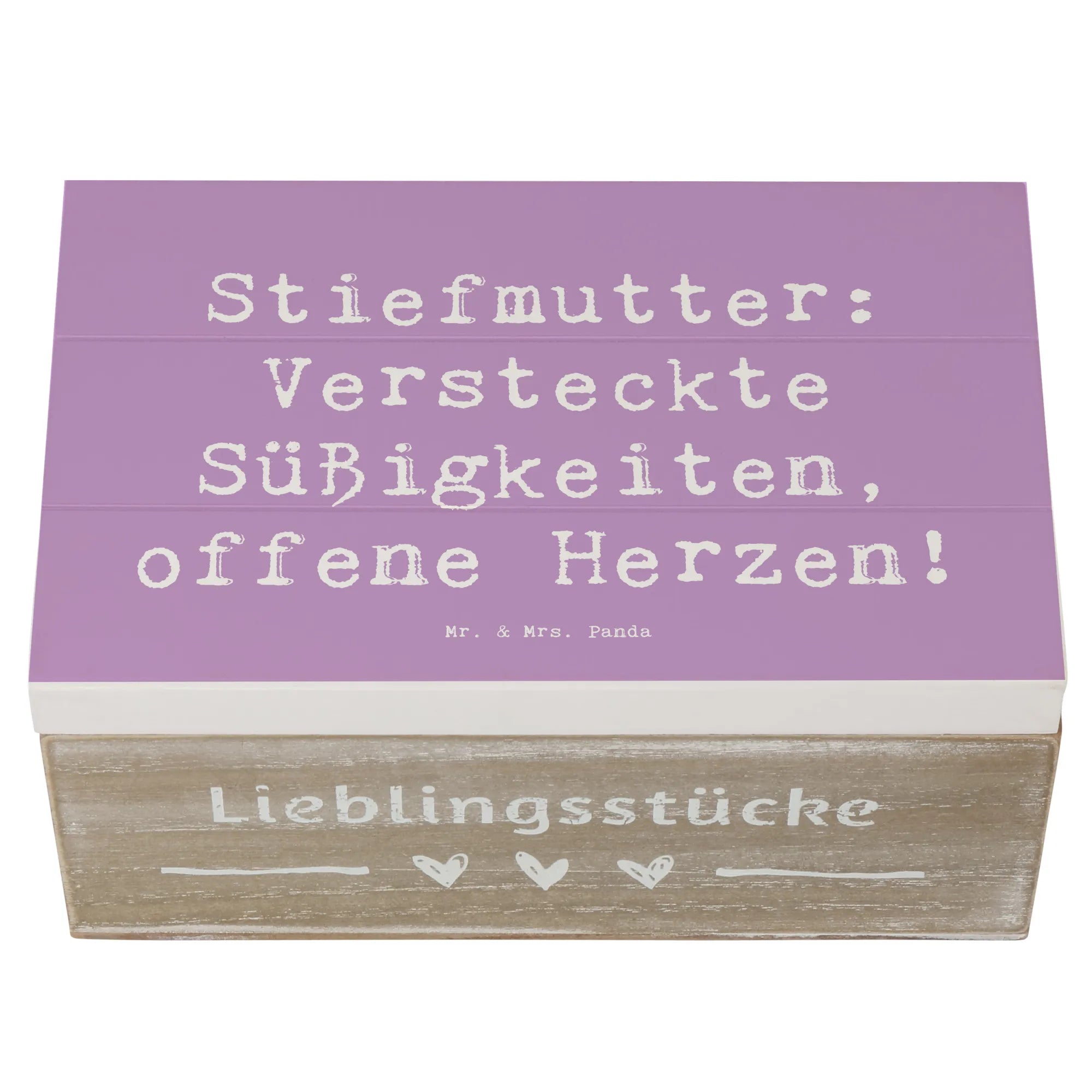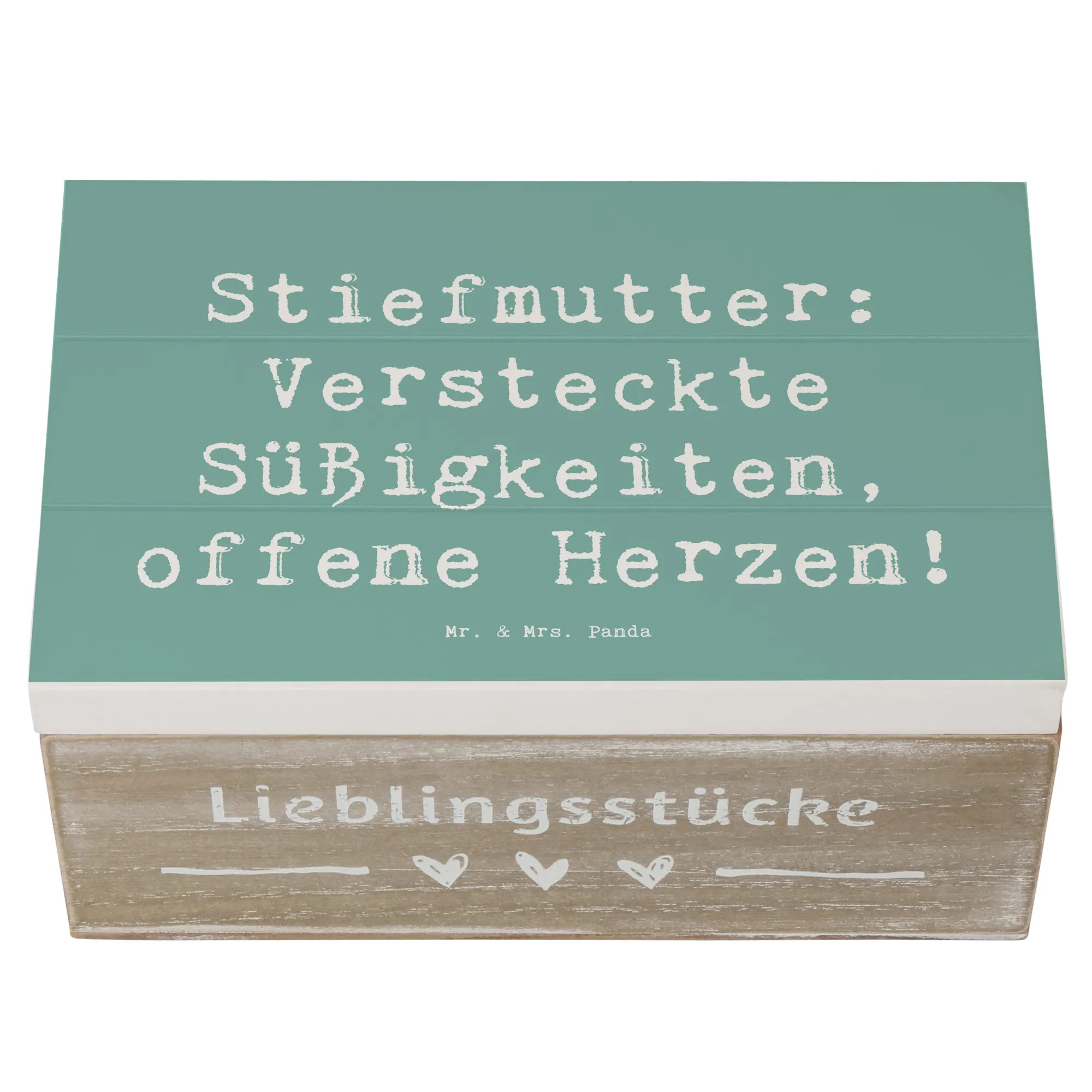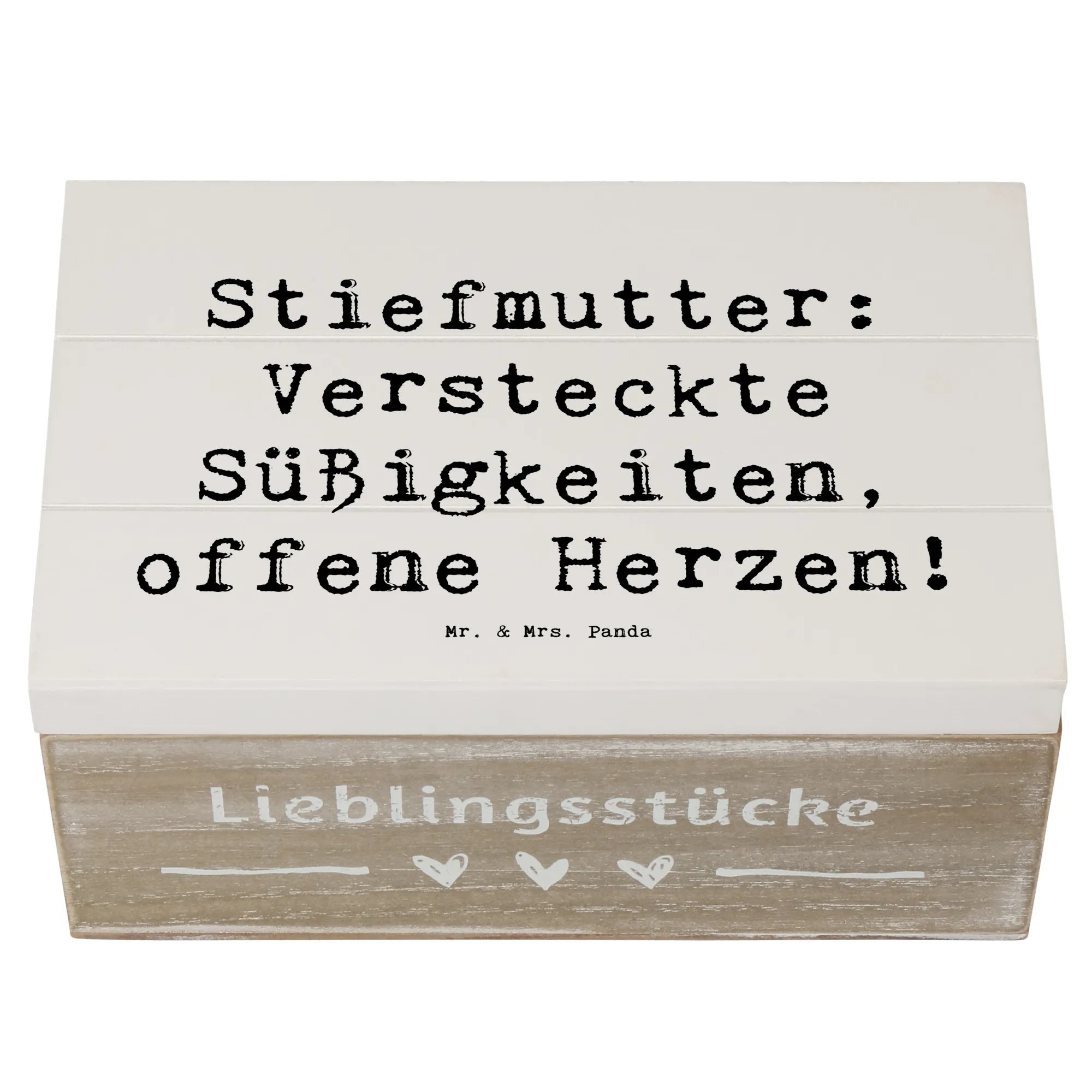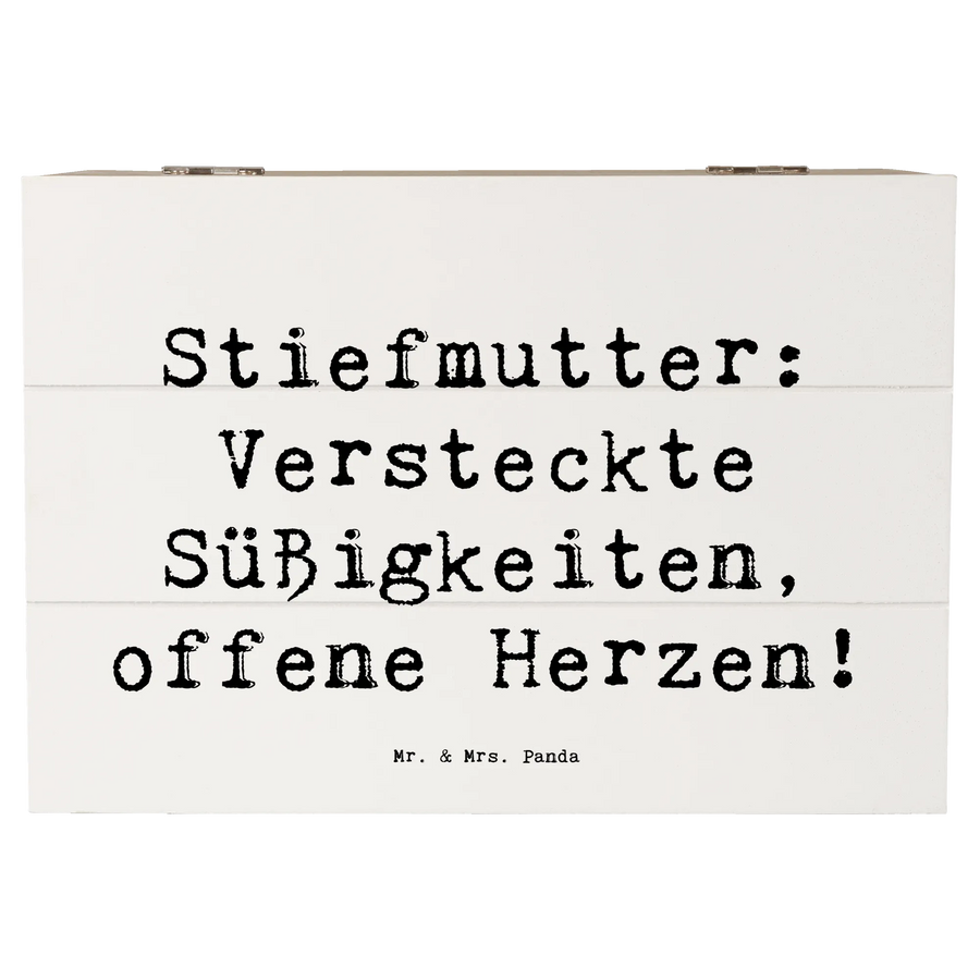 Die wunderschöne Holzkiste von Mr. & Mrs. Panda ist das perfekte Geschenk für all jene, die eine besondere Stiefmutter in ihrem Leben haben. Mit dem liebevollen Motiv 'Stiefmutter: Versteckte Süßigkeiten, offene Herzen!' wird diese Kiste zu einem echten Hingucker.